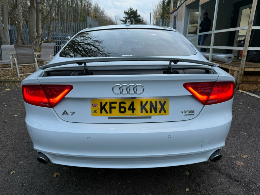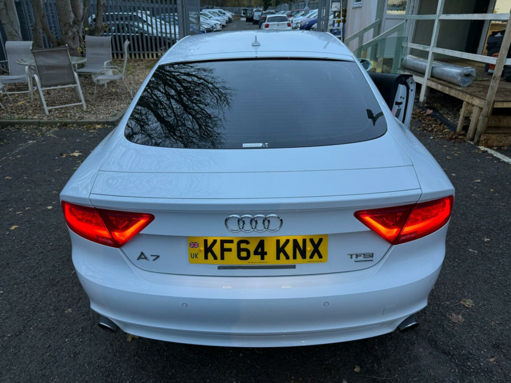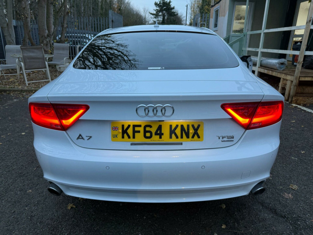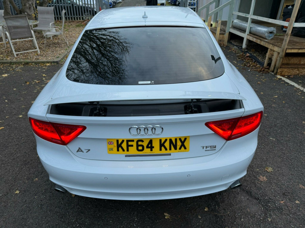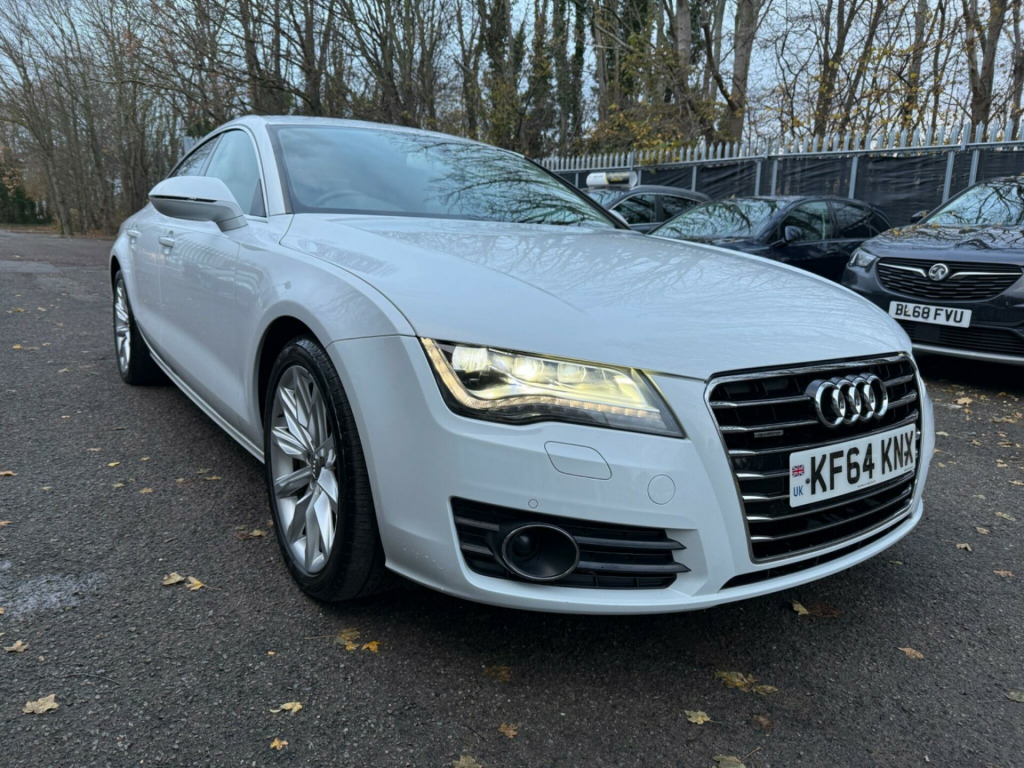 WHITE, FINANCE AVAILABLE, NAVIGATION SYSTEM, REVERSE CAMERA, LEATHER SEATS, HEATED SEATS, ADAPTIVE CRUISE CONTROL, APPLE CAR PLAY, ONLY ONE OWNER, ULEZ COMPLIANTWARRANTED AND VARIFIABLE LOW MILEAGE WITH IMPORTED DOCUMENTS.This 2015 Audi A7 TFSI V6 S line boasts exceptionally low mileage for its age, having covered just 37,325 miles. This premium four wheel drive model, finished in the sought after S line trim, is powered by a potent 3.0 litre petrol engine and meets Euro 6 emissions standards. For your peace of mind, the MOT is valid until November 2026. Inside, you'll find a host of desirable features designed for comfort and convenience, including heated front seats and electrically adjustable front seats with a memory function for the driver. Parking is made effortless with front and rear acoustic and visual parking systems.The Audi A7 TFSI V6 S line offers a compelling blend of performance and practicality. Its impressive acceleration, reaching 0-62mph in a swift 5.3 seconds, sets it apart from many vehicles in its class. This performance is complemented by a generous boot space, making it ideal for both daily commutes and longer journeys. The combination of its advanced features, low mileage, and dynamic capabilities makes this Audi A7 a standout choice for those seeking a sophisticated and capable vehicle.. 12V Power Socket, 12V Power Socket - Rear, 20in Alloy Wheels - 5-Twin-Spoke Design, ABS - Anti-Lock Braking System, AMI - Audi Music Interface, AUX-IN Socket, Acoustic Glazing, Acoustic and Visual Parking System - Front, Acoustic and Visual Parking System - Rear, Active Door Reflectors, Airbags - Curtain, Airbags - Driver, Airbags - Front Passenger, Airbags - Front Side, Amplifier - 180 Watt, Amplifier - 6 Channel, Anti Theft Locking Wheel Bolts, Anti-Theft Alarm, Audi Drive Select, Audi Hill Hold Assist, Audi Matrix LED Headlights, Audi Parking System Plus, Audi Sound System, Auto-Dimming Rear-View Mirror, Automatic Wipers with Rain Sensor, B-Pillar Trim in High-Gloss Black Finish, Cables x2 - MP3 Connection Including iPod, Car Jack, Climate Control - Electronic Deluxe 4-Zone, Cloth Headlining in Black, Cruise Control, DAB Digital Radio, DIS - Drivers Information System with Display Screen Colour - 7in, Display Screen Colour 6.5in for MMI, Door Mirrors - Automatic Kerb View Dipping Function When Reversing, Door Mirrors - Electrically Adjustable and Heated, Door Mirrors - Memory Function, Door Sill Trims with S Line Logo, Door Trim Inserts in Selected Leather, Dynamic LED Indicators - Front, Dynamic Rear Indicators, Dynamic Route Guidance, ESP - Electronic Stability Programme, Efficiency Program in the Drivers Information System - DIS, Electric Windows - Front and Rear, Electrically Adjustable 4-Way Lumbar Support, Electrically Adjustable Front Seats with Memory Function for Drivers Side, Front Centre Armrest, Front Passenger Airbag Deactivation Switch, Front and Rear Floor Mats, Front and Rear Reading Lights, Gear Knob - Perforated Leather Black, Head Restraints - Leather, Head Restraints - Rear x3, Headlights - Automatic Activation, Headlights - Automatic Adjustment, Headlights Washers, Heated Front Seats, High Gloss Package, ISOFIX Child Seat Mounting for Front Passenger, ISOFIX Child Seat Preparation for Rear Seats with Top Tether, Immobiliser, Inlays - Matt Brushed Aluminium, Keyless Go, LED Daytime Running Lights, LED Tail Lights, MMI Navigation - SD Card Based, MMI Radio Plus, MP3 - WMA and AAC Compatible CD Player, Mobile Telephone Preparation - Low with Bluetooth and Voice Control, Non-Smoking Package, Outside Temperature Display, Platinum Grey Front Spoiler Lip and Diffuser Insert, Pollen Filter, Power Operated Tailgate, Power Steering - Electromechanical/Servotronic Speed Sensitive, Remote Boot Release, Remote Central Locking, Rest Recommendation System, S Line Badges on Wings, SDHC Card Reader x2, Seats - Drivers Memory Function, Seats - Extendable Thigh Support, Seats - Front Electric Adjustment, Seats - Front Electric Height Adjustment, Seats - Front Sports - S Line Embossed, Seats - Split Folding Rear - 60-40 or All, Side Ventilation Grille - S Line, Space Saver Spare Wheel, Speakers x10 Including Subwoofer, Spoiler - Retractable, Sport Suspension, Start-Stop Button, Steering Wheel - 3-Spoke Leather - Multi-function - Sports - Shift Paddles, Steering Wheel - Gear Shift Paddles, Steering Wheel - Height and Reach Adjustable, Steering Wheel - Multi-function, TP Memo - Automatically Saves Traffic News, Tool Kit, Trip Computer, Tyre Pressure Monitoring System, Voice Control - Navigation, Voice Control - Telephone, Warning Triangle, Window Surrounds - Aluminium.