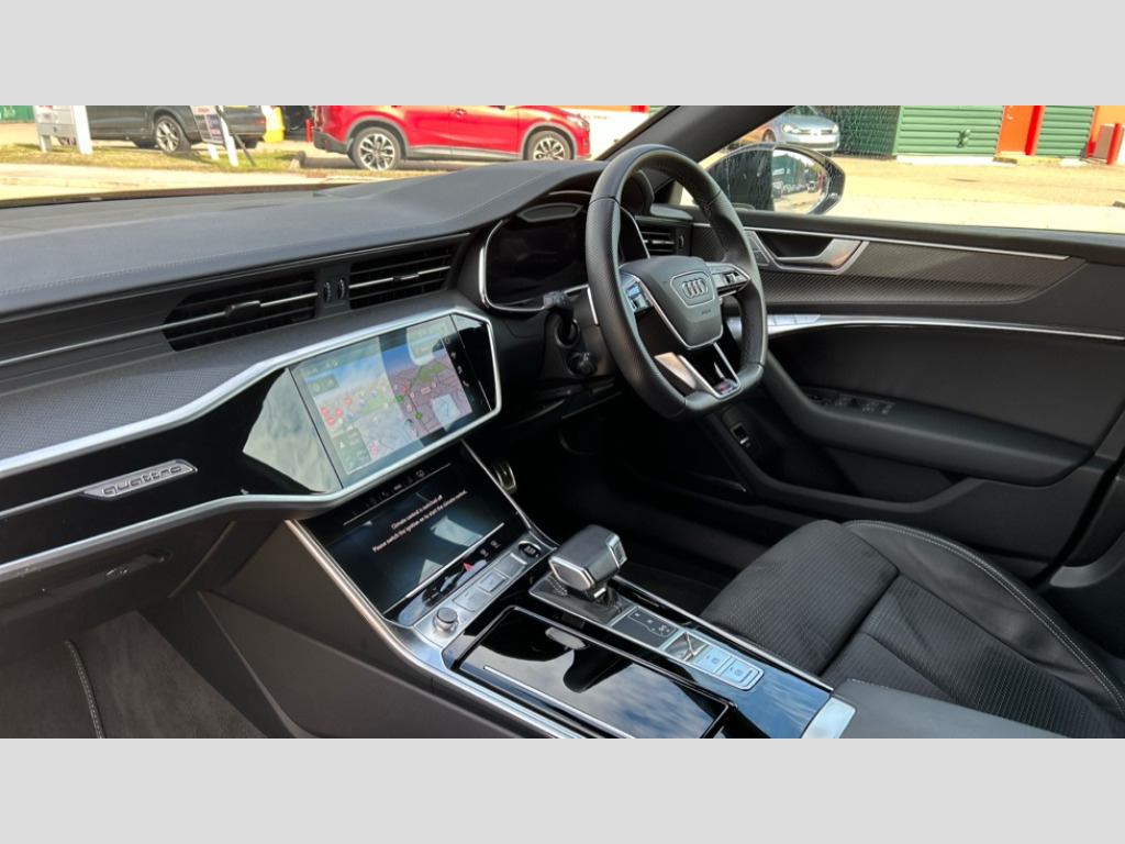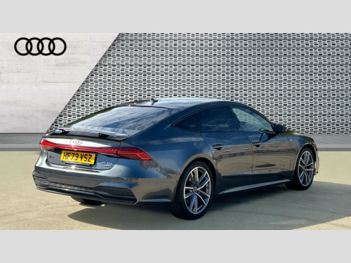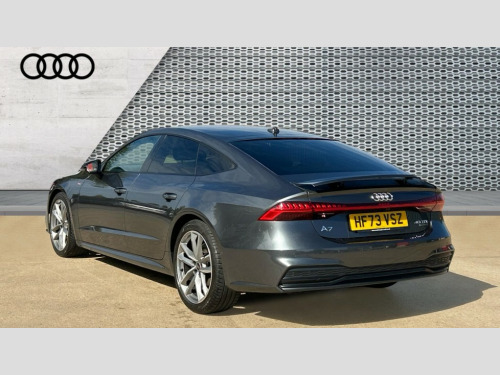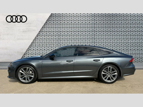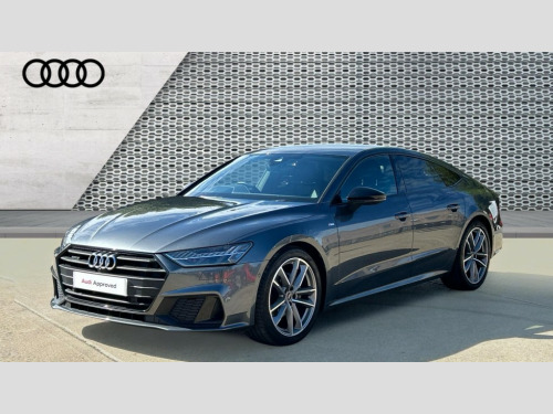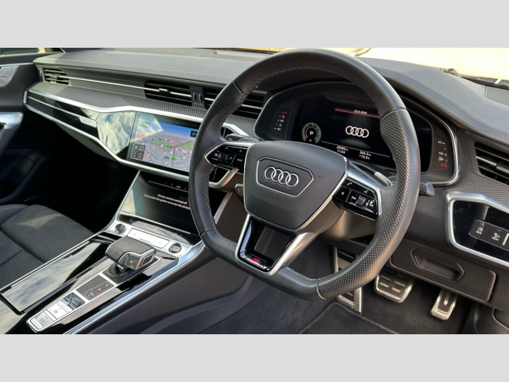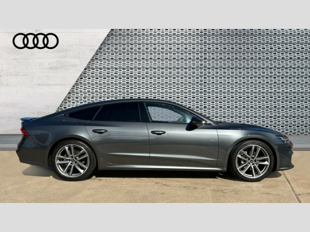Audi A7 40 TDI Quattro Black Edition 5dr S Tronic Audi connect safety and service (e-call), Audi connect with Amazon Alexa Integration, Audi drive select, Audi parking system plus - acoustic and visual park assist system for front and rear, Audi smartphone interface, Audi virtual cockpit - 12.3" high resolution LCD digital instrument cluster display, Automatic start/stop system with coasting functionality, Bluetooth interface, Colour driver's information system display, Electric boot lid release, Lane departure warning system, MMI nav plus with MMI touch + 10.1" and 8.6" HD haptic touch screen/3D city models/country information/online map/route info and personal route assist, Operating buttons in black, glass look with haptic feedback, Power operated tailgate, Progressive steering, Rear view camera, Service indicator, Voice control system, 24 litre AdBlue tank, Diesel particulate filter, Sports suspension, Audi music interface - 2 USB ports with charger and data functions, Audi sound system with 6 channel amplifier, 180 watt amplifying capacity and 10 loudspeakers including subwoofer, Auxiliary input socket, DAB digital radio module, Coming/leaving home animations in front and rear, Frameless auto dimming interior rear view mirror, Front and rear electric windows, Gloss black highlights on the exterior area of the Audi Single frame, Gloss black highlights on the front and rear bumpers, Gloss black highlights on the radiator grille, Gloss black highlights on the side windows trim strips, HD Matrix LED headlights with dynamic front and rear indicators, Headlight washers, Heat insulating darkened glass in side and rear windows, Rain and light sensors, Rear side wing doors, Rear wiper, Retractable rear boot spoiler, S line air inlet design with inlay in high gloss black, S Line badge on front fender, S line badge on front grille, S Line Black rear diffuser with chrome inlays and rear grille, S Line side skirts, Signature LED daytime running lights, Third brake light, Towbar preparation, Windscreen with heat-insulating glass, 2 zone deluxe electronic climate control, 4-way electric lumbar support, 40/20/40 split folding 3 seater rear seat bench with rear centre armrest, Black cloth headlining, Electrically adjustable front seats - driver seat with memory, Front and rear headrests, Front centre armrest, Heated front seats, Height/reach adjust steering wheel, Illuminated door sill trims with S logo, Illuminated sun visors with vanity mirrors, ISOFIX child seat mounting and top tether in front and outer rear seats with front passenger airbag deactivation, Leather gear knob, Leatherette upper instrument panel and door shoulders, Luggage compartment floor, S line front and rear floor mats with contrast stitching, Single front passenger seat, Stainless steel pedals and foot rest, Tool kit and car jack, LED interior ambient lighting pack - A7, Non smoking pack - A7, 3 point seatbelts on all seats, Audi pre-sense front, Driver and passenger airbags, Electromechanical parking brake, Electronic stabilisation control including ABS, ASR and EDL, Extended pedestrian protection measures, Hill hold assist, Manual child lock in rear doors, Seatbelt monitoring, Tyre pressure warning light, Warning triangle and first aid kit, Anti theft alarm with tow away protection, Anti-theft wheel bolts and wheel loosening detection, Immobiliser, Keyless Go, Preparation for tracking system, Remote central locking, Carbon twill inlays, 20" 5 double arm design Audi sport cast aluminium high sheen matt grey look alloy wheels