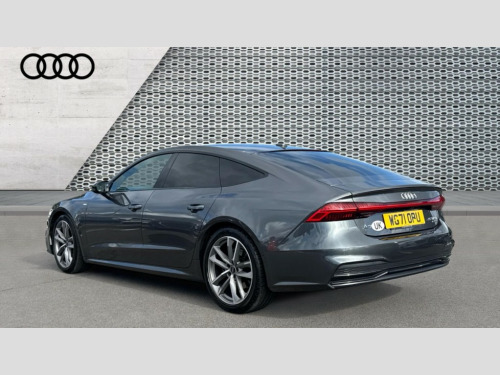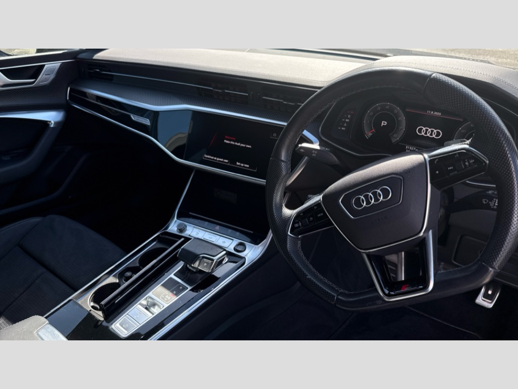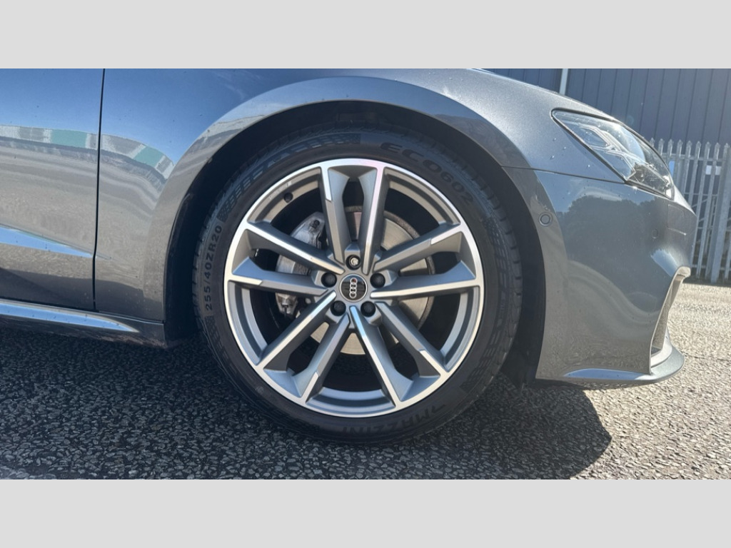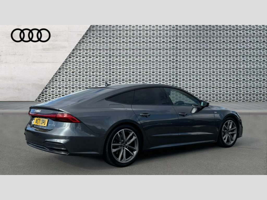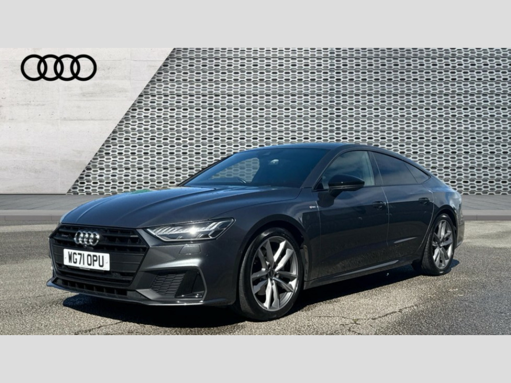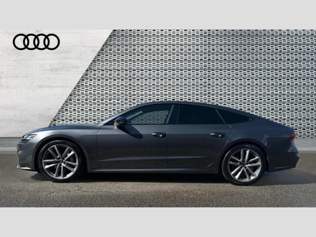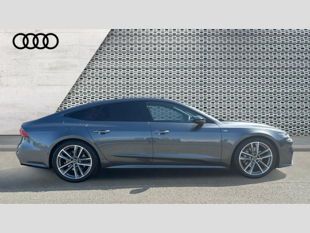 Audi A7 45 TFSI 265 Quattro Black Edition 5dr S Tronic 360 degree parking camera, Audi connect safety and service (e-call), Audi connect with Amazon Alexa Integration, Audi drive select, Audi smartphone interface, Audi virtual cockpit - 12.3" high resolution LCD digital instrument cluster display, Automatic start/stop system with coasting functionality, Bluetooth interface, Colour driver's information system display, Electric boot lid release, Lane departure warning system, MMI nav plus with MMI touch + 10.1" and 8.6" HD haptic touch screen/3D city models/country information/online map/route info and personal route assist, Operating buttons in black, glass look with haptic feedback, Power operated tailgate, Progressive steering, Service indicator, Voice control system, Sports suspension, Audi music interface - 2 USB ports with charger and data functions, Auxiliary input socket, Bang + Olufsen premium sound system, DAB digital radio module, Coming/leaving home animations in front and rear, Electrically adjustable, heated and folding door mirrors with driver memory function and integrated LED indicators, Frameless auto dimming interior rear view mirror, Front and rear electric windows, Gloss black exterior mirror housings, Gloss black highlights on the exterior area of the Audi Single frame, Gloss black highlights on the front and rear bumpers, Gloss black highlights on the radiator grille, Gloss black highlights on the side windows trim strips, HD Matrix LED headlights with dynamic front and rear indicators, Headlight washers, Heat insulating darkened glass in side and rear windows, LED rear lights, Rain and light sensors, Rear side wing doors, Rear wiper, Retractable rear boot spoiler, S line air inlet design with inlay in high gloss black, S Line badge on front fender, S line badge on front grille, S Line Black rear diffuser with chrome inlays and rear grille, S Line side skirts, Signature LED daytime running lights, Third brake light, Towbar preparation, Windscreen with heat-insulating glass, 2 zone deluxe electronic climate control, 4-way electric lumbar support, 40/20/40 split folding 3 seater rear seat bench with rear centre armrest, Black cloth headlining, Electrically adjustable front seats - driver seat with memory, Front and rear headrests, Front centre armrest, Heated front seats, Height/reach adjust steering wheel, Illuminated sun visors with vanity mirrors, ISOFIX child seat mounting and top tether in front and outer rear seats with front passenger airbag deactivation, Leather gear knob, Leatherette upper instrument panel and door shoulders, Luggage compartment floor, S line front and rear floor mats with contrast stitching, Single front passenger seat, Stainless steel pedals and foot rest, Tool kit and car jack, Extended LED Interior multi coloured light pack - A7, Non smoking pack - A7, Park assistance plus pack - A7, 3 point seatbelts on all seats, Audi pre-sense front, Driver and passenger airbags, Electromechanical parking brake, Electronic stabilisation control including ABS, ASR and EDL, Extended pedestrian protection measures, Hill hold assist, Manual child lock in rear doors, Seatbelt monitoring, Tyre pressure warning light, Warning triangle and first aid kit, Advanced key, Anti theft alarm with tow away protection, Anti-theft wheel bolts and wheel loosening detection, Immobiliser, Preparation for tracking system, Remote central locking, Carbon twill inlays, 20" 5 double arm design Audi sport cast aluminium high sheen matt titanium look alloy wheels