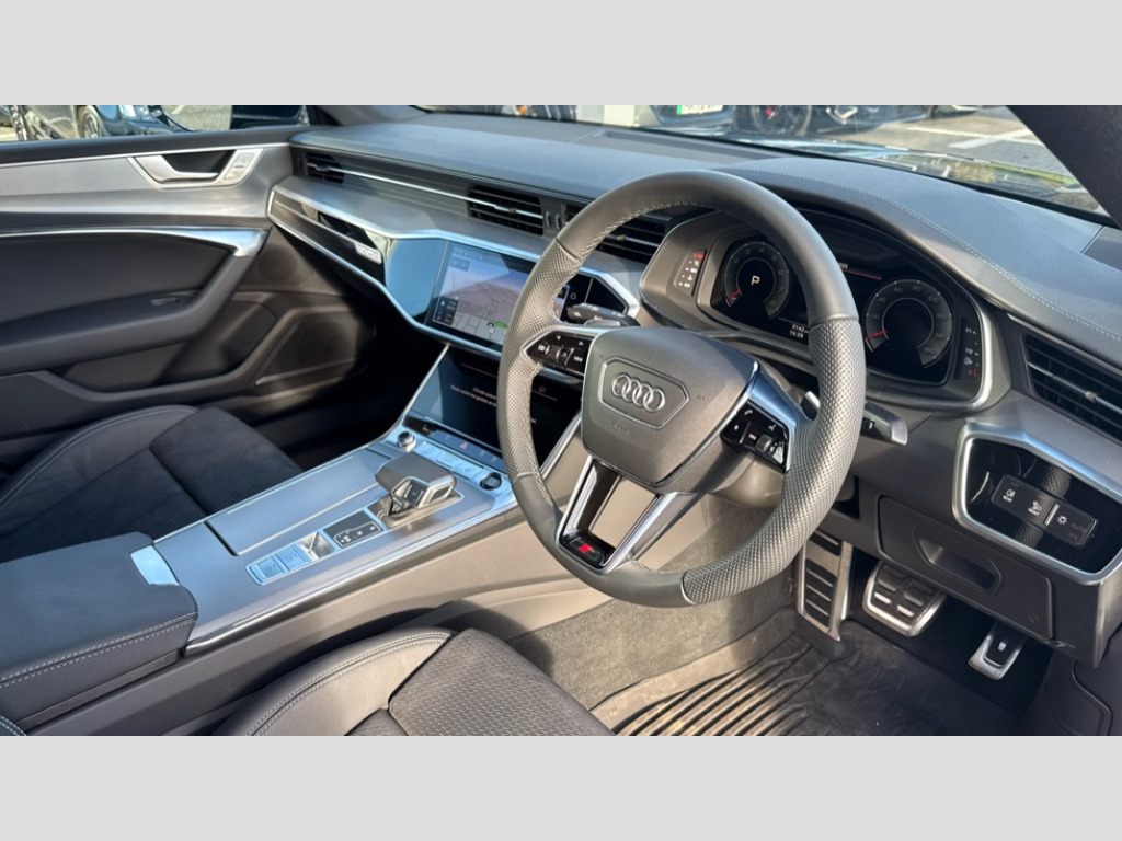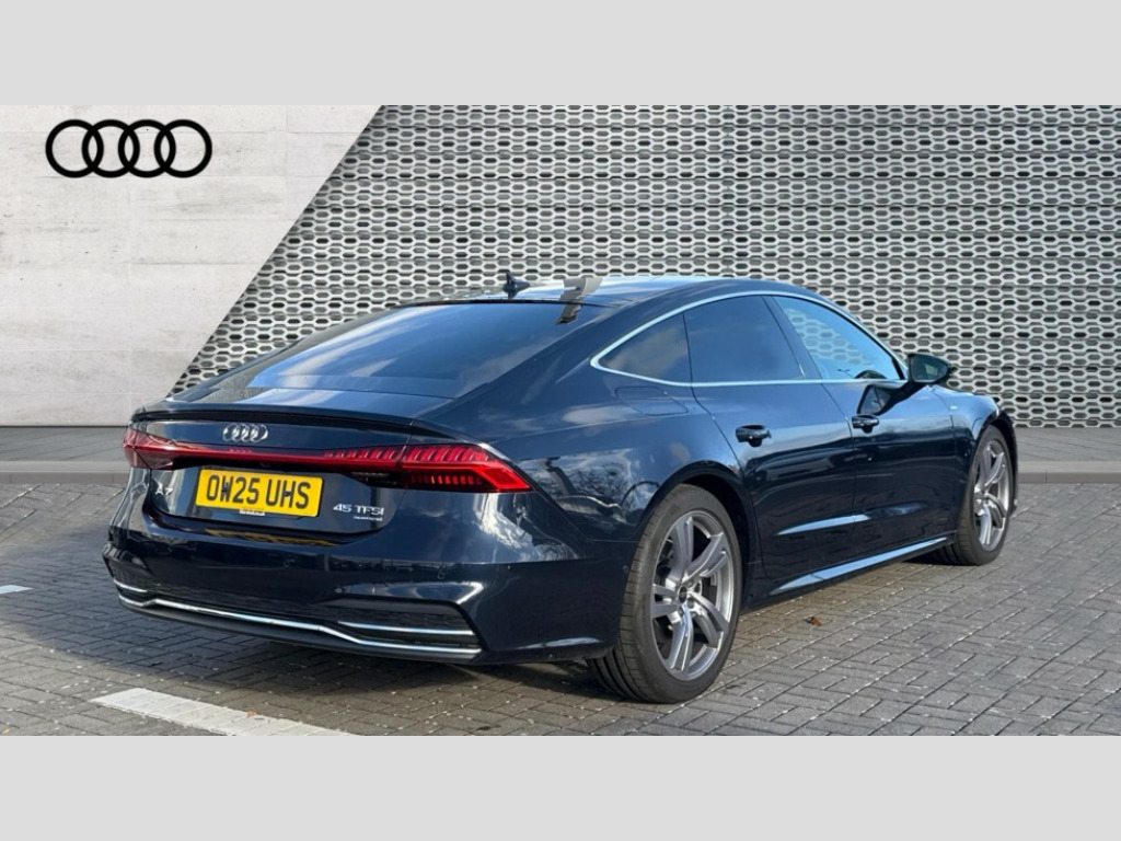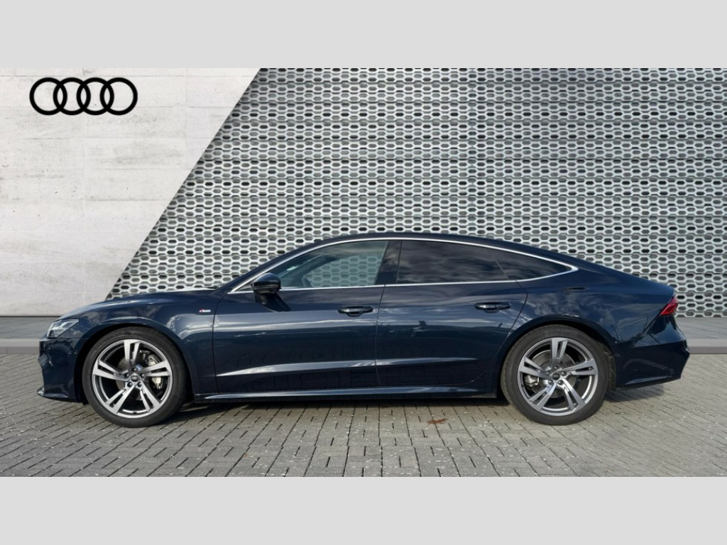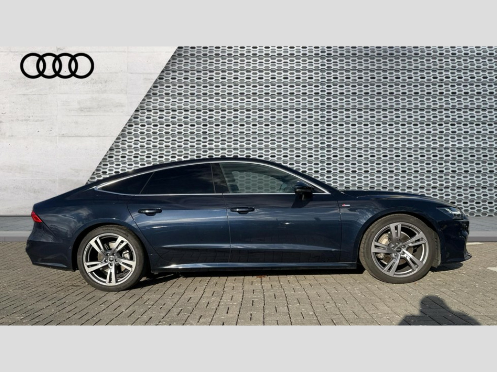 Audi A7 45 TFSI Quattro S Line 5dr S Tronic 360 degree parking camera, Audi connect safety and service (e-call), Audi connect with Amazon Alexa Integration, Audi drive select, Audi virtual cockpit, Automatic start/stop system with coasting functionality, Bluetooth interface, Camera based traffic sign recognition, Colour driver's information system display, Head up Display, Lane departure warning system, MMI nav plus with MMI touch + 10.1" and 8.6" HD haptic touch screen/3D city models/country information/online map/route info and personal route assist, Operating buttons in black, glass look with haptic feedback, Progressive steering, Service indicator, Smartphone interface includes wireless Apple carplay/Android Auto, Voice control system, Quattro on demand, Sports suspension, Audi music interface, Auxiliary input socket, Bang + Olufsen premium sound system, DAB digital radio module, Black rear diffuser with chrome inlays, Body coloured door mirrors, Electrically adjustable heated and folding + automatically dimming exterior mirrors with memory function, Frameless auto dimming interior rear view mirror, Front and rear electric windows, HD Matrix LED headlights, Heat insulating darkened glass in side and rear windows, High gloss black air inlets, High gloss black radiator grille with chrome single frame surround, LED 3rd brake light, LED rear lights with dynamic indicators, Privacy glass with side and rear windows, Rain and light sensors, Rear side wing doors, Rear wiper, Retractable rear boot spoiler, S Line front and rear bumpers, Signature LED daytime running lights, Towbar preparation, Windscreen with heat-insulating glass, 2 zone deluxe electronic climate control, 3 spoke high multi-function leather steering wheel with shift paddles, 4-way electric lumbar support, 40/20/40 split folding 3 seater rear seat bench with rear centre armrest, Audi phone box light, Black cloth headlining, Electrically adjustable front seats - driver seat with memory, Front and rear headrests, Front centre armrest, Heated front seats, Height/reach adjust steering wheel, Illuminated sun visors with vanity mirrors, ISOFIX child seat mounting and top tether in front and outer rear seats with front passenger airbag deactivation, Leather gear knob, Leatherette upper instrument panel and door shoulders, Luggage compartment lid, electrically opening and closing, S line front and rear floor mats with contrast stitching, Single front passenger seat, Stainless steel pedals and foot rest, Extended LED Interior multi coloured light pack - A7, Non smoking pack - A7, Park assistance plus pack - A7, S line exterior style pack - A7, 3 point seatbelts on all seats, Audi pre-sense front, Driver and passenger airbags, Electromechanical parking brake, Electronic stabilisation control including ABS, ASR and EDL, Extended pedestrian protection measures, Hill hold assist, Manual child lock in rear doors, Seatbelt monitoring, Tyre pressure warning light, Warning triangle and first aid kit, Anti theft alarm with tow away protection, Anti-theft wheel bolts and wheel loosening detection, Immobiliser, Keyless Go, Preparation for tracking system, Remote central locking, Dark matt brushed aluminium inlay, Tool kit