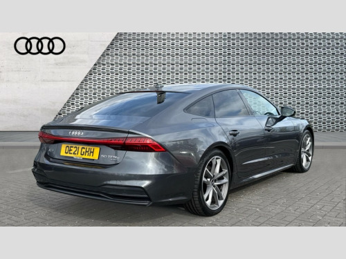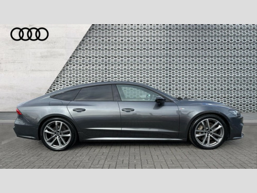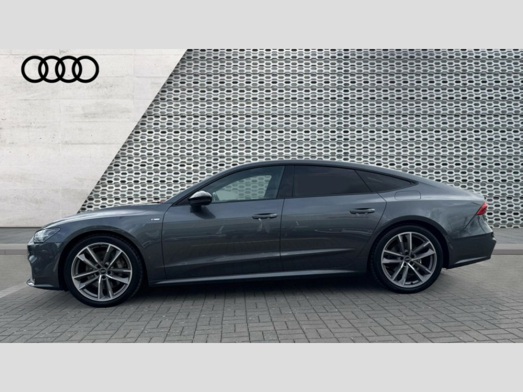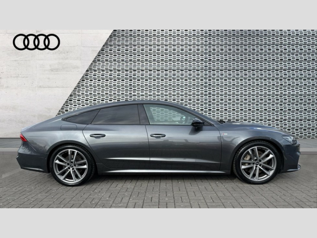 Audi A7 50 TFSI e 17.9kWh Qtro Black Edition 5dr S Tronic Audi connect safety and service (e-call), Audi connect with Amazon Alexa Integration, Audi drive select, Audi parking system plus - acoustic and visual park assist system for front and rear, Audi phone box with wireless charging, Audi smartphone interface, Audi virtual cockpit - 12.3" high resolution LCD digital instrument cluster display, Automatic start/stop system with coasting functionality, Colour driver's information system display, Electric boot lid release, Lane departure warning system, MMI nav plus with MMI touch + 10.1" and 8.6" HD haptic touch screen/3D city models/country information/online map/route info and personal route assist, Operating buttons in black, glass look with haptic feedback, Power operated tailgate, Progressive steering, Rear view camera, Service indicator, Voice control system, 3 pin 10 amp domestic charging cable, 52 litre fuel tank, Hybrid propulsion system, Quattro on demand, Sports suspension lowered by 10mm, Type 2 mode 3 32 amp charging cable, Type 2 socket for AC charging, Audi music interface - 2 USB ports with charger and data functions, Audi sound system with 6 channel amplifier, 180 watt amplifying capacity and 10 loudspeakers including subwoofer, Auxiliary input socket, DAB digital radio module, Coming/leaving home animations in front and rear, Electrically adjustable, heated and folding door mirrors with driver memory function and integrated LED indicators, Frameless auto dimming interior rear view mirror, Front and rear electric windows, Gloss black exterior mirror housings, Gloss black highlights on the exterior area of the Audi Single frame, Gloss black highlights on the front and rear bumpers, Gloss black highlights on the radiator grille, Gloss black highlights on the side windows trim strips, HD Matrix LED headlights with dynamic front and rear indicators, Headlight washers, Heat insulating darkened glass in side and rear windows, LED rear lights, Privacy glass with side and rear windows, Rain and light sensors, Retractable rear boot spoiler, S line air inlet design with inlay in high gloss black, S Line badge on front fender, S line badge on front grille, S Line Black rear diffuser with chrome inlays and rear grille, S Line side skirts, Signature LED daytime running lights, Towbar preparation, Windscreen with heat-insulating glass, 4 zone deluxe automatic climate control, 4-way electric lumbar support, 40/20/40 split folding 3 seater rear seat bench with rear centre armrest, Black cloth headlining, Electrically adjustable front seats - driver seat with memory, Front and rear headrests, Front centre armrest, Heated front seats, Height/reach adjust steering wheel, Illuminated door sill trims with S logo, Illuminated sun visors with vanity mirrors, ISOFIX child seat mounting and top tether in front and outer rear seats with front passenger airbag deactivation, Leather gear knob, Leatherette upper instrument panel and door shoulders, Luggage compartment floor, S line front and rear floor mats with contrast stitching, Stainless steel pedals and foot rest, Tool kit and car jack, LED interior ambient lighting pack - A7, Non smoking pack - A7, 3 point seatbelts on all seats, Audi pre-sense front, Driver and passenger airbags, Electromechanical parking brake, Electronic stabilisation control including ABS, ASR and EDL, Extended pedestrian protection measures, Hill hold assist, Seatbelt monitoring, Tyre pressure warning light, Warning triangle and first aid kit, Anti theft alarm with tow away protection, Anti-theft wheel bolts and wheel loosening detection, Immobiliser, Keyless Go, Preparation for tracking system, Remote central locking, Carbon twill inlays, 20" 5 double arm design Audi sport cast aluminium high sheen matt titanium look alloy wheels, Tyre repair kit