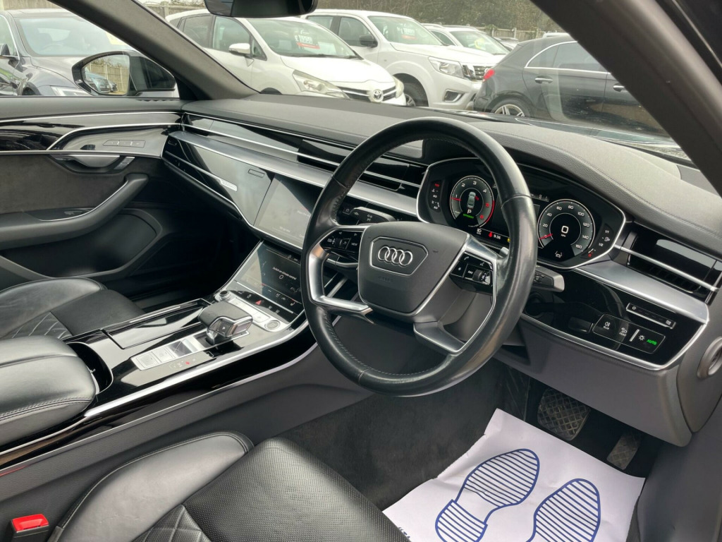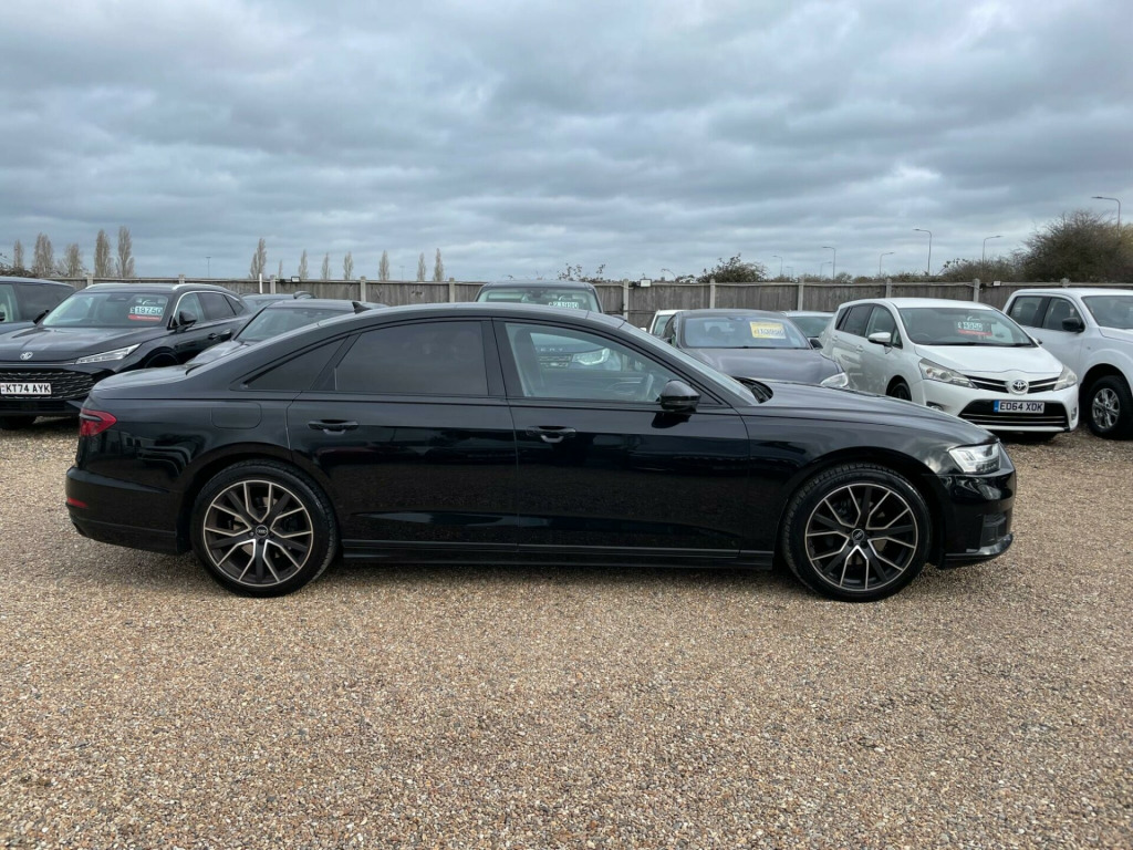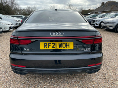 6 MONTHS NATIONWIDE WARRANTY, 12 Months Free AA Breakdown Cover, 2 Keys, all previews MOTs available, we are located at CANVEY ROAD, CANVEY ISLAND, ESSEX, SS8 0QD, This 2021 Audi A8 TDI V6 Black Edition presents an exceptional opportunity with remarkably low mileage for its age, having covered just 42,500 miles. This Euro 6 compliant model boasts a powerful 3.0 litre diesel engine paired with Audi's renowned four wheel drive system, ensuring confident performance in all conditions. The Black Edition trim enhances its sophisticated appeal, while the inclusion of Advanced Key with keyless entry offers seamless access. Inside, you will find luxurious Comfort Contour Seats with memory function, a Head Up Display for convenient information access, and the Audi Phone Box with wireless charging for effortless connectivity. A rear view camera aids in parking manoeuvres, making every journey more relaxed.The impressive acceleration of this A8, achieving 0-62mph in just 5.9 seconds, demonstrates its dynamic capability, setting it apart from many other vehicles in its class. Furthermore, the generous boot space provides ample room for luggage or shopping, highlighting its practicality for everyday use and longer trips. This combination of performance, advanced technology, and spaciousness makes this Audi A8 a truly compelling proposition for those seeking a premium driving experience.. 2-Zone Automatic Air Conditioning, 20in Alloy Wheels - Audi Sport Cast 5-V-Spoke Star Design in Gloss Anthracite Black - Diamond Turned Finish, 3-seat Rear Bench with Centre Armrest, 4-Way Electric Lumbar Support, ABS - Anti-Lock Braking System, AMI - Audi Music Interface, ASF - Audi Space Frame, Acoustic Double Glazing, Adaptive Air Suspension, Adaptive Cruise Control with Speed Limiter, Adaptive Cruise Control with Stop&Go, Advanced Key, Anti-Theft Alarm with Tow-Away Protection, Anti-Theft Wheel Bolts and Wheel Loosening Warning, Audi Connect, Audi Connect Safety and Service - e-call, Audi Drive Select, Audi HD Matrix LED Headlights, Audi Phone Box with Wireless Charging, Audi Pre-Sense Basic, Audi Pre-Sense Front, Audi Sound System, Audi Virtual Cockpit, Audi Wireless Smartphone Interface, Black Door Mirrors, Black Exterior Styling, Camera-Based Traffic Sign Recognition, Cloth Headlining in Black, Comfort Centre Armrest - Front, Comfort Contour Seats, Connect Package Plus, DAB Digital Radio, Door Mirrors - Electrically Adjustable - Heated - Folding - Automatically Dimming with Memory Function and Integrated LED Indicator, Driver and Front Passenger Airbag, Electric Auxiliary Air Heater, Electric Front Seats with Memory Function, Electric Windows - Front, Extended Pedestrian Protection, First Aid Kit and Warning Triangle, Front Reading Lights, Front and Rear Brake Calipers - Painted Black, Front and Rear Floor Mats, Gear Knob - Leather, Glove Compartment Cooling, Head Restraints - Rear, Head-Up Display, Heated Front Seats, High-Beam Assist, Hill Hold Assist, ISOFIX Child Seat Mounting for Outer Rear Seats, LED Interior Light Package, LED Rear Combination Lamps with Dynamic Turn Signal, Lower Inlays in Dark Matt Brushed Aluminium, MMI Navigation Plus including MMI Touch, Operating Buttons in Black - Glass with Extended Aluminium, Parking System Plus - Front and Rear Sensors, Power Door Closure, Power Operated Tailgate, Premium MMI Radio Plus, Privacy Glass, Rear-View Camera, Seat Belt Reminder, Side Airbags - Front and Rear Head Airbag System, Side and Rear Windows in Heat-Insulating Glass, Sun Visors with Illuminated Vanity Mirrors on Driver and Front Passenger Side, Twin-Spoke Leather Multi-Function Steering Wheel with Shift Paddles, Tyre Pressure Warning Light, Tyre Repair Kit, Upper Inlays in Piano Finish - Black, Windscreen with Acoustic Glazing, quattro All-Wheel Drive with Self-Locking Centre Differential.
