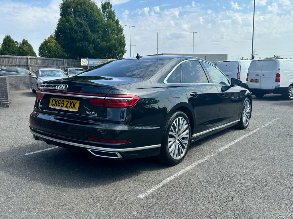 We are proud to present a AUDI A8 3.0 TDI V6 50 S line Saloon 4dr Diesel Tiptronic quattro Euro 6 A well cared for and maintained vehicle by covering just over 55,000 miles factory fiited extras , include air con,sat nav, apple carplay, speed on display, Multi function Steering wheel, parking sensor, cruise and much more. This car looks and drives superb and really needs to be seen to be appreciated. Any inspection and test drive welcome. We offer 6 Months AA Warranty extendable by upto 36 Months & 12 Months Breakdown cover. Full dealer facilities available, low rate finance available, low cost delivery, extended warranties, part exchanges welcome. 19in Alloy Wheels - 15-Spoke Design Cas, 2-Zone Automatic Air Conditioning, 3-seat Rear Bench with Centre Armrest, 4-Way Electric Lumbar Support, ABS - Anti-Lock Braking System, Adaptive Air Suspension, Adaptive Cruise Assist, Advanced Key, Airbags - Driver, Airbags - Front Passenger, AMI - Audi Music Interface, Anti-Theft Alarm with Tow-Away Protectio, Anti-Theft Wheel Bolts and Wheel Looseni, ASF - Audi Space Frame, Audi Connect, Audi Connect Safety and Service - e-call, Audi Drive Select, Audi HD Matrix LED Headlights, Audi Phone Box with Wireless Charging, Audi Pre-Sense Front, Audi Sound System, Audi Virtual Cockpit, Audi Wireless Smartphone Interface, Body Coloured Door Mirrors, Camer
