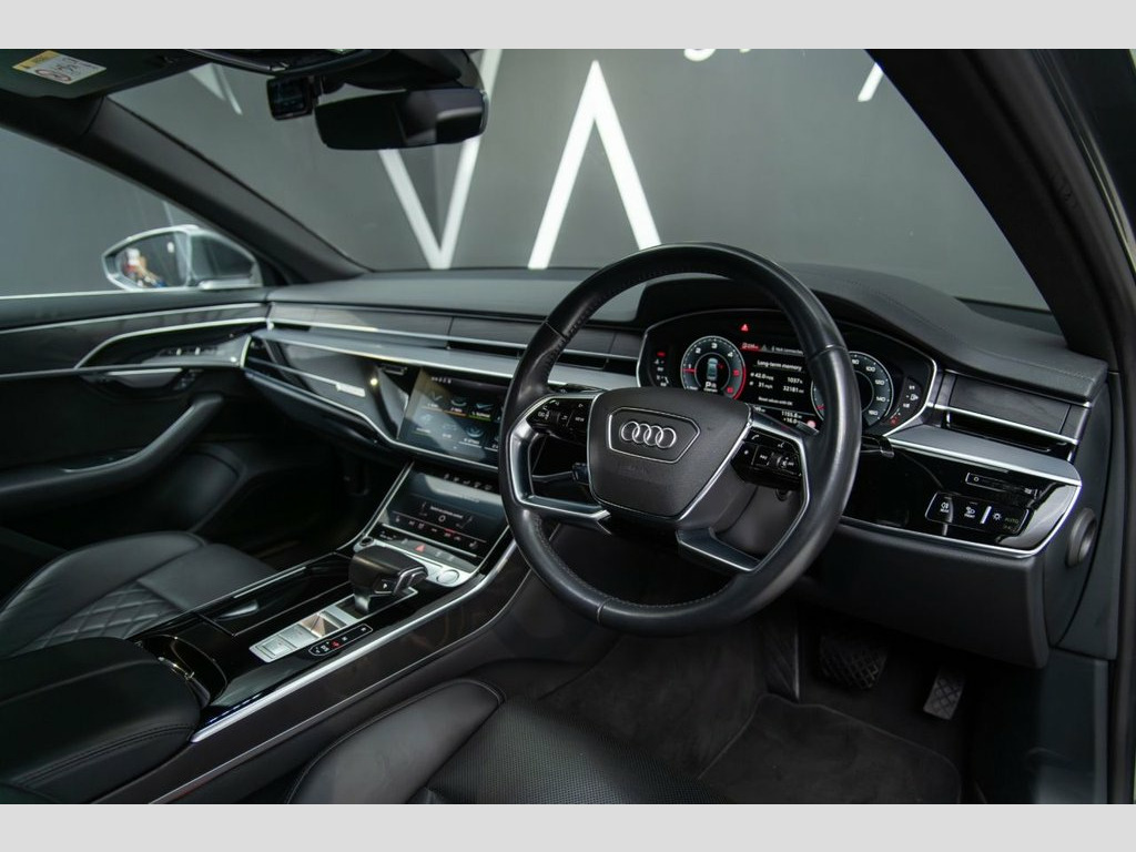 This car, the Audi A8 3.0 TDI V6 50 S line Saloon, embodies refinement, power, and advanced engineering, with 286 PS delivered smoothly through the Tiptronic automatic transmission and the assurance of quattro all-wheel drive. Presented in S line specification, it stands out with HD Matrix LED headlights, chrome exterior styling, and 19in 15-spoke cast aluminium alloy wheels, ensuring a commanding yet elegant road presence. Inside, craftsmanship meets innovation, with fine grain ash natural grey brown inlays, dark matt brushed aluminium lower trim, and a black cloth headlining framing an interior built around both comfort and driver focus. Technology is at the forefront, featuring the Audi Virtual Cockpit, MMI Navigation Plus with MMI Touch, Audi Phone Box with wireless charging, head-up display, and seamless integration through Audi Connect services. Luxury and practicality combine with heated electric front seats with memory function, adaptive air suspension, 2-zone automatic air conditioning, LED interior light package, and power door closure for effortless convenience. Safety is uncompromised, with systems such as Audi Pre-Sense, lane departure warning with emergency assist, traffic sign recognition, and a rear-view camera with Parking System Plus providing reassurance on every journey. With its blend of dynamic performance, innovative technology, and hand-finished detail, this A8 is a true flagship saloon designed to excel in every environment. DASH CAM , Daytona Grey, 19in Alloy Wheels - 15-Spoke Design Cast, 2-Zone Automatic Air Conditioning, 3-seat Rear Bench with Centre Armrest, 4-Way Electric Lumbar Support, ABS - Anti-Lock Braking System, AMI - Audi Music Interface, ASF - Audi Space Frame, Adaptive Air Suspension, Adaptive Cruise Assist, Advanced Key, Airbags - Driver, Airbags - Front Passenger, Anti-Theft Alarm with Tow-Away Protectio, Anti-Theft Wheel Bolts and Wheel Looseni, Audi Connect, Audi Connect Safety and Service - e-call, Audi Drive Select, Audi HD Matrix LED Headlights, Audi Phone Box with Wireless Charging, Audi Pre-Sense Front, Audi Sound System, Audi Virtual Cockpit, Audi Wireless Smartphone Interface, Body Col