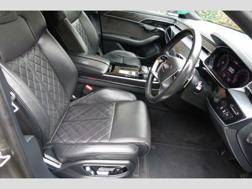 This 2019 Audi A8 TDI V6 S line boasts a full dealership service history, offering you complete peace of mind. This sophisticated saloon features a powerful 3.0 litre diesel engine paired with Audi's renowned four wheel drive system, ensuring excellent performance and stability. As a Euro 6 compliant vehicle, it meets stringent emission standards. Inside, you'll find the luxurious Audi Exclusive Leather Trim Package 1 in Valcona Leather, complemented by individual electrically adjustable and heated outer rear seats. The S line trim enhances its sporty appeal, while the HD Matrix LED headlights with dynamic indicators provide superior visibility. Experience the impressive acceleration of this A8, reaching 0-60mph in just 5.9 seconds, a testament to its dynamic capabilities. This performance, combined with the advanced Head Up Display and a helpful rear view camera for parking assistance, demonstrates how this Audi A8 offers a superior driving experience compared to other vehicles in its class. A 3 month warranty is included for your added assurance. Leather Package, Adaptive Windscreen Wipers with Integrat, 19in Alloy Wheels - 15-Spoke Design Cast, 2-Zone Automatic Air Conditioning, 22-Way Electrically Adjustment Seats wit, 230V Socket, 4-Way Electric Lumbar Support for Front , ABS - Anti-Lock Braking System, AMI - Audi Music Interface, Acoustic Double Glazing, Adaptive Air Suspension, Adaptive Cruise Assist, Advanced Key, Airbags - Driver, Airbags - Front Passenger, Anti Theft Locking Wheel Bolts and Wheel, Anti-Theft Alarm with Tow-Away Protectio, Audi Connect Infotainment Services (36 M, Audi Connect Safety and Service - e-call, Audi Drive Select, Audi Parking System Plus, Audi Phone Box with Wireless Charging, Audi Pre-Sense Front,