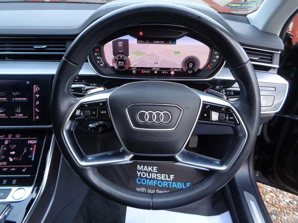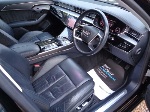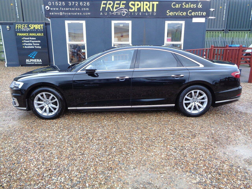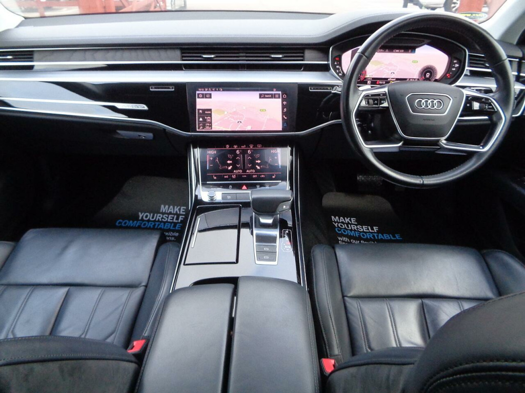 A Stunning 1 Owner A8 with Audi History from new (See Pictures), Specification includes Satellite Navigation, Apple/Android Car Play, Bluetooth Phone, BLuetooth Audio, DAB Radio, Wireless Phone Charging, Reverse Parking Camera, Front & Rear Parking Sensors, Digital Climate Control, Adaptive Cruise Control, Heads-Up Display, Virtual Interchangeable LED Dash Display, Leather Seats, Heated Seats, Electrically Adjustable Memory Seats, Electric Power Fold Heated Door Mirrors, Electric Windows, Electric tailgate, Rear Privacy Glass, Front & Rear Armrests, Multifunction Steering Wheel, Alloy Wheels…………………. See Below For Further Specification................. The additional specification details below are provided by Autotrader not by Free Spirit. They are a general guide for the most recent model of this vehicle but may not be precisely correct for this actual vehicle so please don’t rely on them. We will happily assist you in carefully checking that this vehicle’s specification is in line with your requirements.Free Spirit Automotive have been trading since 2004. We fund cars with BMW Alphera Finance & have access to multiple lenders offering different lending criteria to accommodate all customer credit scores. All vehicles are fully Health Checked in our purpose-built workshop prior to delivery & are Serviced & MOT’d as required. Every vehicle comes with a Warranty as standard. We stock between 70-100 cars and have more vehicles stocked than advertised. Part Exchange welcome. We have sold & delivered over 10,000 cars since we opened in 2004.. 230V Socket, AMI - Audi Music Interface, Audi Connect Infotainment Services (36 Month Subscription From New), Audi Connect Safety and Service - e-call, Audi Phone Box with Wireless Charging, Audi Smartphone Interface, Audi Sound System, Audi Virtual Cockpit - 12.3in High Resolution LCD Display, DAB Digital Radio, DVD Player, MMI Navigation Plus including MMI Touch, MMI Radio Plus, Adaptive Cruise Assist, Audi Drive Select, Audi Parking System Plus, Camera-Based Traffic Sign Recognition, Head-Up Display, Lane Departure Warning, Rear-View Camera, Tyre Pressure Warning Light, 18in Alloy Wheels - 5-V-Spoke Design Forged, Anti Theft Locking Wheel Bolts and Wheel Loosening Detection, Brake Calipers - Black, Chrome Exterior Pack, Door Mirrors - Electrically Adjustable - Heated - Folding - Automatically Dimming with Memory Function and Integrated LED Indicator, Electric Windows - Front and Rear, Exterior Mirror Housings in Body Colour, Heat-Insulating Glass - Side and Rear Windows, Space Saver Spare Wheel, Windscreen with Acoustic Glazing, Headlights - High-Beam Assist, LED Front and Rear Lights, LED Rear Lights, 22-Way Electrically Adjustment Seats with Memory Function, 2-Zone Automatic Air Conditioning, 4-Way Electric Lumbar Support for Front Seats, Automatic Air Recirculation, Cloth Headlining, Comfort Centre Armrest - Front, Electric Auxiliary Air Heater, Folding 3-seat Rear Bench with Centre Armrest, Front and Rear Floor Mats, Front Centre Armrest, Front Reading Lights, Front Sun Visors with Illuminated Vanity Mirrors, Glove Compartment Cooling, Leather Gear Lever, LED Interior Lighting Pack, Lower Inlays in Dark Matt Brushed Aluminium, Operating Buttons - Black, Power Operated Tailgate, Seats - Heated Front, Tool Kit and Car Jack, Twin-Spoke Leather Multi-Function Steering Wheel with Shift Paddles, Upper Inlays - Fine Grain Ash - Natural Grey Brown, Adaptive Air Suspension, Power Steering, Quattro with Self-Locking Centre Differential, ABS - Anti-Lock Braking System, Advanced Key, Airbags - Driver, Airbags - Front Passenger, Anti-Theft Alarm with Tow-Away Protection, Audi Pre-Sense Front, Extended Pedestrian Protection, First Aid Kit and Warning Triangle, Front and Rear Side Airbag, Hill Hold Assist, ISOFIX Child Seat Mounting for Outer Rear Seats, Pre-Sense Basic, Seat Belt Reminder, Leather Package, Mythos Black, Privacy Glass, Valcona Leather - Comfort Seats - Black.