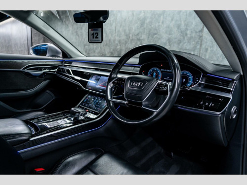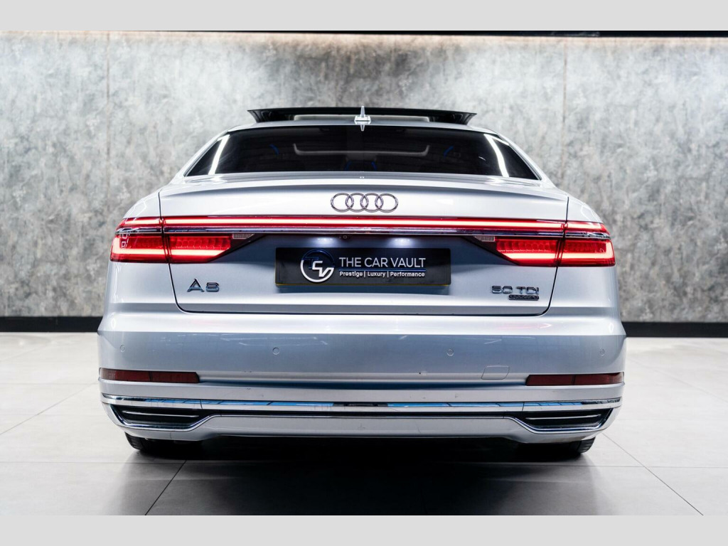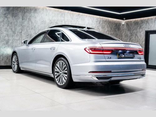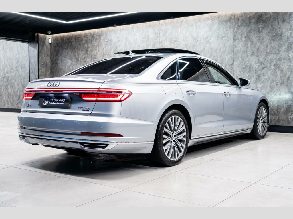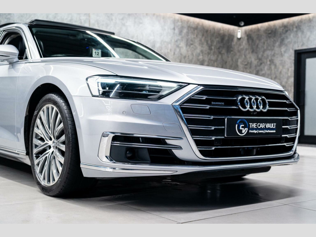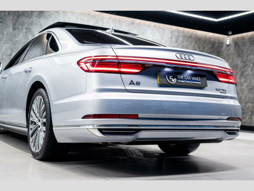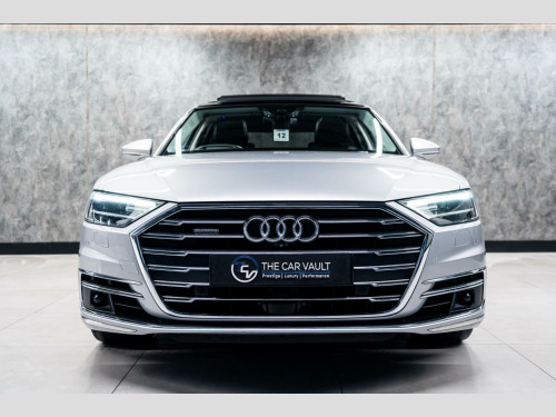 We At The Car Vault Are Proud To Offer This Stunning AUDI A8 3.0 TDI V6 50 Tiptronic Quattro Euro 6 Finished In FLORET SILVER METALLIC PAINT, This Vehicle Is a Well Maintained Example and Comes With a COMPREHENSIVE FULL SERVICE HISTORY and 2 ORIGINAL AUDI REMOTE KEYS, It Comes With The Following OPTIONAL SPECIFICATION: Chrome Exterior Pack, Panoramic Glass Sunroof, Head-Up Display (HUD), Adaptive Air Suspension, LED Front and Rear Lights, High-Beam Assist, Audi Virtual Cockpit, 360 Surround and Rear-View Camera, Audi Parking System Plus, Audi Pre-Sense Front, Advanced Key, Power Door Closure, Comfort and Sound Package, Bang and Olufsen Sound System, MMI Navigation Plus including MMI Touch, Audi Phone Box with Wireless Charging, Valcona Leather Seats-Black, 22-Way Electrically Adjustment Seats with Memory Function, Heated Front Seats, 4-Way Electric Lumbar Support for Front Seats, Upper Inlays-Fine Grain Ash/Natural Grey Brown, LED Interior Lighting Pack, Twin Spoke Leather Multi-Function Steering Wheel with Shift Paddles, Door Mirrors-Electrically Adjustable/Heated/Folding/Automatically Dimming with Memory Function and Integrated LED Indicator, Power Operated Tailgate, Acoustic Double Glazing, Privacy Glass, Tyre Pressure Monitoring System, Black Brake Calipers, 20in Alloy Wheels 10-Spoke Y Design Forged, Panroof