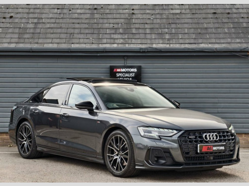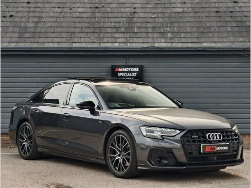 SAME DAY FINANCE AVAILABLE WITH £0 DEPOSIT. CALL OUR FINANCE TEAM FOR A QUOTATION TODAY. REQUEST A PERSONALISED VIDEO TODAY. STUNNING AUDI A8 S LINE BLACK EDITION LONG WHEEL BASE WITH JUST AUDI PLUS 1 OWNER FROM NEW BOASTING A FULL SERVICE HISTORY & COMPLIMENTED BY A HUGE FACTORY SPECIFICATION. THIS LOVELY EXAMPLE IS IN EXCELLENT CONDITION THROUGH OUT. DRIVES LIKE NEW. A VERY WELL LOOKED AFTER EXAMPLE. GREAT CAR ALL ROUND. PLEASE NOTE THIS IS NOT A VORSPRUNG MODEL. Daytona Grey, 20in Alloy Wheels - 10-Spoke Y - Anthrac, 21in Alloy Wheels - Audi Sport - 7-Arm D, 230 Volt Socket in Rear, 3-seat Rear Bench with Centre Armrest, 4-Way Electric Lumbar Support, 4-Zone Automatic Air Conditioning, ABS - Anti-Lock Braking System, AMI - Audi Music Interface, ASF - Audi Space Frame, Acoustic Double Glazing, Adaptive Air Suspension, Adaptive Cruise Assist, Adaptive Cruise Control with Speed Limit, Adaptive Windscreen Wipers with Integrat, Air Quality Pack, Ambient Lighting Package Plus, Anti-Theft Alarm with Tow-Away Protectio, Anti-Theft Wheel Bolts and Wheel Looseni, Assist Package Park with Remote Park Ass, Audi Beam, Audi Connect, Audi Connect Safety and Servic