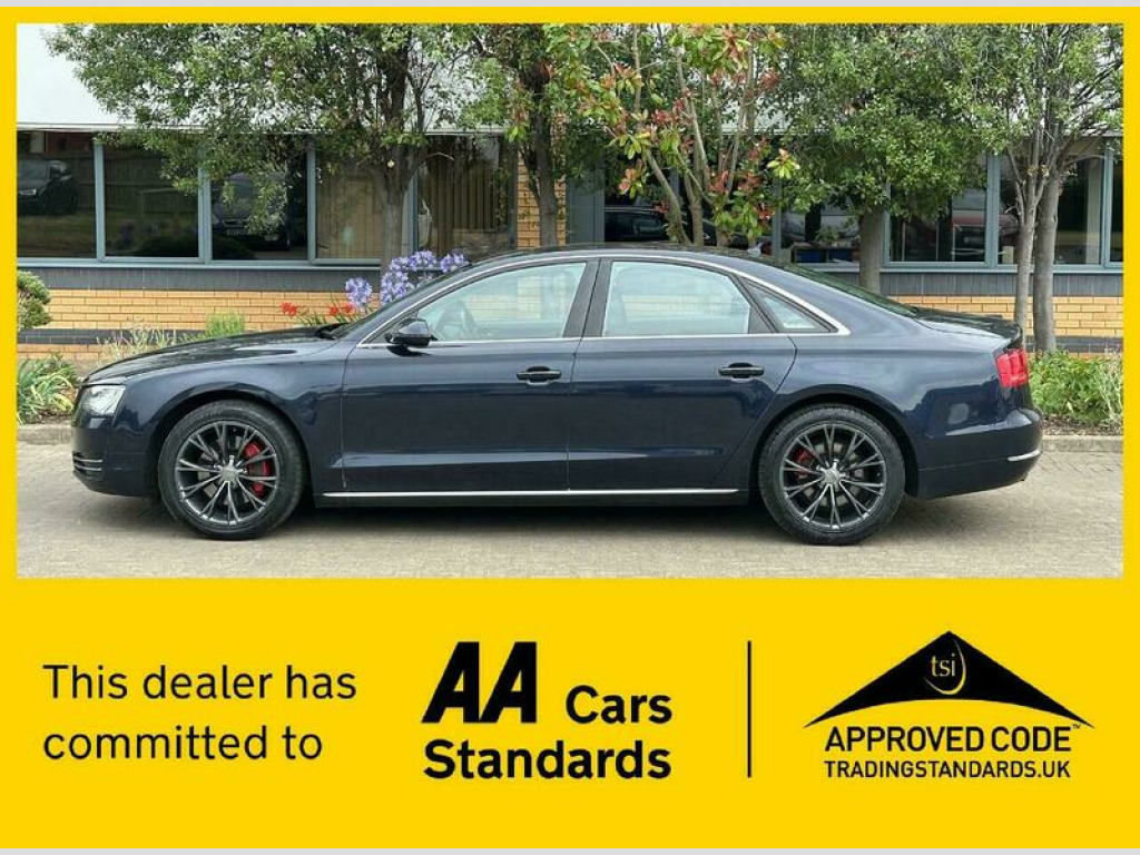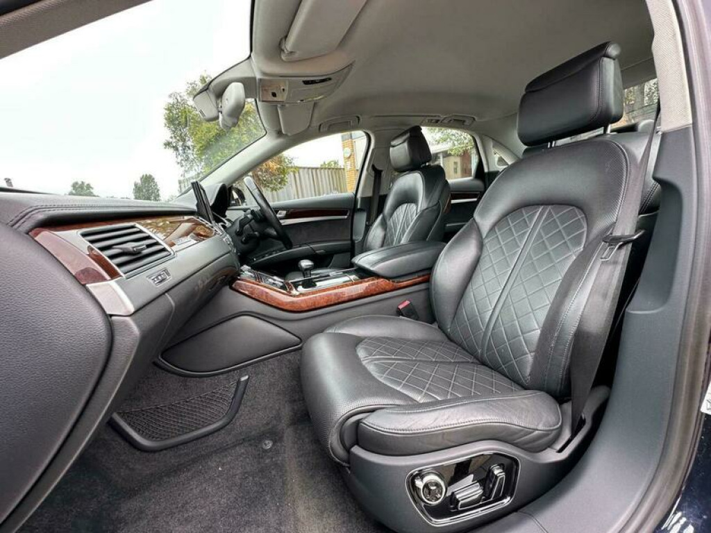 With only 87,700 miles on the clock, this 2011 Audi A8 TDI V6 Executive SE offers an enticing blend of luxury and performance. As a diesel model, it provides a refined driving experience, complemented by its Executive SE trim. The vehicle is equipped with a 3.0L engine and benefits from a Four Wheel Drive system, ensuring confident handling in various conditions. The interior environment is enhanced by Dual Zone Climate Control, allowing both the driver and passengers to set their preferred temperatures. This particular A8 stands out with its low insurance group, potentially saving you money on your premiums. The spacious boot provides ample room for luggage, shopping, or anything else you need to transport. Furthermore, the car's acceleration is impressive, reaching 0-62mph in just 6.6 seconds, demonstrating its performance capabilities. 19in 10Spoke Y design Alloy Wheels, 19in 5Arm cast Aluminium Alloy Wheels, 4Spoke Multifunction Steering Wheel with gearshift paddles, 9 Speakers, Adaptive Air suspension, Brushed Aluminium lower inlay, Cruise Control, Delete engine designation at Rear, Deletion of model & engine designation at Rear, Double glazing, DualZone Climate Control, Fine grain ash natural balsamic Brown upper inlay, Front&Rear floor mats, Headlining, Leather Gear Lever, Leather Steering Wheel, Mobile telephone preparation- Bluetooth interface, Personalised door sill Trim, Space saver spare Wheel, Walnut Brown Wood upper inlay
