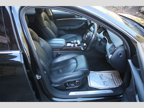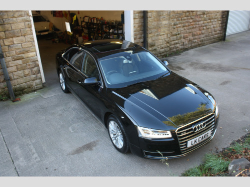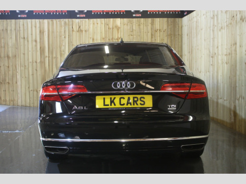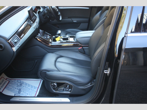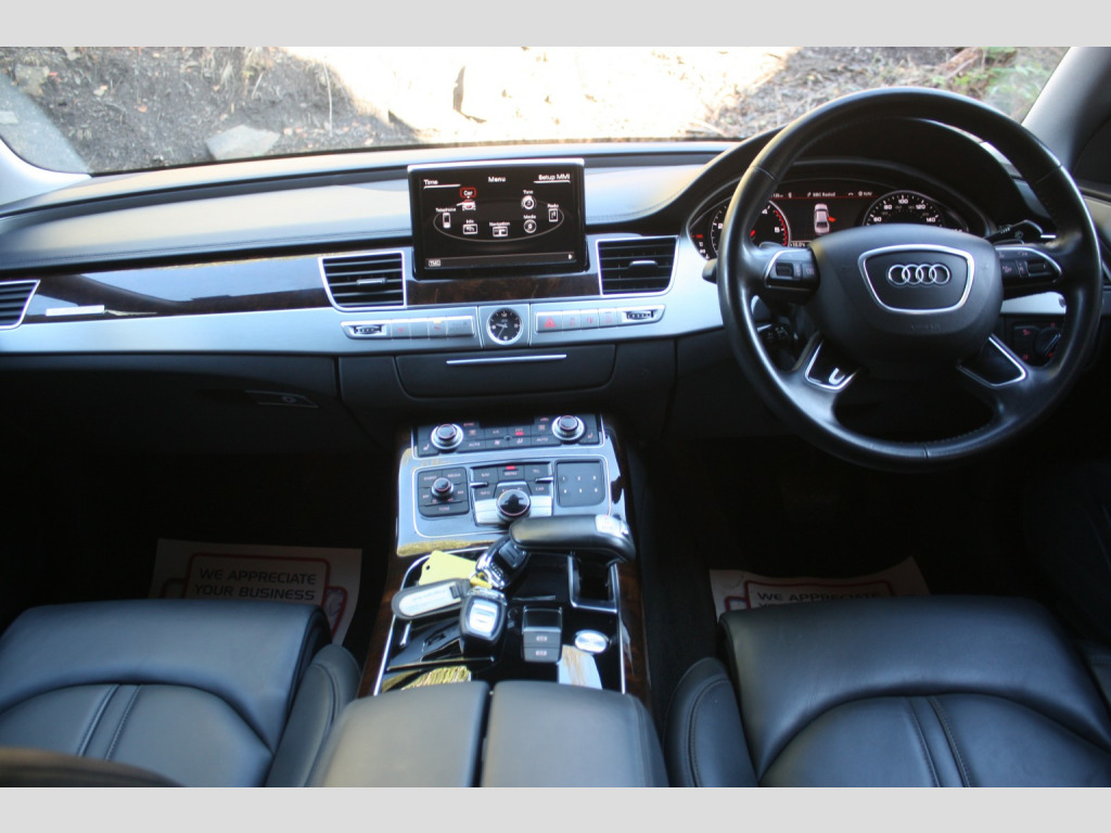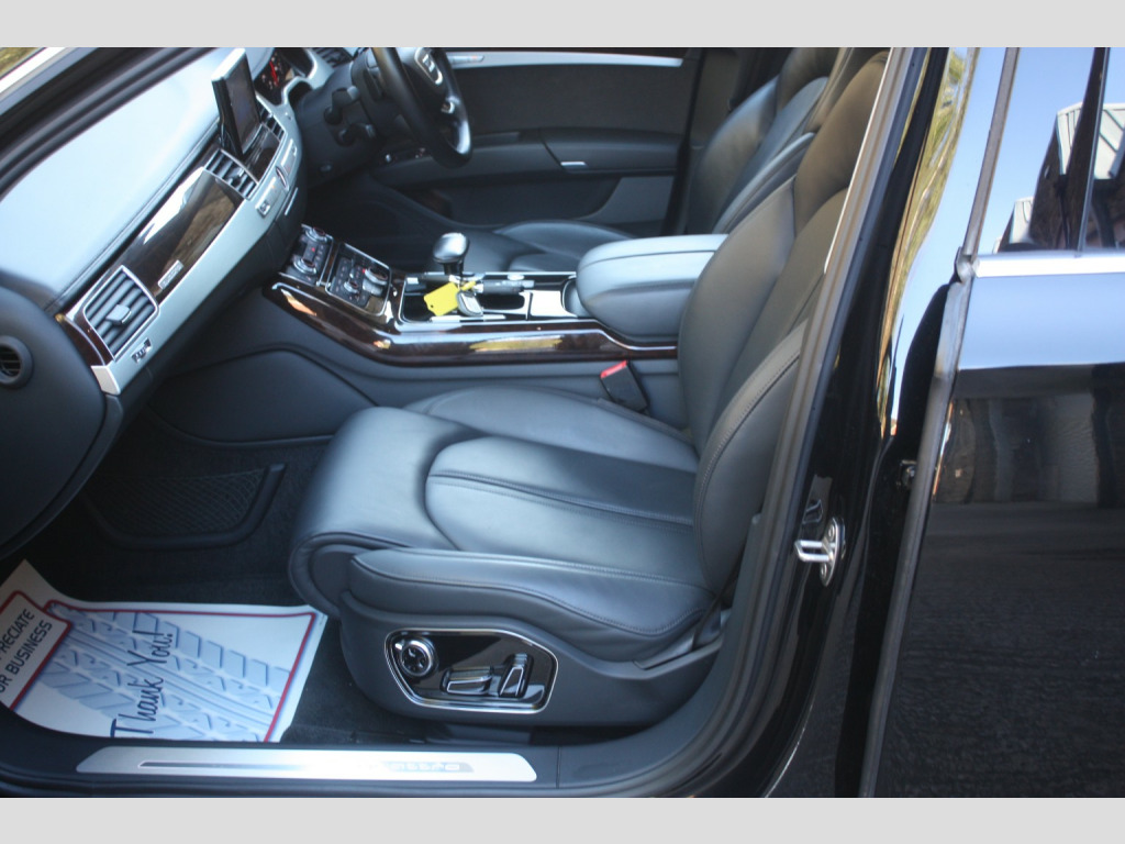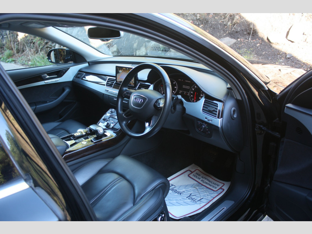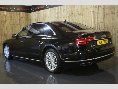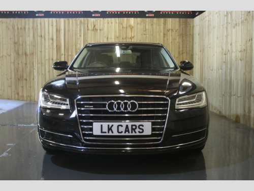 Boasting exceptionally low mileage for its age, this 2016 Audi A8 TDI V6 SE Executive finished in Mythos Black, represents a superb ownership proposition. With only two previous owners and a comprehensive service history culminating in a recent service on 4th July 2025 at 31,233 miles, this Euro 6 compliant vehicle has been meticulously maintained. Its 3.0 litre diesel engine paired with four wheel drive ensures a smooth and capable driving experience, further enhanced by a clear vehicle history check and a valid MOT until September 2026. You can also enjoy peace of mind with a 6 month warranty included. , This Audi A8 SE Executive is equipped with a range of desirable features that elevate its appeal. The opening panoramic sunroof floods the cabin with light, while front parking sensors and automatic headlights offer added convenience and safety. Inside, occupants will appreciate the deluxe 4 zone climate control, ensuring comfort for all, and heated front and outer rear seats for those cooler journeys. The generous boot space provides ample practicality for everyday needs and longer trips. Performance is also a strong point, with an impressive 0-60mph acceleration time of just 5.9 seconds, demonstrating the potent yet refined nature of this exceptional saloon. Private Plate included A8 ***, , FULL WALK AROUND VIDEO @ https://youtu.be/mekBoXOa2Cc, , We can provide flexible finance options to make it super easy for you to upgrade, along with part exchange options. We even offer nationwide delivery for your convenience. Check out our full range of vehicles at www.lkcars.co.uk, Viewing is by appointment only, please contact us on 07958390161, , 6 months warranty, Next MOT due 09/09/2026, Last serviced on 04/07/2025 at 31,233 miles, Full service history, 5 seats, Mythos Black, 2 owners, Upgrades - Front arm rests, Panoramic Sunroof, Standard Features - 100mm Front Centre Speaker, 12V Power Socket, 12V Power Socket - Luggage Compartment, 12V Power Socket - Rear, 18in Alloy Wheels - 10-Spoke-V Design, 2-Way System with 168mm Wide Speaker and Tweeters in the Rear, 260mm Subwoofer Located in the Parcel Shelf, 3D and Topographical Mapping, 7-Digit Postcode Recognition, ABS - Anti-Lock Braking System, AMI - Audi Music Interface, ASF - Audi Space Frame, Adaptive Air Suspension, Advanced Key - with Hands-Free Boot Opening System, Advanced Speech Recognition, Air Conditioning - Deluxe Automatic at the Rear, Air Conditioning Controls in Rear Centre Console for Passenger Compartment, Air Humidity Sensor, Air Quality Sensor, Air Vent Slats and Thumbwheels in Chrome Trim, Airbags - Driver, Airbags - Front Passenger, Alarm - Thatcham Category 1, All-LED Headlights with High-Beam Assist, Aluminium Inlay on Folding Compartment in Door Armrest, Ambient Lighting in the Centre Console - LED, Amplifier - 6 Channel, Analogue Clock in Lower Inlay, Anti Theft Locking Wheel Bolts, Armrest - Rear Comfort, Audi Backguard Head Restraints, Audi Drive Select, Audi Hands-Free Boot Opening System, Audi Parking System Advanced with Reversing Camera, Audi Parking System Plus, Audi Sound System, Auto-Dimming Rear-View Mirror, Automatic Defrost Function, Automatic Headlight Range Adjustment, Automatic Wipers with Rain Sensor, Body Coloured Bumpers, Body Coloured Door Mirrors, Brushed Aluminium Silver Switches in Lower Inlay - Centre Console and Door, CD-DVD-MP3 Player, Climate Control - Deluxe 4-Zone - Inc Rear Comfort Centre Armrest, Cloth Headlining, Colour Drivers Information System - DIS, Comfort Front Centre Armrest, Cruise Control, Cup Holders - Rear x2, DAB Digital Radio, Display Screen Colour TFT - 8in High Resolution, Door Handles - Body Coloured, Door Mirrors - Automatic Kerb View Dipping Function When Reversing, Door Mirrors - Heated-Electrically Adjustable-Folding-Auto-Dimming, Door Mirrors - Memory Function, Door Sill Trims - Illuminated with Quattro, Door Storage Pockets, Door Storage Pockets with Space for 1-Litre Bottle, Double Glazing, Dynamic Rear Indicators, EDL - Electronic Differential Lock, ESP - Electronic Stability Programme, Electric Sunblind for Rear Window, Electric Sunroof - Slide and Tilt, Electric Windows - Front and Rear, Electrically Adjustable Seat Belt Height Adjustment, Electrically Adjustable Seat Cushion Height, Electrically Adjustable Seat Cushion Tilt, Electrically Adjustable Steering Column, Electromechanical Parking Brake, Electromechanical Power Steering, Energy Saving - Gearshift Indicator, Exhaust Tailpipe - Twin, Extended Aluminium Look in Interior, FM-AM Radio, First Aid Kit, Front Footwell Net, Front Passenger Airbag Deactivation Switch, Front Passenger Storage, Front Sun Visors with Illuminated Vanity Mirrors, Front and Rear Floor Mats, Front and Rear Reading Lights, Glovebox - Cooled, Grab Handles, Hard Drive - 60GB, Head Restraints - Comfort Rear, Head Restraints - Comfort and Electrically Adjustable, Headlights - Automatic Activation, Headlights - Coming-Leaving Home Function, Headlights - High-Beam Assist, Headlights - Washer System, Heated Front Seats, Heated Front and Outer Rear Seats, Heated Windscreen Washer Jets, ISOFIX Child Seat Mounting for Rear Seats, Illuminated Door Pockets - 2-Colour LED, Illumination of Rear Centre Console - 3-Colour LED, Immobiliser, Inlays Lower - Brushed Aluminium, Keyless Go, LED Active Door Warning Lights, LED Daytime Running Lights, LED Entry Lights x4, LED Footwell Lights - Front and Rear, LED Interior Ambient Lighting Pack, LED Rear Lights, Light Guide for Front and Rear Doors - 3 Colour LED, Light Strip between Grab Handles - 2 Colours, Light and Rain Sensor Package, Luggage Compartment - Bag Hooks x2, Luggage Compartment - Net, Luggage Compartment Pack, MMI Touch, Mobile Telephone Preparation - Bluetooth Interface, Parking Sensors - Front, Parking Sensors - Rear, Power Door Closure, Power Operated Tailgate, Pre-Sense Basic, Privacy Glass, Rear Passenger Storage, Rear View Camera, Remote Central Locking, Roof Module - 2-Colour Light St