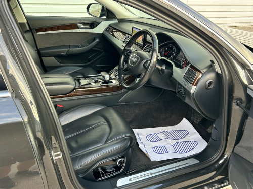 Vehicle was purchased by previous owner from Audi Manchester in March 2016 as it was their Demonstrator. He has fully maintained the car over the last 10 years. Inside is immaculate. It drives beautifully with fantastic specification and equipment level.This 2015 Audi A8 3.0 TDI V6 SE Executive Saloon boasts a powerful Diesel engine with 258 ps, providing a smooth driving experience and excellent fuel efficiency. With only 83300 miles on the clock, this ULEZ compliant vehicle offers spacious comfort with 5 seats and 4 doors, making it perfect for both family and business use. Its Euro 6 (s/s) LWB designation ensures it meets the highest emissions standards. The car comes equipped with luxurious features including a 100mm Front Centre Speaker, 12V Power Socket, 2-Way System with 168mm Wide Speaker and Tweeters in the Rear, 260mm Subwoofer Located in the Parcel Shelf, and AMI - Audi Music Interface, providing top-quality entertainment options. Revel in the sophistication and performance of this elegant Audi A8 saloon, perfect for those who crave both luxury and practicality. 0mm front centre speaker, 12v power socket, 2-way system with 168mm wide speaker and tweeters in the rear, 260mm subwoofer located in the parcel shelf, ami - audi music interface, amplifier - 6 channel, audi sound system, cd-dvd-mp3 player, dab digital radio, display screen colour tft - 8in high resolution, fm-am radio, hard drive - 60gb, mobile telephone preparation - bluetooth interface, sd card reader x2, satellite navigation system - hdd based, two 200mm speakers and two tweeters in front doors, 19in alloy wheels - 5-arm design, asf - audi space frame, anti theft locking wheel bolts, body coloured bumpers, body coloured door mirrors, door handles - body coloured, door mirrors - heated-electrically adjustable-folding-auto-dimming, double glazing, dynamic rear indicators, electric sunroof - slide and tilt, electric windows - front and rear, exhaust tailpipe - twin, heated windscreen washer jets, light and rain sensor package, space saver spare wheel, sunband for windscreen, window surrounds - aluminium, 3d and topographical mapping, air humidity sensor, air quality sensor, air vent slats and thumbwheels in chrome trim, audi backguard head restraints, audi hands-free boot opening system, auto-dimming rear-view mirror, automatic defrost function, automatic wipers with rain sensor, centre armrest with storage compartment with two cup holders, climate control - deluxe 4-zone - inc rear comfort centre armrest, cloth headlining, comfort front centre armrest, door sill trims - with allroad quattro logo, door storage pockets, door storage pockets with space for 1-litre bottle, electric memory setting for steering wheel and door mirror, electric sunblind for rear window, electrically adjustable 4-way lumbar support, electrically adjustable steering column, extended aluminium look in interior, front footwell net, front passenger storage, front sun visors with illuminated vanity mirrors, front and rear floor mats, glovebox - cooled, grab handles, heated front seats, heated outer rear seats, illumination of rear centre console - 3-colour led, inlays lower - brushed aluminium, led interior ambient lighting pack, luggage compartment - bag hooks x2, luggage compartment - net, luggage compartment pack, power operated tailgate, rear passenger storage, seats - 12-way front electric adjustment, seats - front electric adjustment with memory, stainless steel loading sill protector, steering wheel - 3-spoke leather-multi-function with shift paddles, steering wheel - 4-spoke, steering wheel - gear-shift paddles, steering wheel - multi-function, storage - glasses holder in roof module, sun blinds - electric for rear door windows, sun visors - with ticket holder, temperature controls for footwell on driver and front passenger side, tool kit, two cup-holders in centre console, umbrella holder, upper inlays - walnut brown, abs - anti-lock braking system, advanced key, advanced key - with hands-free boot opening system, airbags - driver, airbags - front passenger, alarm - thatcham category 1, esp - electronic stability programme, electromechanical parking brake, first aid kit, front passenger airbag deactivation switch, isofix child seat mounting for rear seats, pre-sense basic, remote central locking, sideguard head airbag system, tracking system, warning triangle, adaptive air suspension, advanced speech recognition, audi drive select, audi parking system advanced with reversing camera, colour drivers information system - dis, cruise control, edl - electronic differential lock, electromechanical power steering, mmi touch, parking sensors - front, parking sensors - rear, rear view camera, tyre pressure loss indicator, all-led headlights with high-beam assist, automatic headlight range adjustment, headlights - automatic activation, headlights - coming-leaving home function, headlights - high-beam assist, headlights - washer system, led daytime running lights, led rear lights