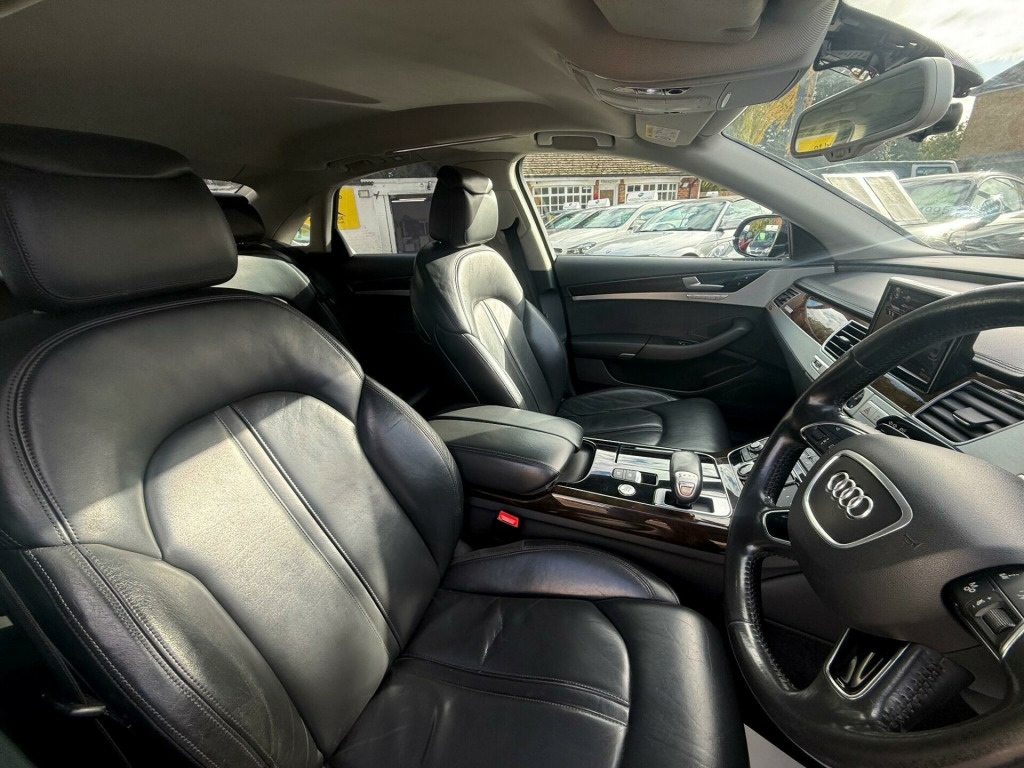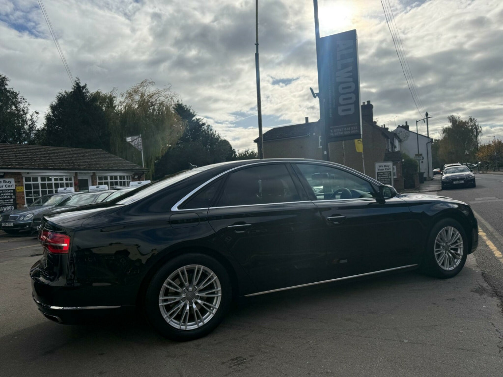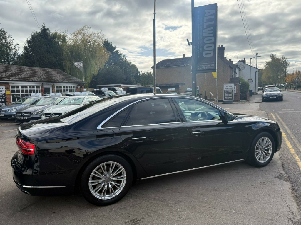 Allwood of Sandridge are pleased to bring to market this nice condition throughout and good service record Audi A8 3.0 TDI V6 SE Executive Tiptronic quattro edition. Currently undergoing a new service and MOT. The car befits from a good past service record and has been serviced via Audi main dealer and specialist independent we hold service records of 6 services with the last one having just taken place at the vehicles current miles of 77632. The car has just been equipped with a new 12 month MOT for the next owner for yet further peace of mind running right through till 26 October 2026 and is free from advisories and any recommendations of work to be carries out. A fully HPi clear car free from accidents and finance with verification of the cars miles, the car is also equipped with 2 keys. This A8 is fully equipped with luxury throughout with a full black leather interior, wide screen motorised entertainment system featuring full navigation and reverse camera system, heated fully electric memory seats the outside of the car is completed with privacy glass and 18 inch alloy wheels giving the car a lovely overall look.We offer our clients full dealership facilities, part exchange valuations with up to the minute market pricing. FCA regulated with access to some of the best funding options in the market (subject to status and vehicle choice). Our Staff are fully SAF approved. A portfolio of extended warranty options are on offer to suit your needs. Looking for a great driving and value A8, with wonderful spec and great colour combination with full history and new MOT and service? Our dealerships are fully AA Approved via trading standards and all vehicles come with free AA breakdown cover. We operate via appointments for viewings and test drives in order to give you the best possible service simply contact the friendly team today on 01727 641 333 or what's app and text services on 07741 585000 0mm front centre speaker, 12v power socket, 12v power socket - luggage compartment, 12v power socket - rear, 18in alloy wheels - 10-spoke-v design, 2-way system with 168mm wide speaker and tweeters in the rear, 260mm subwoofer located in the parcel shelf, 3d and topographical mapping, 7-digit postcode recognition, abs - anti-lock braking system, ami - audi music interface, asf - audi space frame, adaptive air suspension, advanced key - with hands-free boot opening system, advanced speech recognition, air humidity sensor, air quality sensor, air vent slats and thumbwheels in chrome trim, airbags - driver, airbags - front passenger, alarm - thatcham category 1, all-led headlights with high-beam assist, aluminium inlay on folding compartment in door armrest, ambient lighting in the centre console - led, amplifier - 6 channel, analogue clock in lower inlay, anti theft locking wheel bolts, audi backguard head restraints, audi drive select, audi hands-free boot opening system, audi parking system advanced with reversing camera, audi parking system plus, audi sound system, auto-dimming rear-view mirror, automatic defrost function, automatic headlight range adjustment, automatic wipers with rain sensor, body coloured bumpers, body coloured door mirrors, brushed aluminium silver switches in lower inlay - centre console and door, cd-dvd-mp3 player, climate control with sun sensor, cloth headlining, colour drivers information system - dis, comfort front centre armrest, cruise control, cup holders - rear x2, dab digital radio, display screen colour tft - 8in high resolution, door handles - body coloured, door mirrors - automatic kerb view dipping function when reversing, door mirrors - heated-electrically adjustable-folding-auto-dimming, door mirrors - memory function, door sill trims - illuminated with quattro, door storage pockets, door storage pockets with space for 1-litre bottle, double glazing, dynamic rear indicators, edl - electronic differential lock, esp - electronic stability programme, electric windows - front and rear, electrically adjustable seat belt height adjustment, electrically adjustable seat cushion height, electrically adjustable seat cushion tilt, electrically adjustable steering column, electromechanical parking brake, electromechanical power steering, energy saving - gearshift indicator, exhaust tailpipe - twin, extended aluminium look in interior, fm-am radio, first aid kit, front footwell net, front passenger airbag deactivation switch, front passenger storage, front sun visors with illuminated vanity mirrors, front and rear floor mats, front and rear reading lights, glovebox - cooled, grab handles, hard drive - 60gb, head restraints - comfort rear, head restraints - comfort and electrically adjustable, headlights - automatic activation, headlights - coming-leaving home function, headlights - high-beam assist, headlights - washer system, heated front seats, heated windscreen washer jets, isofix child seat mounting for rear seats, illuminated door pockets - 2-colour led, immobiliser, inlays lower - brushed aluminium, keyless go, led active door warning lights, led daytime running lights, led entry lights x4, led footwell lights - front and rear, led interior ambient lighting pack, led rear lights, light guide for front and rear doors - 3 colour led, light strip between grab handles - 2 colours, light and rain sensor package, luggage compartment - bag hooks x2, luggage compartment - net, luggage compartment pack, mmi touch, mobile telephone preparation - bluetooth interface, parking sensors - front, parking sensors - rear, power door closure, power operated tailgate, pre-sense basic, privacy glass, rear passenger storage, rear view camera, remote central locking, roof module - 2-colour light strip - 3-colour reflected light, sd card reader x2, satellite navigation system - hdd based, seats - 22-way front electric adjustment, seats - electric adjustment for cushion depth, seats - electrically adjustable upper backrest, seats - front electric height adjustment, seats - front memory functio