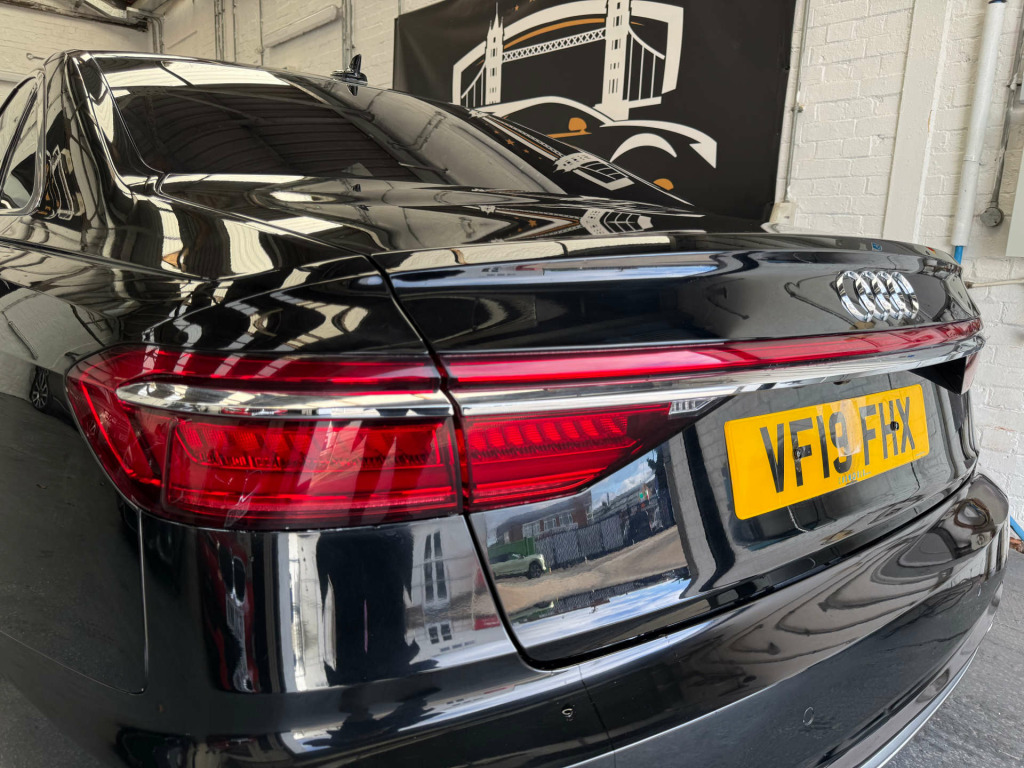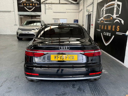 This 2019 Audi A8 3.0 TFSI V6 55 S line Saloon 4dr Petrol Tiptronic quattro Euro 6 (s/s) (340 Saloon is currently available for £22,990 in Harrow Middlesex with Petrol engine and Automatic gearbox. For more information or to arrange a viewing, click here to send us an email using form below.