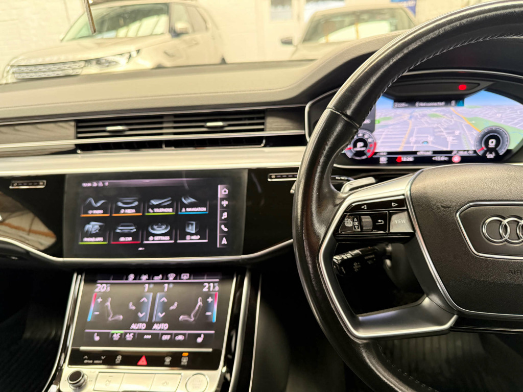 Introducing the Audi A8 - the epitome of luxury and performance. This stunning vehicle is the perfect combination of elegance and power, designed to elevate your driving experience to new heights.Finished in sleek Black, the Audi A8 is sure to turn heads wherever you go. With its 3.0 A8 S Line 55 TFSI Quattro Auto 4WD 4dr engine, you can expect a smooth and powerful ride every time you hit the road.Step inside the Audi A8 and you'll be greeted by a world of luxury and comfort. The spacious interior is crafted with the finest materials and packed with cutting-edge technology to ensure a first-class driving experience.Whether you're cruising through the city streets or embarking on a long journey, the Audi A8 is the perfect companion. Don't miss out on the opportunity to own this exceptional vehicle. Visit our showroom today and experience the Audi A8 for yourself. in alloy wheels - 15-spoke design cast aluminium, 2-zone automatic air conditioning, 3-seat rear bench with centre armrest, 4-way electric lumbar support, abs - anti-lock braking system, ami - audi music interface, asf - audi space frame, adaptive air suspension, adaptive cruise assist, advanced key, airbags - driver, airbags - front passenger, anti-theft alarm with tow-away protection, anti-theft wheel bolts and wheel loosening warning, audi connect, audi connect safety and service - e-call, audi drive select, audi hd matrix led headlights, audi phone box with wireless charging, audi pre-sense front, audi sound system, audi virtual cockpit, audi wireless smartphone interface, body coloured door mirrors, camera-based traffic sign recognition, chrome exterior styling, cloth headlining in black, comfort centre armrest - front, dab digital radio, door mirrors - electrically adjustable - heated - folding - automatically dimming with memory function and integrated led indicator, electric front seats with memory function, electric windows - front and rear, extended pedestrian protection, first aid kit and warning triangle, front reading lights, front sun visors with illuminated vanity mirrors, front and rear brake calipers - painted black, front and rear floor mats, front and rear side airbags with head airbag system, gear knob - leather, glove compartment cooling, head restraints - rear, head-up display, heated front seats, high-beam assist, hill hold assist, isofix child seat mounting for outer rear seats, led interior light package, led rear combination lamps with dynamic turn signal, lane departure warning with emergency assist, lower inlays in dark matt brushed aluminium, mmi navigation plus including mmi touch, mmi radio plus, operating buttons in black - glass with extended aluminium, parking system plus - front and rear sensors, power door closure, power operated tailgate, power steering, pre-sense basic, rear-view camera, seat belt reminder, side and rear windows in heat-insulating glass, sport exterior styling, twin-spoke leather multi-function steering wheel with shift paddles, tyre pressure warning light, upper inlays - fine grain ash - natural grey brown, windscreen with acoustic glazing, quattro all-wheel drive with self-locking centre differential