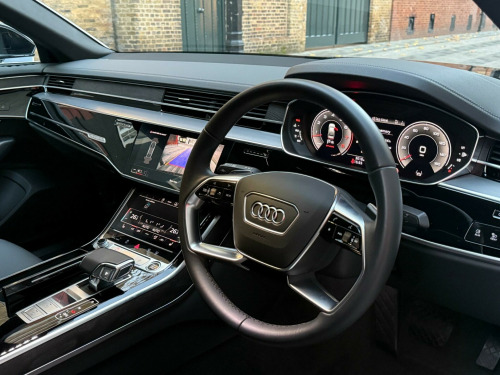 This 2022 Audi A8 3.0 TFSI V6 55 S line Tiptronic quattro Euro 6 (s/s) 4dr Saloon is currently available for £41,495 in London with Petrol engine and Automatic gearbox. For more information or to arrange a viewing, click here to send us an email using form below.