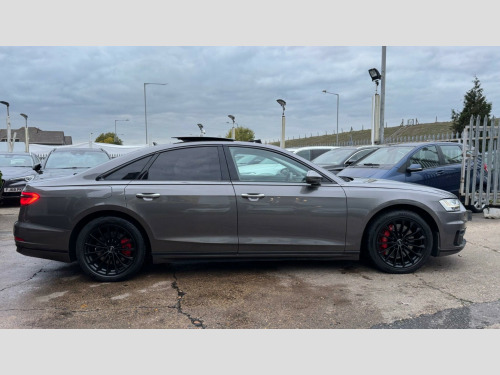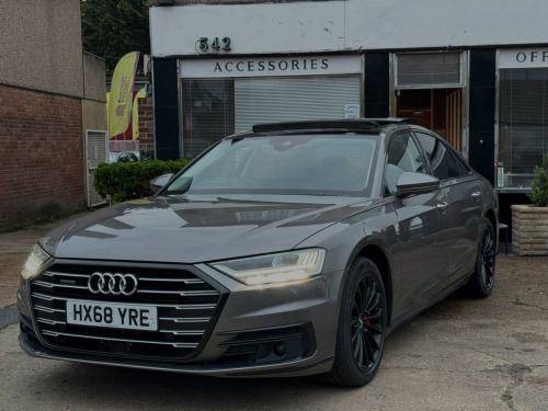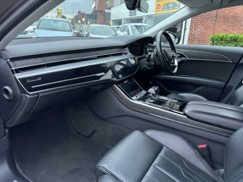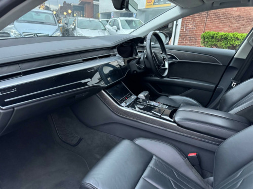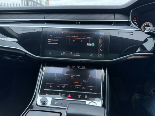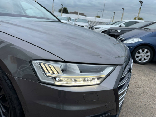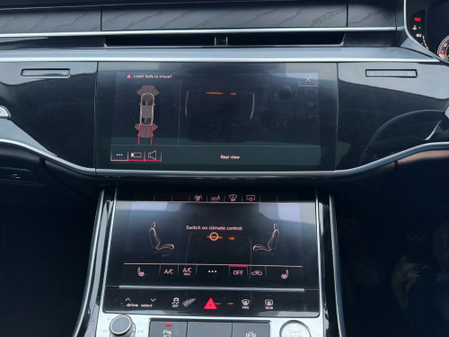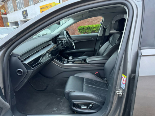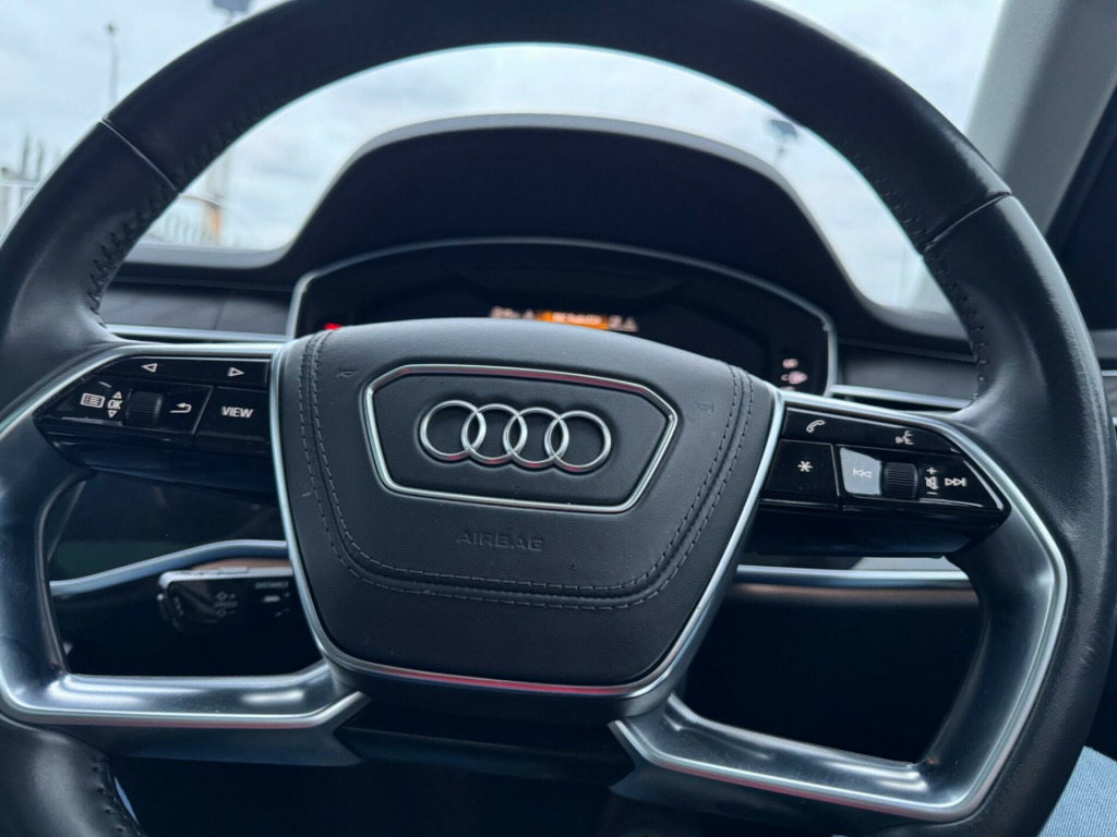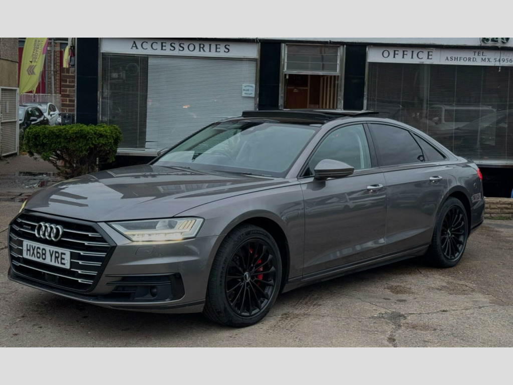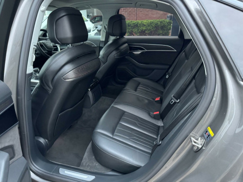 PANORAMIC ROOF - HD MATRIX-BIG SPEC AUDI A8 3.0 TFSI 55 - PANORAMIC SUNROOF - REAR SEAT REMOTE - HD MATRIX LED HEADLIGHTS - POWER DOOR CLOSURE - 2018 68 Registered in Terra Grey metallic with Black valcona hide. Only 37000 miles . For sale is a rare low mileage Audi A8 3.0 TFSI 55 which come with £9,000 of options including panoramic glass sunroof, HD Matrix LED headlights and dynamic front and rear indicators, 4-zone automatic air conditioning, acoustic double glazing, power door closure, rear seat remote, privacy glass, heated front and rear seats, headlight washers, tyre pressure monitoring system, 19'' multi spoke gloss black alloy wheels, black exterior styling package, adaptive windscreen wipers with integrated washer jets, comfort rear headrests, comfort rear centre armrest, adaptive cruise control, adaptive air suspension, advance key, Audi drive select, rear view camera system, Audi virtual cockpit, DAB digital tuner, DVD player, head up display, high beam assist headlights, lane departure warning, MMi navigation plus including MMi touch, power tailgate, tyre pressure warning light, multi functional steering wheel, fine grain ash upper inlays. A rare petrol variant with the panoramic roof option. INTERNATIONAL ENQUIRIES WELCOME* in alloy wheels - 5-v-spoke design forged, 2-zone automatic air conditioning, 22-way electrically adjustment seats with memory function, 4-way electric lumbar support for front seats, abs - anti-lock braking system, ami - audi music interface, adaptive air suspension, adaptive cruise assist, advanced key, airbags - driver, airbags - front passenger, anti theft locking wheel bolts and wheel loosening detection, anti-theft alarm with tow-away protection, audi connect infotainment services (36 month subscription from new), audi connect safety and service - e-call, audi drive select, audi parking system plus, audi phone box with wireless charging, audi pre-sense front, audi smartphone interface, audi sound system, audi virtual cockpit - 12.3in high resolution lcd display, automatic air recirculation, brake calipers - black, camera-based traffic sign recognition, chrome exterior pack, cloth headlining, dab digital radio, dvd player, door mirrors - electrically adjustable - heated - folding - automatically dimming with memory function and integrated led indicator, electric windows - front and rear, extended pedestrian protection, exterior mirror housings in body colour, first aid kit and warning triangle, folding 3-seat rear bench with centre armrest, front centre armrest, front reading lights, front sun visors with illuminated vanity mirrors, front and rear floor mats, front and rear side airbag, glove compartment cooling, head-up display, headlights - high-beam assist, heat-insulating glass - side and rear windows, isofix child seat mounting for outer rear seats, led front and rear lights, led interior lighting pack, lane departure warning, leather gear lever, lower inlays in dark matt brushed aluminium, mmi navigation plus including mmi touch, mmi radio plus, operating buttons - black, power operated tailgate, power steering, pre-sense basic, quattro with self-locking centre differential, rear-view camera, seat belt reminder, seats - heated front, space saver spare wheel, tool kit and car jack, twin-spoke leather multi-function steering wheel with shift paddles, tyre pressure warning light, upper inlays - fine grain ash - natural grey brown, windscreen with acoustic glazing, park assist, tyre-pressure monitoring system, hd matrix led headlights and dynamic front and rear indicators, headlight washers, 19in alloy wheels - 5-arm polygon design audi sport cast aluminium - matt titanium-look - gloss-turned finish, panoramic glass sunroof, 4-zone automatic air conditioning, seats - heated front and rear