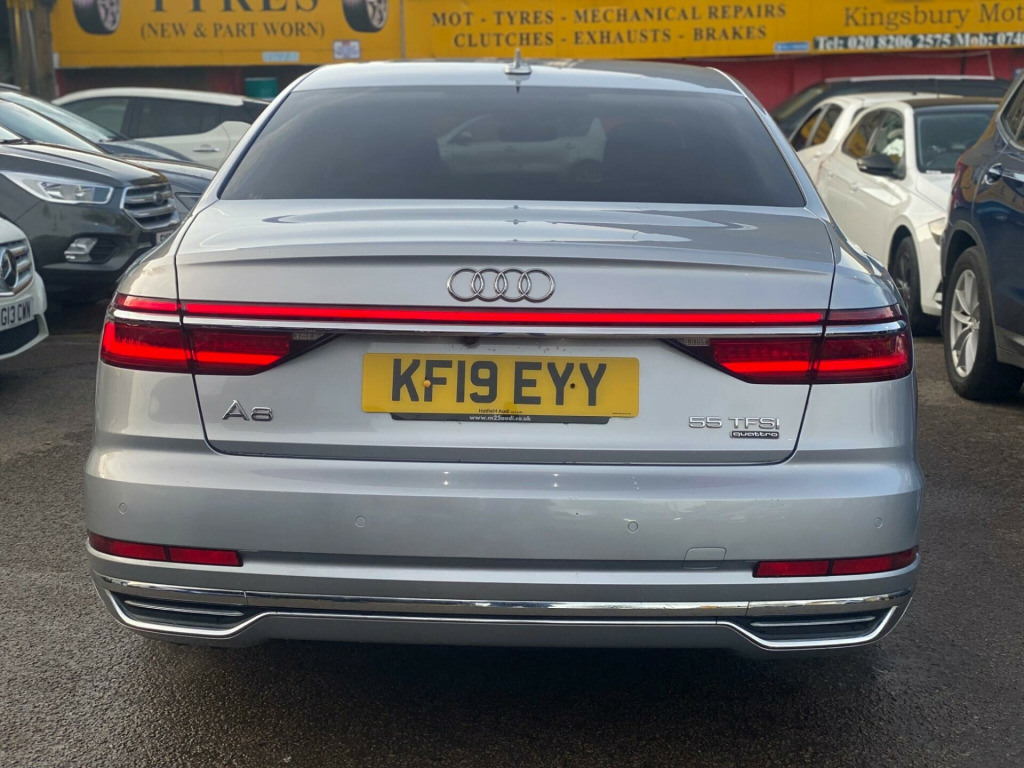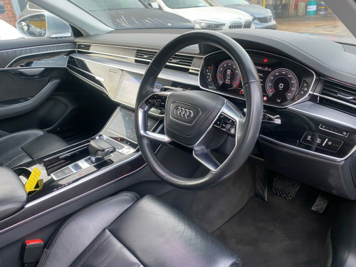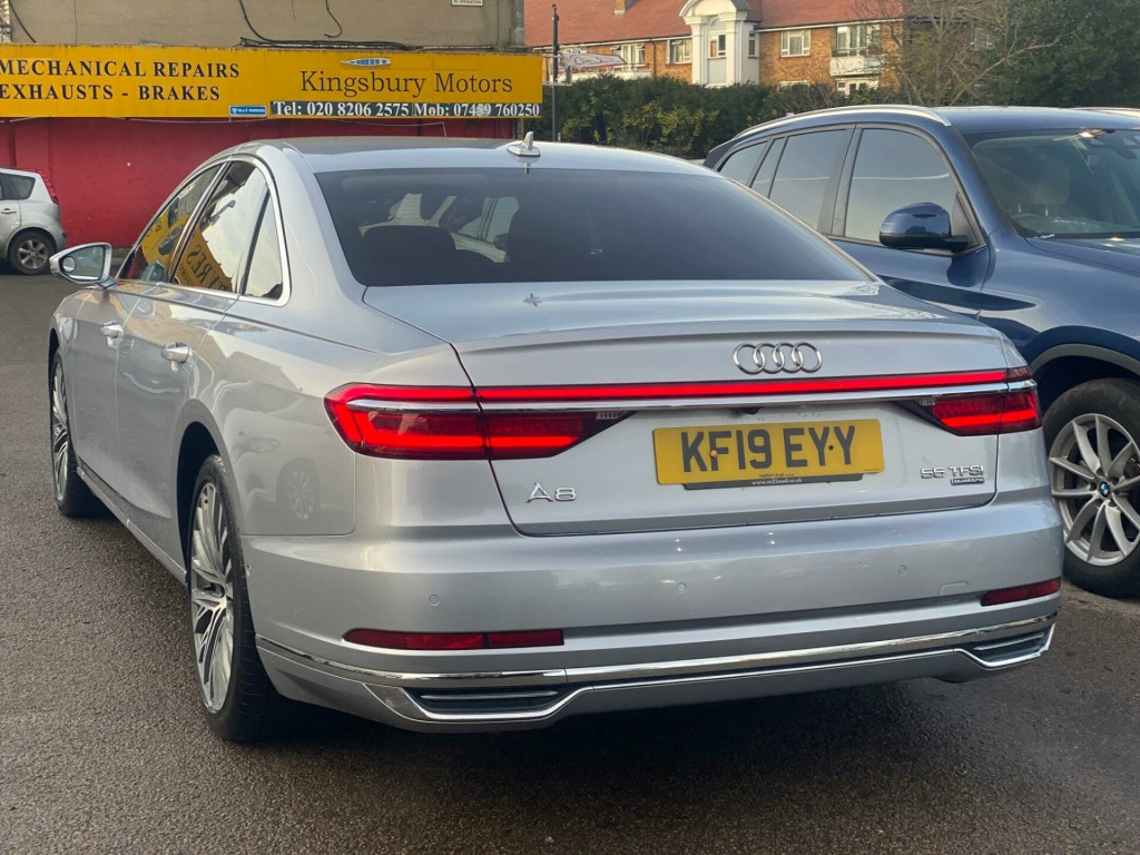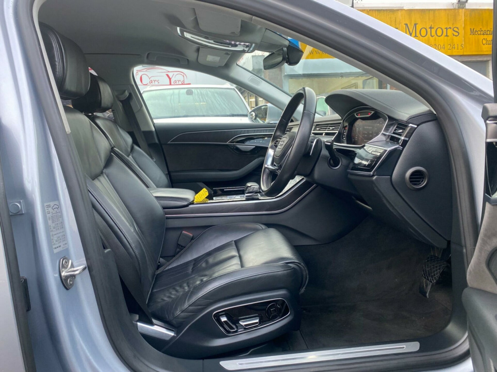 Cars Yard is delighted to present this stunning Audi A8 3.0 TFSI V6 55 Tiptronic quattro Euro 6 ((((((***FREE 6 MONTHS WARRANTY + 12 MONTHS FREE AA BREAKDOWN COVER ****))))) USED BY ONE FORMER KEEPER, SERVICE HISTORY, GREAT CONDITION IN AND OUT ***Excellent condition*** 5 Day Driveaway Insurance at Additional cost available for cars up to 10 years old STS, FINANCE AVAILABLE, CALL US ON 02045392878. AA Approved Dealer, FCA registered Dealer ivacy glass, adaptive windscreen wipers with integrated washer jets, leather package, park assist, tyre-pressure monitoring system, 18in alloy wheels - 5-v-spoke design forged, 2-zone automatic air conditioning, 22-way electrically adjustment seats with memory function, 230v socket, 4-way electric lumbar support for front seats, abs - anti-lock braking system, ami - audi music interface, adaptive air suspension, adaptive cruise assist, advanced key, airbags - driver, airbags - front passenger, anti theft locking wheel bolts and wheel loosening detection, anti-theft alarm with tow-away protection, audi connect infotainment services (36 month subscription from new), audi connect safety and service - e-call, audi drive select, audi parking system plus, audi phone box with wireless charging, audi pre-sense front, audi smartphone interface, audi sound system, audi virtual cockpit - 12.3in high resolution lcd display, automatic air recirculation, brake calipers - black, camera-based traffic sign recognition, chrome exterior pack, cloth headlining, comfort centre armrest - front, dab digital radio, dvd player, door mirrors - electrically adjustable - heated - folding - automatically dimming with memory function and integrated led indicator, electric windows - front and rear, extended pedestrian protection, exterior mirror housings in body colour, first aid kit and warning triangle, folding 3-seat rear bench with centre armrest, front centre armrest, front reading lights, front sun visors with illuminated vanity mirrors, front and rear floor mats, front and rear side airbag, glove compartment cooling, head-up display, headlights - high-beam assist, heat-insulating glass - side and rear windows, hill hold assist, isofix child seat mounting for outer rear seats, led front and rear lights, led interior lighting pack, led rear lights, lane departure warning, leather gear lever, lower inlays in dark matt brushed aluminium, mmi navigation plus including mmi touch, mmi radio plus, operating buttons - black, power operated tailgate, power steering, pre-sense basic, quattro with self-locking centre differential, rear-view camera, seat belt reminder, seats - heated front, space saver spare wheel, tool kit and car jack, twin-spoke leather multi-function steering wheel with shift paddles, tyre pressure warning light, upper inlays - fine grain ash - natural grey brown, windscreen with acoustic glazing