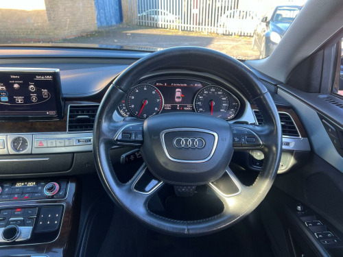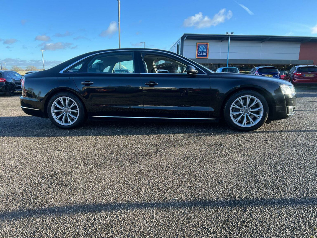 This 2014 Audi A8 4.0 TFSI V8 SE Executive Tiptronic quattro Euro 6 (s/s) 4dr LWB Saloon is currently available for £13,495 in Chesterfield Derbyshire with Petrol engine and Auto Clutch Manual gearbox. For more information or to arrange a viewing, click here to send us an email using form below.
