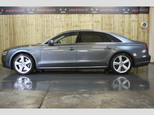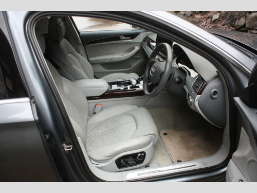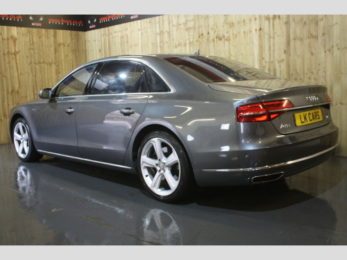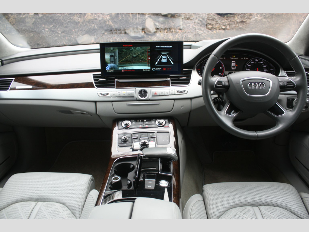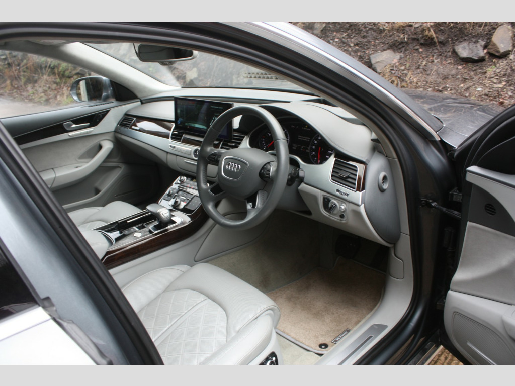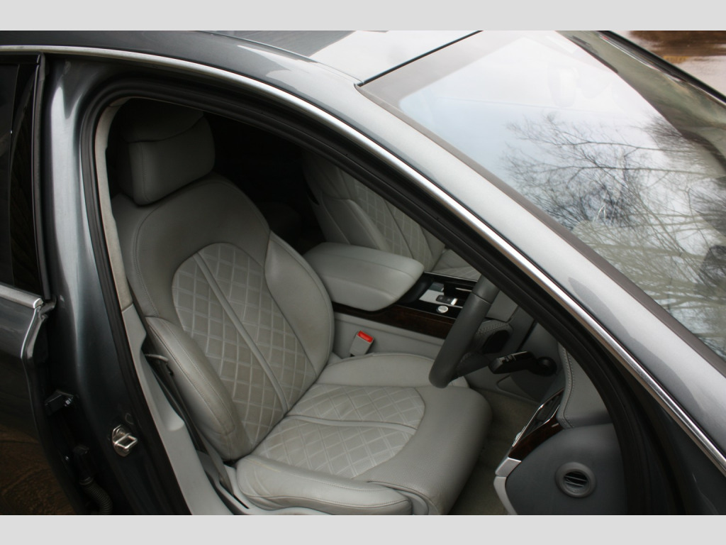 This 2016 Audi A8 TDI V8 SE Executive finished in Monsoon Grey, presents an exceptional opportunity with its remarkably low mileage of just 64,000 miles, a significant advantage for a vehicle of its age. This Euro 6 compliant model boasts a powerful 4.2 litre diesel engine paired with Audis renowned four wheel drive system, ensuring confident performance in all conditions. Its provenance is further strengthened by a full service history, a clear vehicle history check, and an MOT valid until October 2026, all complemented by a 6 month warranty for your peace of mind. The SE Executive trim level is appointed with desirable features such as a slide and tilt solar panel electric sunroof, front and rear ventilated seats with massage function, and striking 20 inch aluminium design alloy wheels. , The spacious interior is enhanced by Audi Exclusive carpet and floor mats, while the Audi Parking System Advanced with Top View offers unparalleled parking assistance. You will appreciate the generous boot space, perfect for luggage or shopping. Performance is a key attribute, with the A8 accelerating from 0 to 60mph in a swift 4.7 seconds, demonstrating a level of responsiveness that sets it apart from many other vehicles in its class. This combination of low mileage, comprehensive history, and premium features makes this Audi A8 a truly distinguished choice. , FULL WALK AROUND VIDEO AVAILABLE @ https://youtu.be/QwaWbpZcSKc, , We can provide flexible finance options to make it super easy for you to upgrade, along with part exchange options. We even offer nationwide delivery for your convenience. Check out our full range of vehicles at www.lkcars.co.uk, Viewing is by appointment only, please contact us on 07958390161, , 6 months warranty, Next MOT due 14/10/2026, Last serviced on 21/10/2025 at 63,631 miles, Full service history, 5 seats, Monsoon Grey, 3 owners, Upgrades - 20in Alloy Wheels - 10-Spoke Aluminium Design, Valcona Leather - Velvet Beige, Valcona Leather - Comfort Seats - Velvet Beige, Speed Limit Display, Electric Sunroof - Slide and Tilt Solar-Panel, Headlining - Audi Exclusive Alcantara, Standard Features - 100mm Front Centre Speaker, 12V Power Socket, 19in Alloy Wheels - 5-Arm Design, 2-Way System with 168mm Wide Speaker and Tweeters in the Rear, 260mm Subwoofer Located in the Parcel Shelf, 3D and Topographical Mapping, ABS - Anti-Lock Braking System, AMI - Audi Music Interface, ASF - Audi Space Frame, Adaptive Air Suspension, Advanced Key, Advanced Key - with Hands-Free Boot Opening System, Advanced Speech Recognition, Air Humidity Sensor, Air Quality Sensor, Air Vent Slats and Thumbwheels in Chrome Trim, Airbags - Driver, Airbags - Front Passenger, Alarm - Thatcham Category 1, All-LED Headlights with High-Beam Assist, Amplifier - 6 Channel, Anti Theft Locking Wheel Bolts, Audi Backguard Head Restraints, Audi Drive Select, Audi Hands-Free Boot Opening System, Audi Parking System Advanced with Reversing Camera, Audi Sound System, Auto-Dimming Rear-View Mirror, Automatic Defrost Function, Automatic Headlight Range Adjustment, Automatic Wipers with Rain Sensor, Body Coloured Bumpers, Body Coloured Door Mirrors, CD-DVD-MP3 Player, Centre Armrest with Storage Compartment with Two Cup Holders, Climate Control - Deluxe 4-Zone - Inc Rear Comfort Centre Armrest, Cloth Headlining, Colour Drivers Information System - DIS, Comfort Front Centre Armrest, Cruise Control, DAB Digital Radio, Display Screen Colour TFT - 8in High Resolution, Door Handles - Body Coloured, Door Mirrors - Heated-Electrically Adjustable-Folding-Auto-Dimming, Door Sill Trims - with Allroad quattro Logo, Door Storage Pockets, Door Storage Pockets with Space for 1-Litre Bottle, Double Glazing, Dynamic Rear Indicators, EDL - Electronic Differential Lock, ESP - Electronic Stability Programme, Electric Memory Setting for Steering Wheel and Door Mirror, Electric Sunblind for Rear Window, Electric Sunroof - Slide and Tilt, Electric Windows - Front and Rear, Electrically Adjustable 4-Way Lumbar Support, Electrically Adjustable Steering Column, Electromechanical Parking Brake, Electromechanical Power Steering, Exhaust Tailpipe - Twin, Extended Aluminium Look in Interior, FM-AM Radio, First Aid Kit, Front Footwell Net, Front Passenger Airbag Deactivation Switch, Front Passenger Storage, Front Sun Visors with Illuminated Vanity Mirrors, Front and Rear Floor Mats, Glovebox - Cooled, Grab Handles, Hard Drive - 60GB, Headlights - Automatic Activation, Headlights - Coming-Leaving Home Function, Headlights - High-Beam Assist, Headlights - Washer System, Heated Front Seats, Heated Outer Rear Seats, Heated Windscreen Washer Jets, ISOFIX Child Seat Mounting for Rear Seats, Illumination of Rear Centre Console - 3-Colour LED, Inlays Lower - Brushed Aluminium, LED Daytime Running Lights, LED Interior Ambient Lighting Pack, LED Rear Lights, Light and Rain Sensor Package, Luggage Compartment - Bag Hooks x2, Luggage Compartment - Net, Luggage Compartment Pack, MMI Touch, Mobile Telephone Preparation - Bluetooth Interface, Parking Sensors - Front, Parking Sensors - Rear, Power Operated Tailgate, Pre-Sense Basic, Quattro Sports Differential, Rear Passenger Storage, Rear View Camera, Remote Central Locking, SD Card Reader x2, Satellite Navigation System - HDD Based, Seats - 12-Way Front Electric Adjustment, Seats - Front Electric Adjustment with Memory, Sideguard Head Airbag System, Space Saver Spare Wheel, Stainless Steel Loading Sill Protector, Steering Wheel - 3-Spoke Leather-Multi-function with Shift Paddles, Steering Wheel - 4-Spoke, Steering Wheel - Gear-Shift Paddles, Steering Wheel - Multi-function, Storage - Glasses Holder in Roof Module, Sun Blinds - Electric for Rear Door Windows, Sun Visors - with Ticket Holder, Sunband for Windscreen, Temperature Controls for Footwell on Driver and Front Passenger Side, Tool Kit, Tracking System, Two 200mm Speakers and Two Tweeters in Front Doors, Two Cup-Holders in Centre Console, Tyre Pressure Loss Indica