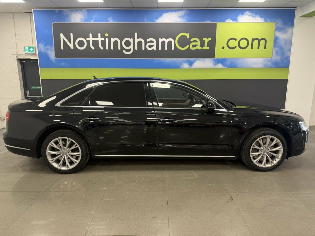 NottinghamCar.com are proud to present this excellent Audi A8 4.2 TDi V8 EXECUTIVE SE having covered only 37,282 miles. It's specification includes, Alloy wheels, Rear view camera, Cruise control, Multifunctional steering wheel, Parking sensors, Drive select modes, Bluetooth, DAB Radio + FM/AM, Satellite navigation, Air conditioning, Automatic lights, climate control, Leather trim with heated electric front memory seats and much more.... Call now to leave a next day £250 refundable deposit. FINANCE OPTIONS AVAILABLE FROM MULTIPLE LENDERS. FINANCE PACKAGES AVAILABLE FOR ALL CUSTOMERS. 18in Alloy Wheels - 10-Spoke-V Design, Satellite Navigation System - HDD Based, 3D and Topographical Mapping, Audi Drive Select, Rear View Camera, Power Operated Tailgate, Air Conditioning - Deluxe Automatic at t, Climate Control - Deluxe 4-Zone - Inc Re, Parking Sensors - Front, Parking Sensors - Rear, Audi Parking System Advanced with Revers, Heated Front Seats, ASF - Audi Space Frame, Audi Sound System, Air Conditioning Controls in Rear Centre, 2-Way System with 168mm Wide Speaker and, 260mm Subwoofer Located in the Parcel Sh, 7-Digit Postcode Recognition, ABS - Anti-Lock Braking System, AMI - Audi Music Interface, Adaptive Air Suspension, Advanced Key - with Hands-Free Boot Open, Advance