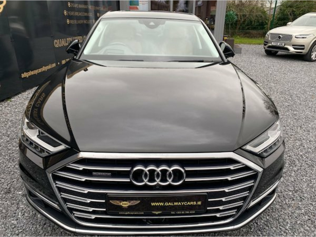 NEW ARRIVAL , , New model Special order (rare), , SPECIAL ORDER OVER 12000eur EXTRAS , , AUDI A8 3.0 TDI V6 50 Tiptronic quattro, , Warranted mileage 49k miles , , First registration 17/07/2018 (182), , Automatic Air Conditioning, 22-Way Electrically Adjustment Seats with Memory Function, 230V Socket, AMI - Audi Music Interface, Adaptive Air Suspension, Adaptive Cruise Assist, Advanced Key, Anti-Theft Alarm with Tow-Away Protection, Audi Connect Infotainment Services - 36 Month Subscription, Audi Drive Select, Audi Parking System Plus, Audi Phone Box with Wireless Charging, Audi Pre-Sense Front, Audi Smartphone Interface, Audi Sound System, Audi Virtual Cockpit - 12.3in High Resolution LCD Display, Automatic Air Recirculation, Camera-Based Traffic Sign Recognition, Chrome Exterior Pack, Cloth Headlining, DAB Digital Radio, DVD Player, Door Mirrors - Electrically Adjustable - Heated - Folding - Automatically Dimming with Memory Function and Integrated LED Indicator, Electric Auxiliary Air Heater, Extended Pedestrian Protection, First Aid Kit and Warning Triangle, Folding 3-seat Rear Bench with Centre Armrest, Front Reading Lights, Front Sun Visors with Illuminated Vanity Mirrors, Head-Up Display, Headlights - High-Beam Assist, LED Front and Rear Lights, LED Interior Lighting Pack, Lane Departure Warning, Leather Gear Lever, Lower Inlays in Dark Matt Brushed Aluminium, MMI Navigation Plus including MMI Touch, MMI Radio Plus, Operating Buttons - Black, Power Operated Tailgate, Pre-Sense Basic, Quattro with Self-Locking Centre Differential, Rear-View Camera, Seat Belt Reminder, Seats - Heated Front, Tyre Pressure Warning Light, Upper Inlays - Fine Grain Ash - Natural Grey Brown, Windscreen with Acoustic Glazing, , More information loading, , www.galwaycars.ie, , www.topservice.ie