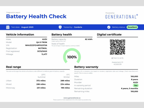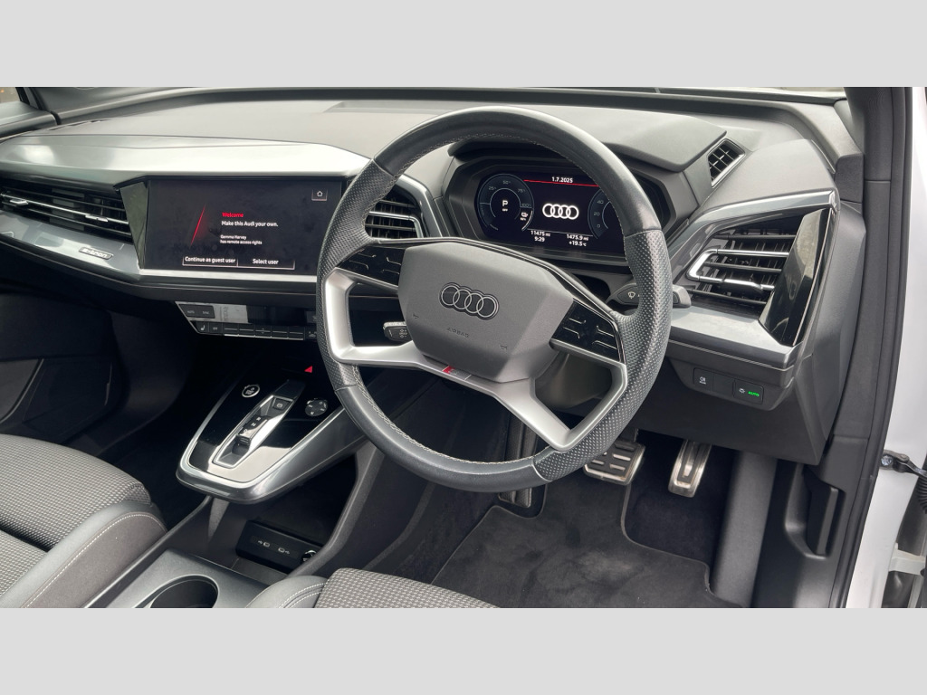 Audi Q4 e-Tron 150kW 40 82kWh S Line 5dr Auto, 5 Doors, Automatic, Estate, Electric registered in 2023 ,White ,11475 miles. can be purchased from your local Motorparks dealer regardless of their physical stock location. Free UK Mainland Delivery on ALL New and Used