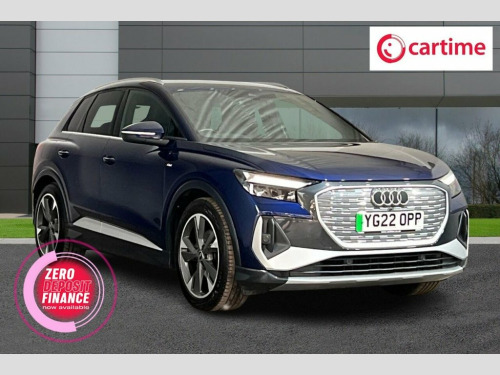 This fantastic Q4 e-tron has a Navarra Blue paint finish with 20-inch silver alloy wheels, privacy glass, twin exhaust and gloss black and brushed silver aluminium trim around the car. The car has immaculate half leather and cloth S Line black seats with gloss black / brushed silver trim around the cabin. There is also a leather-trimmed multi-function steering wheel and heated front seats. Being a high specification, this Audi has lots of kit including a 10.25-inch touchscreen multimedia screen with Satellite Navigation system, a 12.3in Virtual Cockpit Display, DAB digital radio and compatibility for Bluetooth and USB devices as well as Apple CarPlay and Android Auto. Additionally there are front / rear parking sensors, a reverse camera, automatic LED lights, automatic rain-sensing windscreen wipers, heated electric power-folding door mirrors, electric tailgate, cruise control with speed limiter, three-zone climate control and Stop/Start engine system. 110kW DC Charging Capability, 2 USB-C Ports with Charge and Data Funct, 20in Alloy Wheels - 5-Y-Spoke, 3-Zone Electronic Climate Control, 4-Way Electric Lumbar Support for Front , 7.2 kW Onboard Charger, ABS - Anti-Lock Braking System, AC and DC Charging access Point on the R, Active Vehicle Alerting System - AVAS, Aluminium Look Interior Elements, Aluminium Roof Rails, Ambient Lighting Pack, Anti Theft Locking Wheel Bolts, Anti-Theft Alarm, Audi Connect Navigation and Infotainment, Audi Connect Safety and Service - e-call, Audi Drive Select, Audi Pre-Sense Front with Pedestrian and, Audi Smartphone Interface, Audi Sound System, Audi Virtual Cockpit - 10.25in Display, Auto Dimming and Framel
