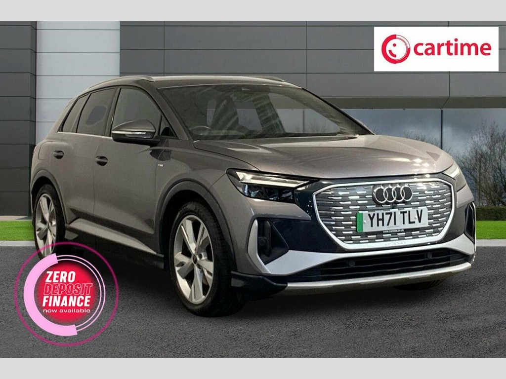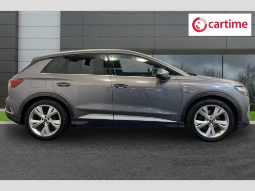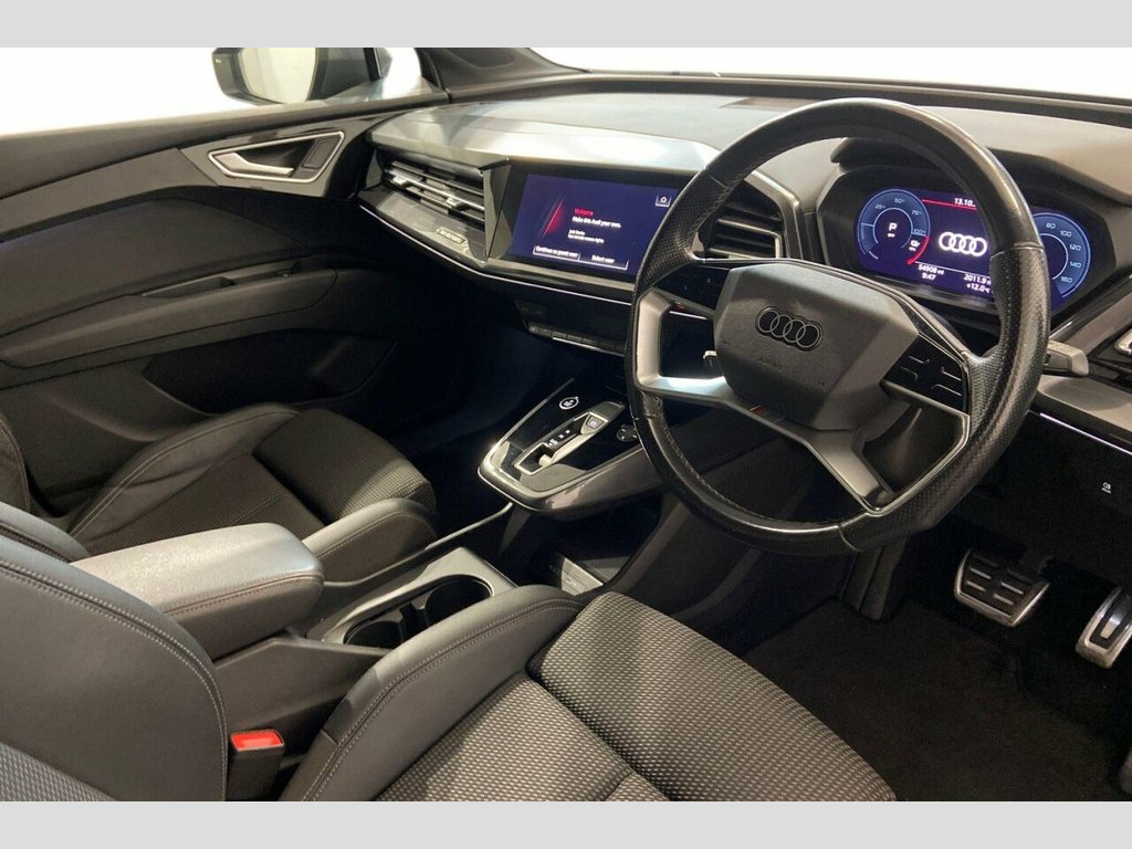 This 2021 Audi Q4 e-tron S line boasts a clear vehicle history, offering peace of mind for its next owner, and its MOT is valid until October 2026. This electric SUV features a 55 kWh battery with a maximum range of 201 miles when new. Charging is convenient, with a full charge at home taking approximately 7 hours and 30 minutes using a 7kW charger, and a rapid charge to 80% possible in just 32 minutes at a public charging station thanks to its 110kW DC charging capability. The S line trim enhances the driving experience with features like heated front seats, a comfort auxiliary air conditioning system, and a Bluetooth interface for seamless connectivity. The Audi Q4 e-tron S line stands out with its impressive electric performance and thoughtful features. Its 7.2 kW onboard charger ensures efficient power management, making it a practical choice for daily driving and longer journeys. The combination of its substantial electric range, rapid charging capabilities, and the premium S line specification positions this vehicle as a superior option for those seeking an advanced and comfortable electric driving experience. 110kW DC Charging Capability, 2 USB-C Ports with Charge and Data Funct, 20in Alloy Wheels - 5-Y-Spoke, 3-Zone Electronic Climate Control, 4-Way Electric Lumbar Support for Front , 7.2 kW Onboard Charger, ABS - Anti-Lock Braking System, AC and DC Charging access Point on the R, Active Vehicle Alerting System - AVAS, Aluminium Look Interior Elements, Aluminium Roof Rails, Ambient Lighting Pack, Anti Theft Locking Wheel Bolts, Anti-Theft Alarm, Audi Connect Navigation and Infotainment, Audi Connect Safety and Service - e-call, Audi Drive Select, Audi Pre-Sense Front with Pedestrian and, Audi Smartphone Interface, Audi Sound System, Audi Virtual Cockpit - 10.25in Display, Auto Dimming and Framel
