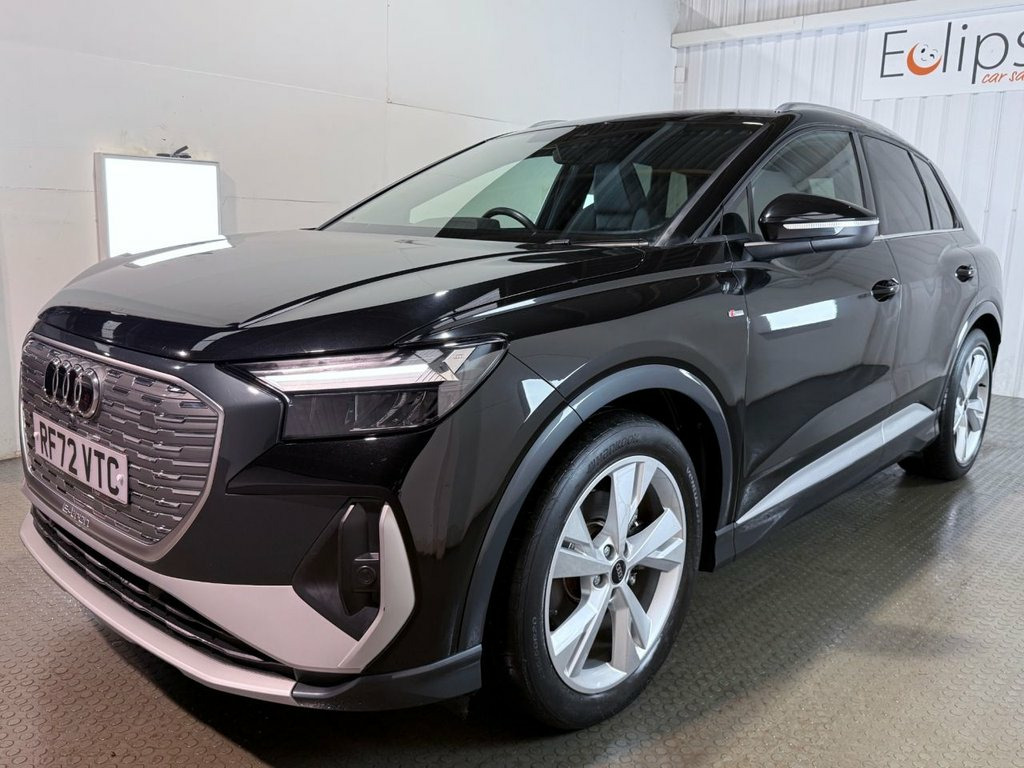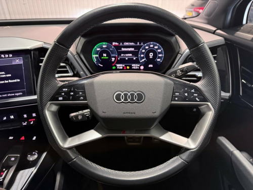 New MOT Upon Sale, 20 Inch Alloy Wheels, Heated Front Seats, Wireless Apple Car play + Android Auto , Rear Park Assist Really nice Audi Q4 E-Tron 35 S-Line Electric Auto in Mythos Black Metallic with half grey Heated leather S-Line Sports seats with S Logo, serviced by Audi main dealer at 12000 miles and will be supplied with a new MOT at the point of sale. Specification includes Colour Navigation, Automatic with Audi drive select, Apple car play or Android auto via Bletooth , DAB Radio, Dual zone Air Conditioning , remote central locking with 2 keys, electric folding mirrors , electric power tailgate, parking sensors, privacy , 20 inch Alloys, plus lots more, great condition with very low mileage 110kW DC Charging Capability, 2 USB-C Ports with Charge and Data Funct, 20in Alloy Wheels - 5-Y-Spoke, 20in Alloy Wheels - 5-Y-Spoke Graphite G, 3-Zone Electronic Climate Control, 4-Way Electric Lumbar Support for Front , 7.2 kW Onboard Charger, ABS - Anti-Lock Braking System, AC and DC Charging access Point on the R, Active Vehicle Alerting System - AVAS, Aluminium Look Interior Elements, Aluminium Roof Rails, Ambient Lighting Pack, Anti Theft Locking Wheel Bolts, Anti-Theft Alarm, Audi Connect Navigation and Infotainment, Audi Connect Safety and Service - e-call, Audi Drive Select, Audi Pre-Sense Front with Pedestrian and, Audi Smartphone Interface, Audi Sound System, Audi Virtual Cockpit