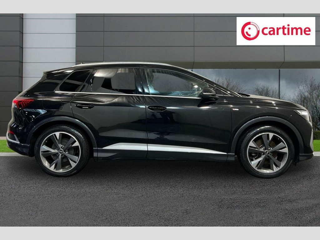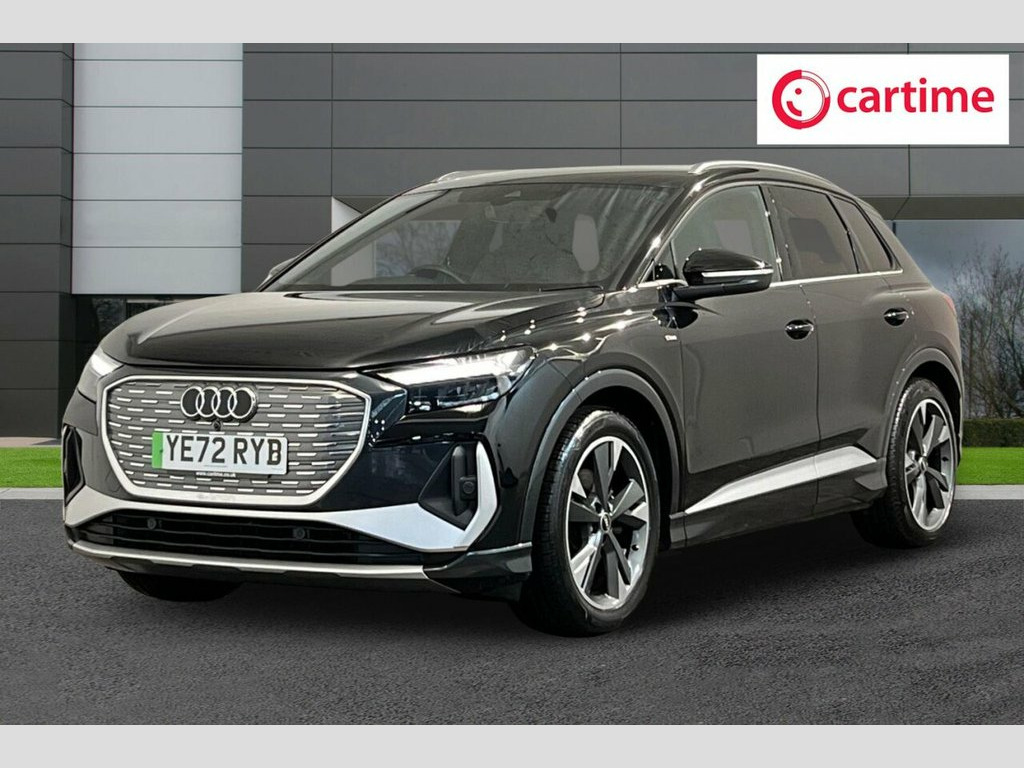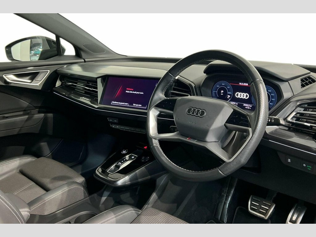 This 2022 Audi Q4 e-tron S line boasts exceptionally low mileage for its age, having covered just 16,776 miles, and has been owned by only one careful owner. As an electric vehicle, it offers a compelling blend of style and sustainability, with a 55 kWh battery providing a maximum range of 211 miles when new. Charging is convenient, taking approximately 7 hours and 30 minutes at home using a 7kW charger, while rapid public charging can replenish the battery from empty to 80% in as little as 32 minutes, supported by its 110kW DC charging capability. This S line model also features a 7.2 kW onboard charger, heated front seats for comfort, and three zone electronic climate control to ensure everyone enjoys the perfect temperature. For added convenience, rear parking sensors are included. The vehicle's MOT is valid until December 2026, and its history check is clear, providing peace of mind. The generous boot space in this Audi Q4 e-tron is a standout feature, offering ample room for shopping, luggage, or sports equipment, making it a practical choice for families and active individuals. The combination of its advanced electric powertrain, the desirable S line trim, and the comprehensive suite of comfort and convenience features, such as the heated seats and climate control, clearly sets this vehicle apart from others. Its low mileage and single owner provenance further enhance its appeal, indicating a well maintained and cherished example of Audi's innovative electric 110kW DC Charging Capability, 2 USB-C Ports with Charge and Data Funct, 20in Alloy Wheels - 5-Y-Spoke, 3-Zone Electronic Climate Control, 4-Way Electric Lumbar Support for Front , 7.2 kW Onboard Charger, ABS - Anti-Lock Braking System, AC and DC Charging access Point on the R, Active Vehicle Alerting System - AVAS, Aluminium Look Interior Elements, Aluminium Roof Rails, Ambient Lighting Pack, Anti Theft Locking Wheel Bolts, Anti-Theft Alarm, Audi Connect Navigation and Infotainment, Audi Connect Safety and Service - e-call, Audi Drive Select, Audi Pre-Sense Front with Pedestrian and, Audi Smartphone Interface, Audi Sound System, Audi Virtual Cockpit - 10.25in Display, Auto Dimming and Framel
