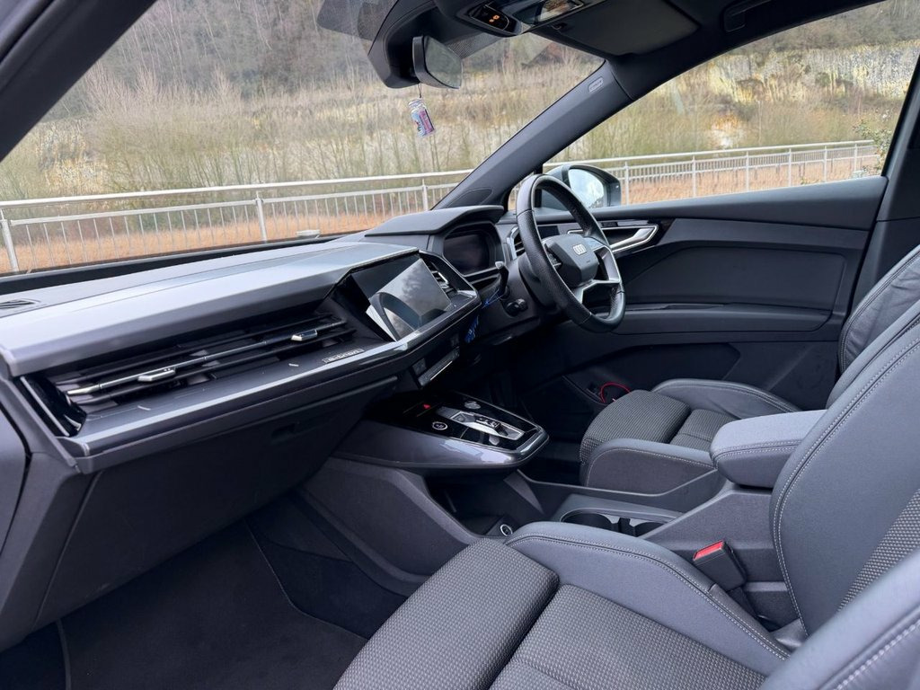 This 2021 Audi Q4 e-tron S line has been cherished by just one owner since new, offering a superb entry into electric motoring. As an all electric vehicle, it boasts a 55 kWh battery with a maximum range of 201 miles when new. This S line model comes equipped with the Audi Smartphone Interface, compatible with both Android Auto and Apple CarPlay, ensuring seamless connectivity. For convenience, it features rear parking sensors with parking assistance and comfort auxiliary air conditioning. The Q4 e-tron S line is designed for modern life, offering practical benefits that set it apart. Its electric powertrain allows for a full charge at home using a 7kW charger in approximately 7 hours and 30 minutes, perfect for overnight top ups. For longer journeys, rapid public charging can replenish the battery from empty to 80% in as little as 32 minutes, supported by its 110kW DC charging capability. Furthermore, the generous boot space provides ample room for shopping or luggage, making this Audi Q4 e-tron a versatile and efficient choice. 110kW DC Charging Capability, 2 USB-C Ports with Charge and Data Funct, 20in Alloy Wheels - 5-Y-Spoke, 3-Zone Electronic Climate Control, 4-Way Electric Lumbar Support for Front , 7.2 kW Onboard Charger, ABS - Anti-Lock Braking System, AC and DC Charging access Point on the R, Active Vehicle Alerting System - AVAS, Aluminium Look Interior Elements, Aluminium Roof Rails, Ambient Lighting Pack, Anti Theft Locking Wheel Bolts, Anti-Theft Alarm, Audi Connect Navigation and Infotainment, Audi Connect Safety and Service - e-call, Audi Drive Select, Audi Pre-Sense Front with Pedestrian and, Audi Smartphone Interface, Audi Sound System, Audi Virtual Cockpit - 10.25in Display, Auto Dimming and Framel