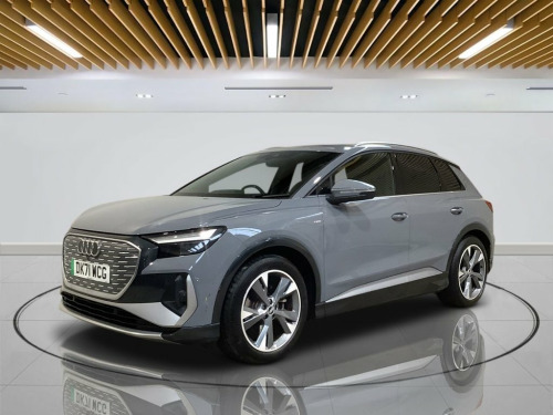 Why This Audi Q4 e-tron Wins? This 2021 Audi Q4 e-tron S line is a superb one-owner example of Audi's highly sought-after all-electric SUV, blending premium design with cutting-edge technology. Powered by a 55 kWh battery, it offered a maximum range of up to 201 miles when new, delivering smooth, quiet and refined electric performance that's perfectly suited to both urban driving and longer journeys. The sporty S line styling enhances its road presence, giving it a modern and confident look. Charging is simple and flexible, with a full home charge taking approximately 7 hours 30 minutes using a 7kW wallbox, while rapid public charging can replenish the battery from 0–80% in as little as 32 minutes thanks to its impressive 110kW DC charging capability. Inside, this Q4 e-tron impresses with heated front seats, rear parking sensors for stress-free manoeuvring, and a 3-zone electronic climate control system, ensuring comfort for all occupants in every season. Your Peace of Mind? - Clear vehicle history check - Optional 3–36-month extendable warranties - Free 12-month AA roadside assistance - Fully prepared to showroom standard with its existing MOT and servicing, and we can organise any further MOT or service enhancements at your request. - Drive Away, Insurance Available - No hidden or extra costs, like admin fees Autotrader's 2024 Insights: Top 3 e-tron Buyer Priorities: - Strong real-world electric range - Fast and convenient charging op 110kW DC Charging Capability, 2 USB-C Ports with Charge and Data Funct, Audi Connect Navigation and Infotainment, Audi Connect Safety and Service - e-call, Audi Smartphone Interface, Audi Sound System, Bluetooth Interface, DAB Digital Radio, MMI Navigation Plus with High Resolution, 20in Alloy Wheels - 5-Y-Spoke, AC and DC Charging access Point on the R, Aluminium Roof Rails, Anti Theft Locking Wheel Bolts, Body Coloured Door Mirrors, Contrast Bumpers in Manhattan Grey Paint, Electric Windows - Front, Folding Door Mirrors with Auto-Dimming F, Privacy Glass - Dark Tinted Rear Window , S Line Badges on Front Wings, S Line Exterior Styling, Single Frame Grille with a Structured Cl, Windscreen w