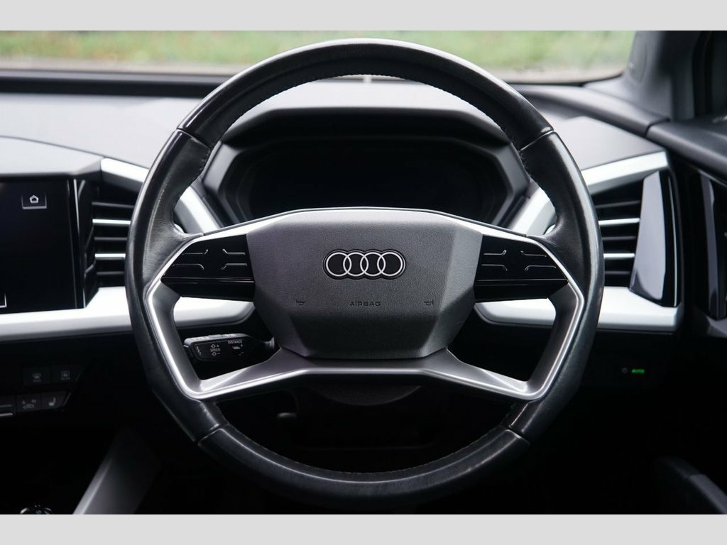 Prestige Car Supermarket in York presents this modern and highly capable 2022 Audi Q4 e-tron 35 Sport SUV. Finished in optional Floret Silver metallic paintwork, costing £695.00, and featuring a comfortable interior with Black and Silver Routine Cloth Sport Seats with Black Stitching, this automatic electric SUV offers smooth, silent performance and excellent efficiency. It rides on 19in 5-W-Spoke Aero alloy wheels and features Aluminium Roof Rails, Contrast Bumpers in Manhattan Grey, and the Gloss Styling Pack. Illumination is provided by LED Headlights with LED Daytime Running Lights and LED Rear Lights, complemented by Projection Light in the Exterior Mirrors. Step inside the highly appointed cabin to find Heated Front Seats, a Twin Spoke Leather Multifunction Steering Wheel, 3-Zone Electronic Climate Control, and Comfort Auxiliary Air Conditioning. Technology is cutting-edge with the Audi Virtual Cockpit 10.25in Display, MMI Navigation Plus with an 11.6in Touchscreen, Audi Smartphone Interface, and Audi Sound System. Convenience is a priority with Keyless Go, Power Operated Tailgate, Folding Door Mirrors with Auto-Dimming, and Rear Parking Sensors. Safety and driver assistance systems are extensive, including Audi Pre-Sense Front, Lane Departure Warning, Swerve Assist, and Camera Based Traffic Sign Recognition, ensuring a secure and cutting-edge drive. Routine Cloth - Sports Seats - Black and, Floret Silver, 110kW DC Charging Capability, 19in Alloy Wheels - 5-W-Spoke - Aero - G, 2 USB-C Ports with Charge and Data Funct, 3-Zone Electronic Climate Control, 4-Way Electric Lumbar Support for Front , 7.2 kW Onboard Charger, ABS - Anti-Lock Braking System, AC and DC Charging access Point on the R, Accent Surface in Gloss Black, Active Vehicle Alerting System - AVAS, Aluminium Look Interior Elements, Aluminium Roof Rails, Anti Theft Locking Wheel Bolts, Anti-Theft Alarm, Audi Connect Navigation and Infotainment, Audi Connect Safety and Service - e-call, Audi Drive Select, Audi Pre-Sense Front with Pedestrian and, Audi Smartphone Interface, Audi S