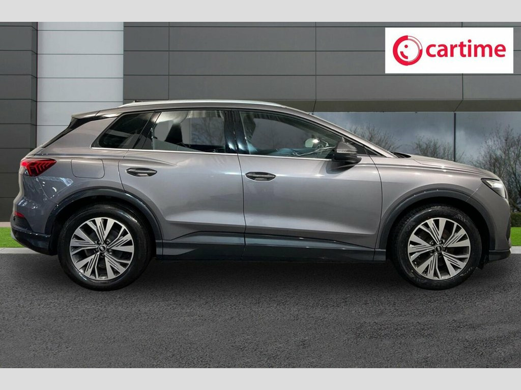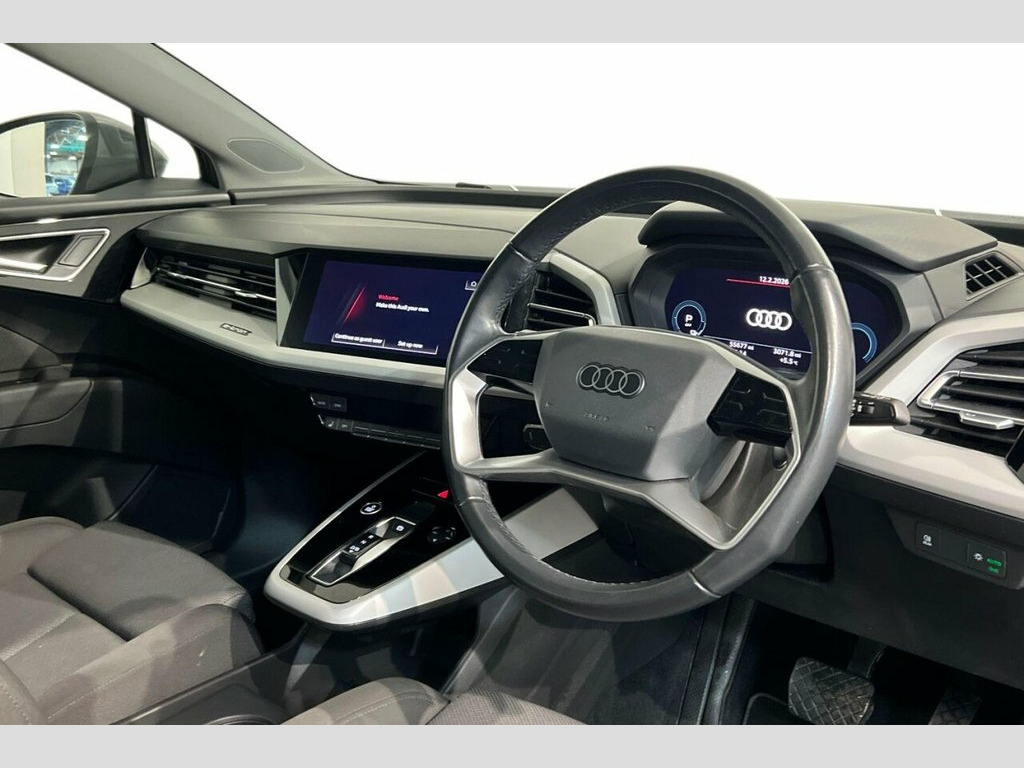 This 2021 Audi Q4 e-tron Sport is a superb example, boasting a clear vehicle history check and having been owned by just one person since new. As an electric vehicle, it offers a smooth and quiet driving experience, with a 55 kWh battery providing a maximum range of 208 miles when new. Charging is convenient, taking approximately 7 hours and 30 minutes at home using a 7kW charger, while rapid public charging can replenish the battery from empty to 80% in as little as 32 minutes. This particular model comes with an MOT valid until December 2026, offering peace of mind for the coming years. Inside, the Q4 e-tron Sport is well equipped for comfort and connectivity. You'll find 3-Zone Electronic Climate Control to keep everyone comfortable, along with heated front seats for those colder journeys. The Audi Smartphone Interface seamlessly integrates your phone, offering access to Android Auto and Apple CarPlay. LED headlights with distinctive daytime running lights ensure excellent visibility, while the Comfort Auxiliary Air Conditioning adds another layer of climate control. Furthermore, this Audi Q4 e-tron offers generous boot space, making it a practical choice for everyday use and longer trips alike. 110kW DC Charging Capability, 19in Alloy Wheels - 5-W-Spoke - Aero - G, 2 USB-C Ports with Charge and Data Funct, 3-Zone Electronic Climate Control, 4-Way Electric Lumbar Support for Front , 7.2 kW Onboard Charger, ABS - Anti-Lock Braking System, AC and DC Charging access Point on the R, Accent Surface in Gloss Black, Active Vehicle Alerting System - AVAS, Aluminium Look Interior Elements, Aluminium Roof Rails, Anti Theft Locking Wheel Bolts, Anti-Theft Alarm, Audi Connect Navigation and Infotainment, Audi Connect Safety and Service - e-call, Audi Drive Select, Audi Pre-Sense Front with Pedestrian and, Audi Smartphone Interface, Audi Sound System, Audi Virtual Cockpit - 10.25in Display, Auto