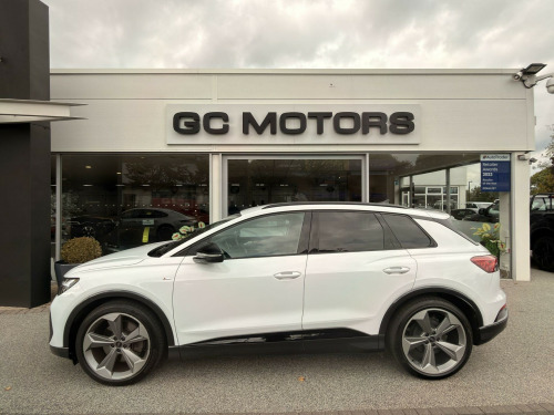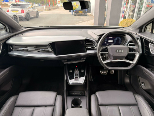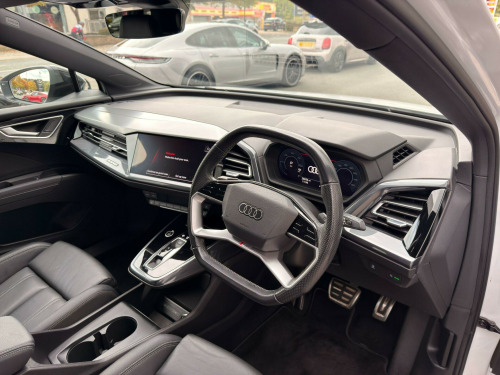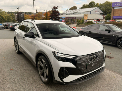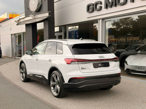 Q4 e-tron 40 Black EditionFactory Options: Black Leather Sports Seats with S Embossed Logo.Standard Specification: 21'' Matt Grey Turned 5-Arm Rotor Evo Alloys, Black Styling Pack, S Line Exterior Styling, Adaptive Cruise Control with Speed Limiter, Rear-View Camera, Parking System Plus Front and Rear Sensors, Heated Front Seats with 4-Way Electric Lumbar Support, LED Headlights with Daytime Running Lights, LED Rear Lights, Ambient Lighting Pack, Aluminium Interior Elements, Leather Multifunction Sport Design Steering Wheel with Shift Paddles, Power Operated Tailgate, Privacy Glass, Roof Rails, Illuminated S Line Sill Trims, Split-Folding Rear Seats, Lane Departure Warning, Audi Pre-Sense Front with Pedestrian and Cyclist Recognition, Active Vehicle Alerting System AVAS, Swerve Assist and Turn Assist, Audi Virtual Cockpit 10.25in Display, MMI Navigation Plus 11.6” Touchscreen, Audi Connect Navigation, Audi Smartphone Interface with Apple CarPlay and Android Auto, Audi Drive Select, Bluetooth Interface, Black Headlining, Stainless Steel Pedals,Keyless Go.Finished in Glacier White Metallic Paint. Audi Warranty Until 12/2026This car does not have a panoramic roof.Proudly No.1 in the UK for customer service in 2024, as awarded by AutoTrader. All our cars are HPI clear. Please contact us for your own personal video presentation of this particular car. We offer competitive finance rates with our in-house team from PCP, lease purchase and HP. Whilst we make every effort to ensure that the specification and technical information for the cars on our website is correct, some of it is supplied by third party providers and we cannot guarantee its accuracy. It is therefore important that you do not solely rely on this information.. 21'' Matt Grey Turned 5-Arm Rotor Evo Alloys, Black Styling Pack, S Line Exterior Styling, Adaptive Cruise Control with Speed Limiter, Rear-View Camera, Parking System Plus Front and Rear Sensors, Heated Front Seats with 4-Way Electric Lumbar Support, LED Headlights with Daytime Running Lights, LED Rear Lights, Aluminium Interior Elements, Leather Multifunction Sport Design Steering Wheel with Shift Paddles, Power Operated Tailgate, Privacy Glass, Roof Rails, Split-Folding Rear Seats, Lane Departure Warning, Audi Pre-Sense Front with Pedestrian and Cyclist Recognition, Active Vehicle Alerting System (AVAS), Swerve Assist and Turn Assist, Audi Virtual Cockpit 10.25” Display, MMI Navigation Plus 11.6” Touchscreen, Audi Connect Navigation, Audi Smartphone Interface with Apple CarPlay and Android Auto, Audi Drive Select, Bluetooth Interface, Black Headlining, Stainless Steel Pedals, Keyless Go, Black Leather Sports Seats with S Embossed Logo.