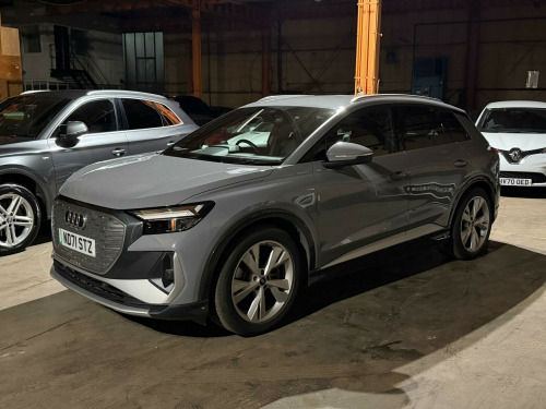 Boasting a full dealership service history, this 2021 Audi Q4 e-tron S line presents a superb example of electric motoring. As an electric vehicle, it offers a substantial battery total capacity of 82 kWh, providing a maximum range of 303 miles when new. This S line variant comes equipped with desirable features such as heated front seats for added comfort, LED headlights with daytime running lights for enhanced visibility, and the Audi Smartphone Interface, which seamlessly integrates Android Auto and Apple CarPlay. Further convenience is provided by the Bluetooth interface for hands-free calls and music streaming, alongside rear parking sensors to assist with manoeuvring.The Q4 e-tron S line is designed for practicality and efficiency. Its impressive 303 mile range at new highlights its capability for longer journeys, while the large boot space ensures ample room for luggage or shopping. Charging is flexible, with a full charge at home on a 7kW charger taking approximately 11 hours and 30 minutes, and the fastest public charging time from empty to 80% taking just 30 minutes. This vehicle comes with a 6 month warranty and a 12 month MOT provided on purchase, offering peace of mind for its next owner.IN PEBBLE GREY WITH BLACK HEATED S LINE EMBOSSED SPORTS SEATS, 2 OWNERS FROM NEW WITH AUDI FULL SERVICE HISTORY. LOW RATE FINANCE AVAILABLE APR 8.9% - PCP & HP DEALS AVAILABLE. kw onboard charger, 135kw dc charging capability, 2 usb-c ports with charge and data functions, 20in alloy wheels - 5-y-spoke, 3-zone electronic climate control, 4-way electric lumbar support for front seats, abs - anti-lock braking system, ac and dc charging access point on the rear right, active vehicle alerting system - avas, aluminium look interior elements, aluminium roof rails, ambient lighting pack, anti theft locking wheel bolts, anti-theft alarm, audi connect navigation and infotainment services plus (3 year subscription from new), audi connect safety and service - e-call, audi drive select, audi pre-sense front with pedestrian and cyclist recognition, audi smartphone interface, audi sound system, audi virtual cockpit - 10.25in display, auto dimming and frameless rear view mirror, bluetooth interface, body coloured door mirrors, camera based traffic sign recognition, cloth headlining in black, comfort auxiliary air conditioning, compact e-tron charging system, contrast bumpers in manhattan grey paint finish, cruise control with speed limiter, dab digital radio, driver and front passenger airbag with front passenger airbag deactivation, electric windows - front, electronically operated child locks, first aid kit and warning triangle and safety vests, folding door mirrors with auto-dimming function for both the drivers and passengers side electrically folding - adjustable and heated with built-in led side indicators and kerb-view function for passenger side, front centre armrest, front door sill trims with aluminium inlay - illuminated with s logo, front side airbags with head level airbag system and front interaction airbag, front and rear floor mats, heated front seats, household plug type g - gb, i-size child seat mounting on the front passenger side and i-size and top tether on the outer rear seat, industry plug cee 32 a-230 v long and straight, inlays - darkened matt brushed aluminium, keyless go, led headlights with led daytime running lights, led rear lights, lane departure warning, mmi navigation plus with high resolution 11.6in touchscreen colour display, mode 3 type 2-ac charging cable 22kw, non-smoking package, pedals in stainless steel, power operated tailgate, privacy glass - dark tinted rear window - rear door windows and rear side windows, progressive steering, projection light in the exterior mirrors, rear parking sensors, s line badges on front wings, s line exterior styling, seat belt monitoring, single frame grille with a structured closed surface with an octagonal shape, split folding rear seat bench - 60-40 or fully, sport suspension, steering wheel - grips in perforated leather - trim in chrome look - s emblem and contrast stitching, swerve assist and turn assist, tool kit, tyre pressure loss indicator, windscreen with acoustic glass