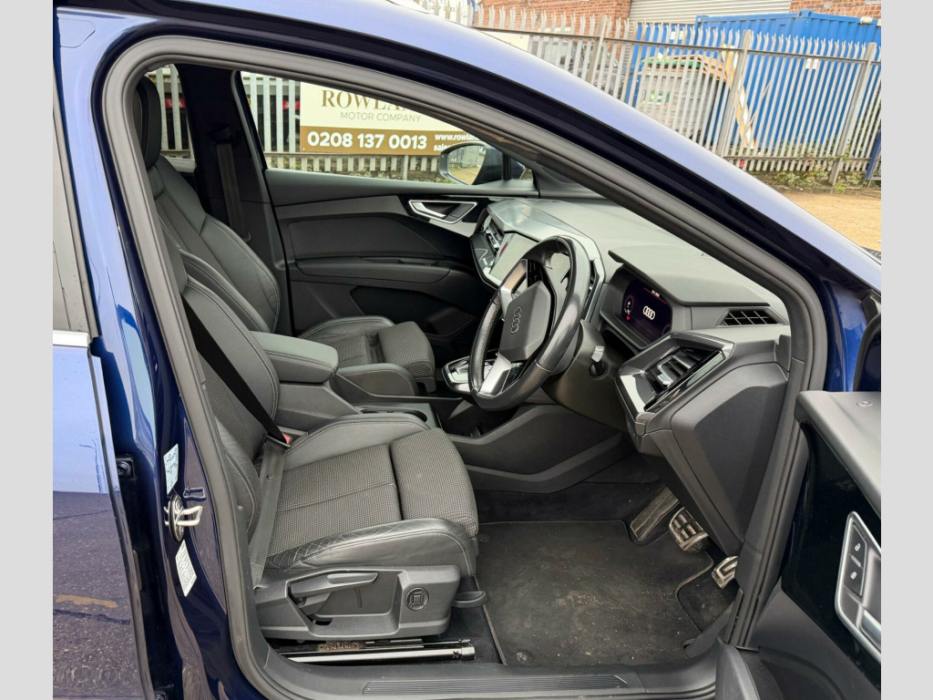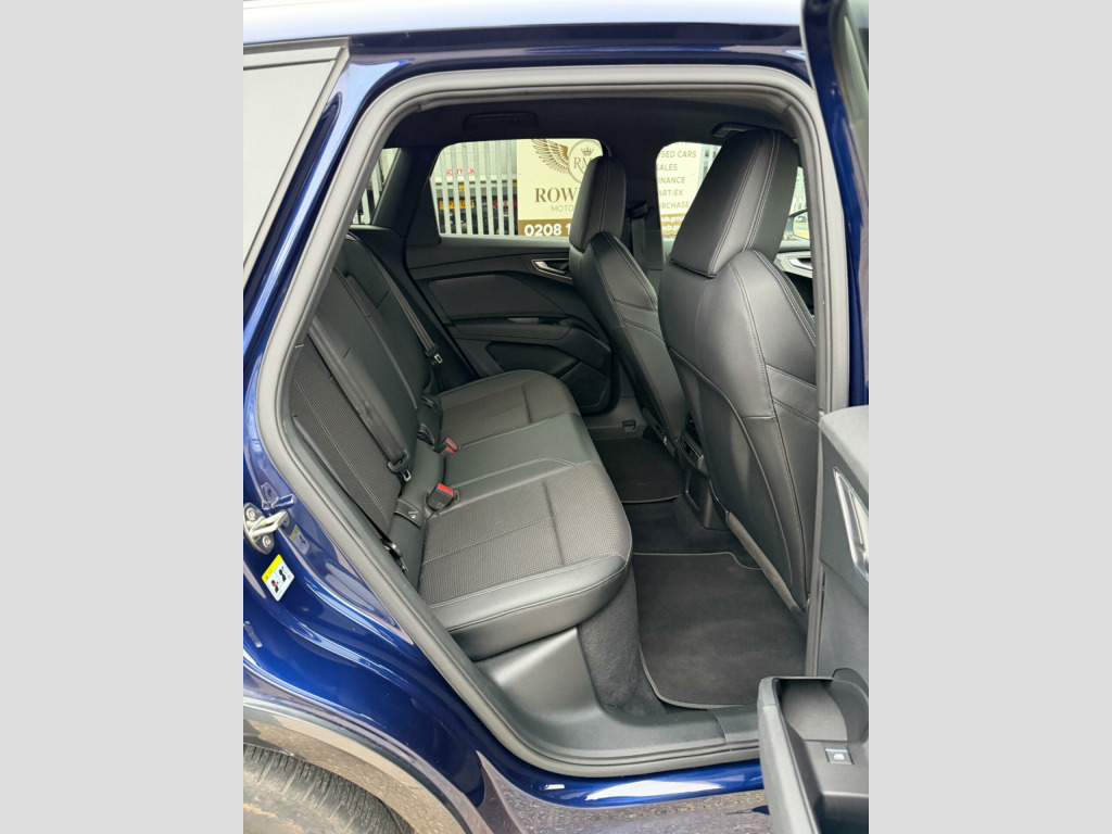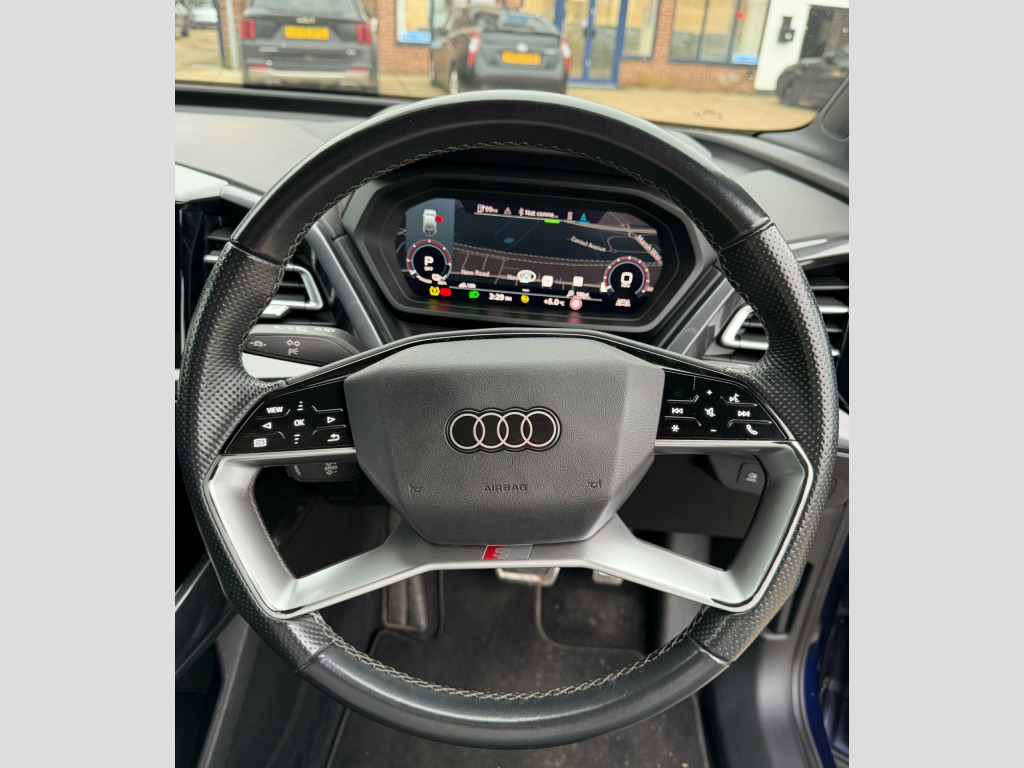 This 2021 Audi Q4 e-tron S line presents a remarkable opportunity with its exceptionally low mileage of just 29,500 miles for its age. As an electric vehicle, it boasts a substantial 82 kWh battery, offering a new battery maximum range of an impressive 303 miles. This S line variant comes equipped with a suite of desirable features, including a Bluetooth interface for seamless connectivity, heated front seats for enhanced comfort, and 3-zone electronic climate control to ensure a pleasant cabin temperature for all occupants. Further enhancing its appeal are the LED headlights with LED daytime running lights for superior visibility and comfort auxiliary air conditioning.The Audi Q4 e-tron S line stands out with its practical considerations, offering a large boot space perfect for everyday needs and longer journeys. Its electric powertrain provides efficient and quiet driving, with a full charging time at home using a 7kW charger taking approximately 11 hours and 30 minutes. For quicker top ups, the fastest public charging time from empty to 80% is an efficient 30 minutes. These highlights demonstrate the Q4 e-tron's capability as a well rounded electric SUV, combining advanced technology with everyday usability. bient lighting package plus, 11 kw onboard charger, 135kw dc charging capability, 2 usb-c ports with charge and data functions, 20in alloy wheels - 5-y-spoke, 3-zone electronic climate control, 4-way electric lumbar support for front seats, abs - anti-lock braking system, ac and dc charging access point on the rear right, active vehicle alerting system - avas, aluminium look interior elements, aluminium roof rails, ambient lighting pack, anti theft locking wheel bolts, anti-theft alarm, audi connect navigation and infotainment services plus (3 year subscription from new), audi connect safety and service - e-call, audi drive select, audi pre-sense front with pedestrian and cyclist recognition, audi smartphone interface, audi sound system, audi virtual cockpit - 10.25in display, auto dimming and frameless rear view mirror, bluetooth interface, body coloured door mirrors, camera based traffic sign recognition, cloth headlining in black, comfort auxiliary air conditioning, compact e-tron charging system, contrast bumpers in manhattan grey paint finish, cruise control with speed limiter, dab digital radio, driver and front passenger airbag with front passenger airbag deactivation, electric windows - front, electronically operated child locks, first aid kit and warning triangle and safety vests, folding door mirrors with auto-dimming function for both the drivers and passengers side electrically folding - adjustable and heated with built-in led side indicators and kerb-view function for passenger side, front centre armrest, front door sill trims with aluminium inlay - illuminated with s logo, front side airbags with head level airbag system and front interaction airbag, front and rear floor mats, heated front seats, household plug type g - gb, i-size child seat mounting on the front passenger side and i-size and top tether on the outer rear seat, industry plug cee 32 a-230 v long and straight, inlays - darkened matt brushed aluminium, keyless go, led headlights with led daytime running lights, led rear lights, lane departure warning, mmi navigation plus with high resolution 11.6in touchscreen colour display, mode 3 type 2-ac charging cable 22kw, non-smoking package, pedals in stainless steel, power operated tailgate, privacy glass - dark tinted rear window - rear door windows and rear side windows, progressive steering, projection light in the exterior mirrors, rear parking sensors, s line badges on front wings, s line exterior styling, seat belt monitoring, single frame grille with a structured closed surface with an octagonal shape, split folding rear seat bench - 60-40 or fully, sport suspension, steering wheel - grips in perforated leather - trim in chrome look - s emblem and contrast stitching, swerve assist and turn assist, tool kit, tyre pressure loss indicator, windscreen with acoustic glass