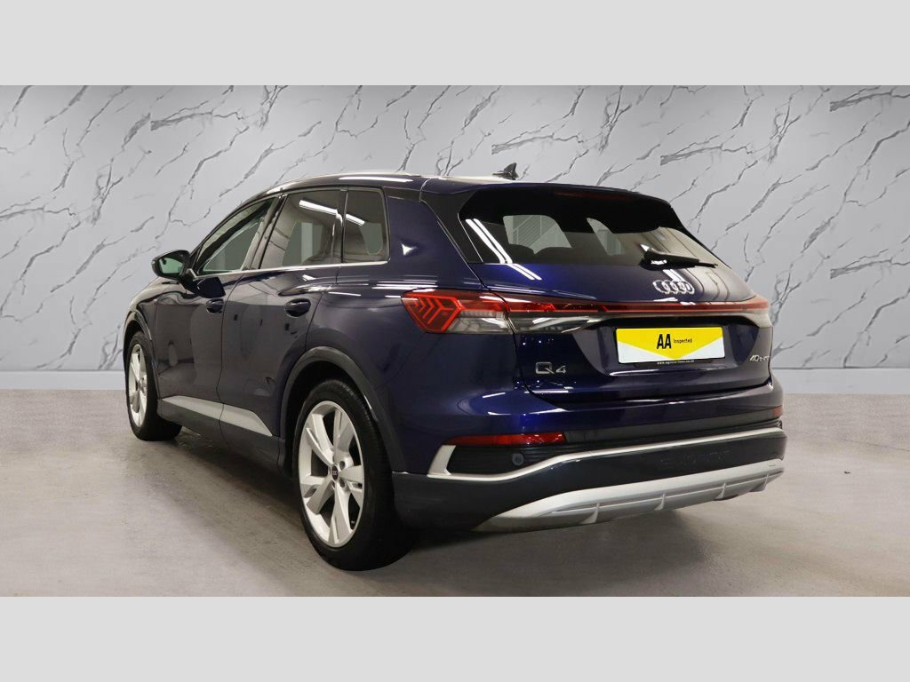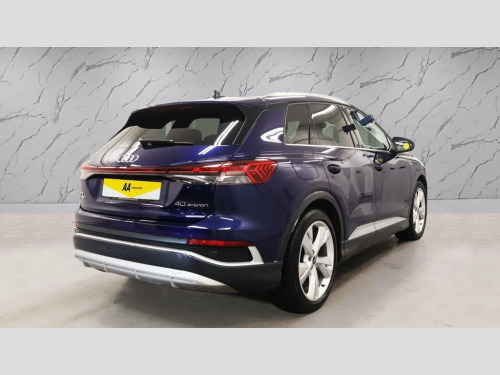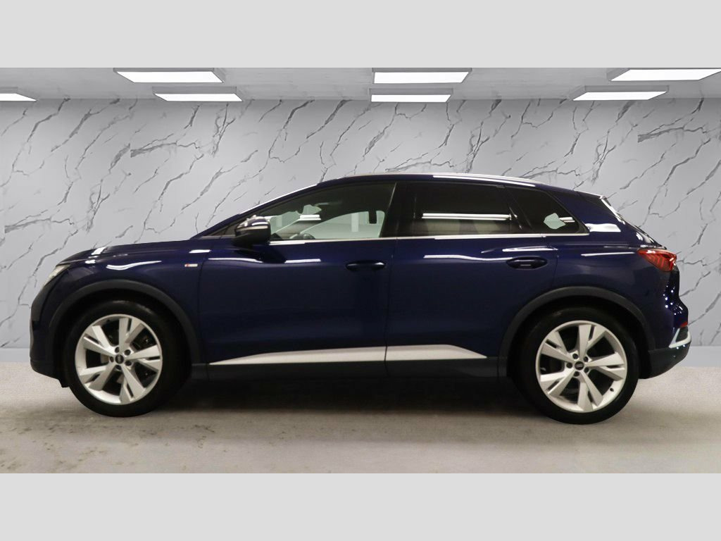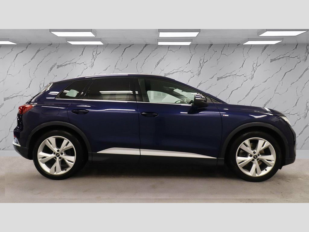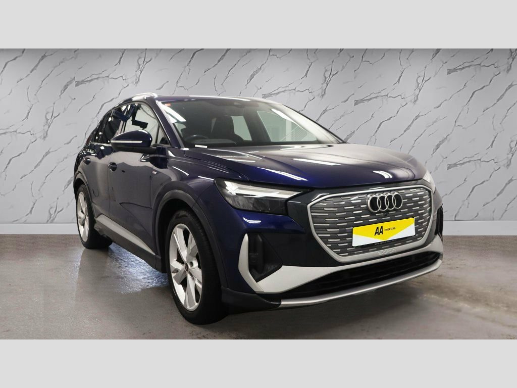 This 2022 Audi Q4 e-tron S line is a superb example, having had only one owner since new. This electric SUV combines sophisticated styling with advanced technology, featuring 20in Alloy Wheels in a Graphite Grey gloss turned finish. Inside, you'll find comfort and convenience with 3-Zone Electronic Climate Control and heated front seats. The Audi Smartphone Interface ensures seamless connectivity, offering both Android Auto and Apple CarPlay, while LED headlights with daytime running lights provide excellent visibility. With a substantial 82 kWh battery, this Q4 e-tron offers a maximum range of 312 miles when new, making it a practical choice for both daily commutes and longer journeys. Charging is efficient, with a full charge at home taking approximately 11 hours and 30 minutes on a 7kW charger, and a rapid charge to 80% possible in just 30 minutes at a public charging station. This vehicle also comes with a 36-month warranty and will be supplied with a 12-month MOT, offering peace of mind for its next owner. 20in Alloy Wheels - 5-Y-Spoke Graphite G, Navarra Blue, Pulse Cloth-Leather - Sport Seats with S, 11 kW Onboard Charger, 135kW DC Charging Capability, 2 USB-C Ports with Charge and Data Funct, 20in Alloy Wheels - 5-Y-Spoke, 3-Zone Electronic Climate Control, 4-Way Electric Lumbar Support for Front , ABS - Anti-Lock Braking System, AC and DC Charging access Point on the R, Active Vehicle Alerting System - AVAS, Aluminium Look Interior Elements, Aluminium Roof Rails, Ambient Lighting Pack, Anti Theft Locking Wheel Bolts, Anti-Theft Alarm, Audi Connect Navigation and Infotainment, Audi Connect Safety and Service - e-call, Audi Drive Select, Audi Pre-Sense Front with Pedestrian and, Audi Smartph