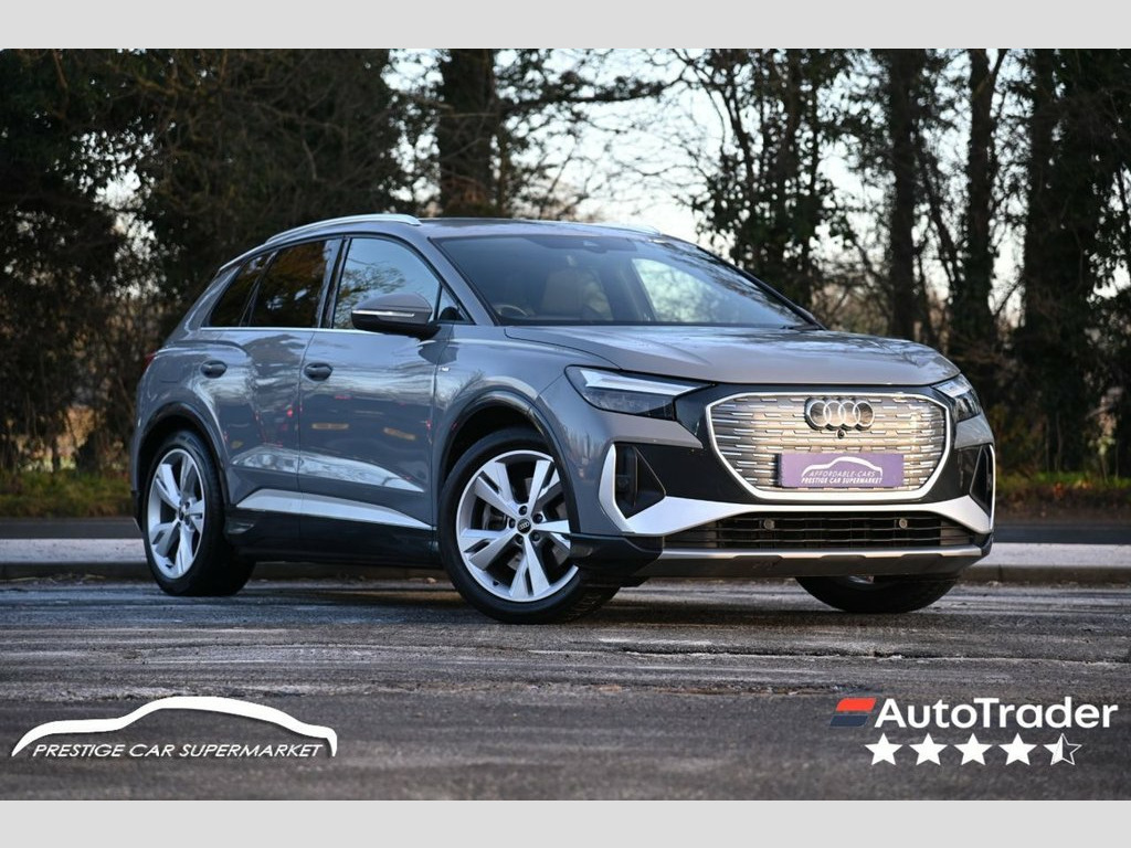 Prestige Car Supermarket in York presents this 2021 Audi Q4 e-tron 40 S line SUV, a fully electric automatic model producing 204 ps and equipped with an 82kWh battery for smooth, refined and responsive performance. Finished in Pebble Grey with Pulse cloth and leather sport seats featuring S embossed logos and Rock Grey stitching, this S line example offers a modern and premium driving environment. Charging capability includes an 11kW onboard charger, 135kW DC rapid charging, AC and DC charging access points, a compact e-tron charging system and Type 2 charging cables, supporting flexible home and public charging. The interior is centred around Audi Virtual Cockpit with a 10.25in display and MMI Navigation Plus with a high resolution 11.6in touchscreen, complemented by Audi Smartphone Interface, DAB digital radio, Bluetooth connectivity and the Audi sound system. Comfort features include three-zone electronic climate control, heated front seats, electric lumbar support, ambient lighting and a power operated tailgate. Driver assistance and safety systems include Audi Pre-Sense Front with pedestrian and cyclist recognition, lane departure warning, traffic sign recognition, cruise control with speed limiter, rear parking sensors and AVAS acoustic vehicle alerting. Exterior highlights include 20in alloy wheels, S line exterior styling, aluminium roof rails, LED headlights and rear lights, privacy glass and acoustic glazing, making this Q4 e-tron a well specified and highly desirab Pulse Cloth-Leather - Sport Seats with S, Pebble Grey, 11 kW Onboard Charger, 135kW DC Charging Capability, 2 USB-C Ports with Charge and Data Funct, 20in Alloy Wheels - 5-Y-Spoke, 3-Zone Electronic Climate Control, 4-Way Electric Lumbar Support for Front , ABS - Anti-Lock Braking System, AC and DC Charging access Point on the R, Active Vehicle Alerting System - AVAS, Aluminium Look Interior Elements, Aluminium Roof Rails, Ambient Lighting Pack, Anti Theft Locking Wheel Bolts, Anti-Theft Alarm, Audi Connect Safety and Service - e-call, Audi Drive Select, Audi Pre-Sense Front with Pedestrian and, Audi Smartphone Interface, Audi Sound System, Audi Virtual Cockpit - 10.25in Display, Auto Dimmin