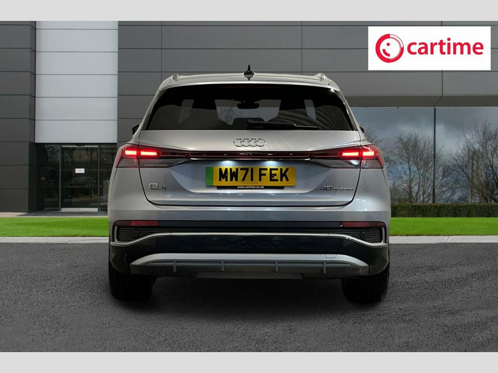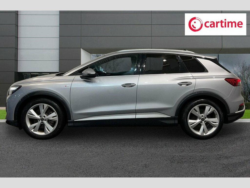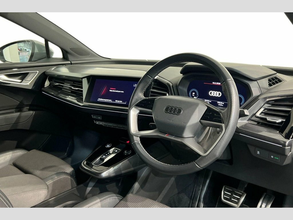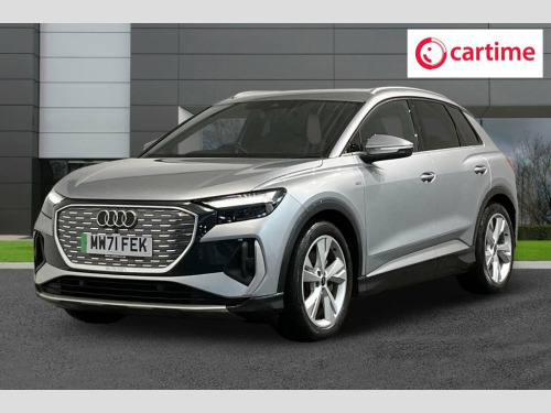 This 2021 Audi Q4 e-tron S line boasts a clear vehicle history and has been owned by just one person, offering peace of mind for its next owner. This electric SUV features an 82 kWh battery, providing a maximum range of 303 miles when new, and comes equipped with LED headlights and daytime running lights for enhanced visibility. Inside, you'll find comfort features like auxiliary air conditioning and 3-zone electronic climate control, alongside a Bluetooth interface for seamless connectivity. Rear parking sensors are also included, aiding in manoeuvrability. With only 33,448 miles on the clock, this Q4 e-tron is considered low mileage for its age, and its MOT is valid until December 2026. The large boot space offers practicality for everyday needs and longer journeys. Charging is convenient, with a full charge at home taking approximately 11 hours and 30 minutes using a 7kW charger, while rapid public charging can take the battery from empty to 80% in just 30 minutes. These attributes demonstrate the excellent condition and capability of this Audi Q4 e-tron. 11 kW Onboard Charger, 135kW DC Charging Capability, 2 USB-C Ports with Charge and Data Funct, 20in Alloy Wheels - 5-Y-Spoke, 3-Zone Electronic Climate Control, 4-Way Electric Lumbar Support for Front , ABS - Anti-Lock Braking System, AC and DC Charging access Point on the R, Active Vehicle Alerting System - AVAS, Aluminium Look Interior Elements, Aluminium Roof Rails, Ambient Lighting Pack, Anti Theft Locking Wheel Bolts, Anti-Theft Alarm, Audi Connect Navigation and Infotainment, Audi Connect Safety and Service - e-call, Audi Drive Select, Audi Pre-Sense Front with Pedestrian and, Audi Smartphone Interface, Audi Sound System, Audi Virtual Cockpit - 10.25in Display, Auto Dimming and Framele