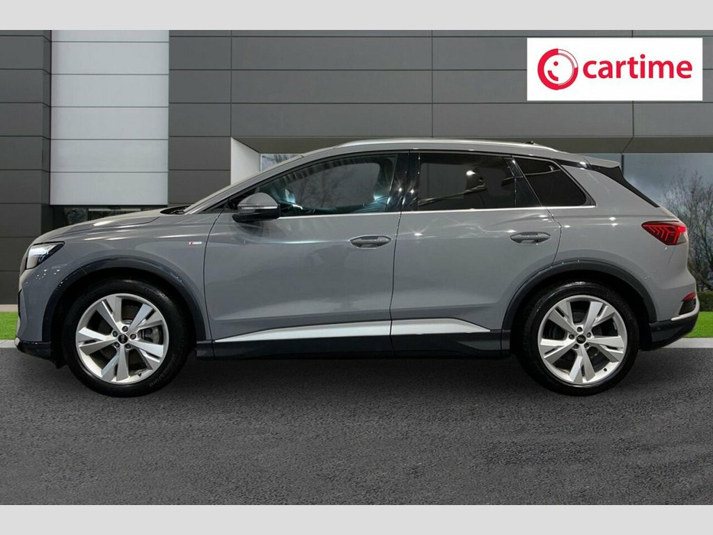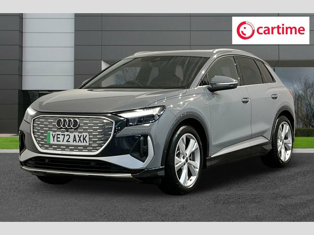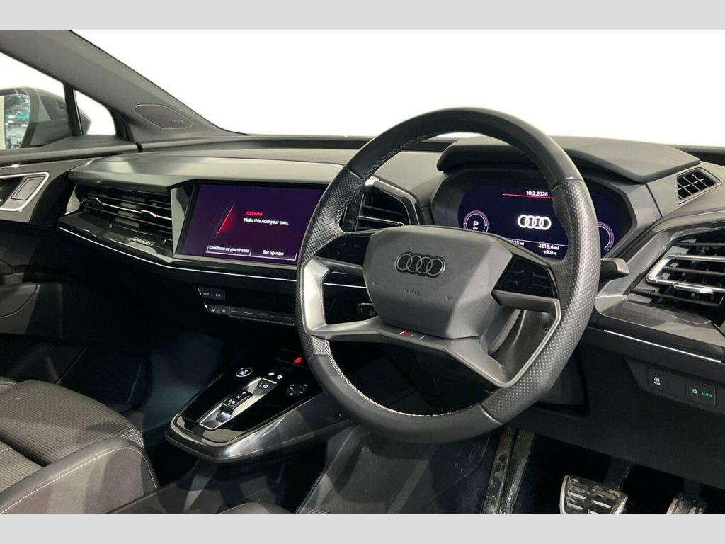 With only one owner and a remarkably low mileage of 12211 miles for its 2022 registration, this Audi Q4 e-tron S line presents an exceptional ownership proposition. As a fully electric vehicle, it offers a compelling blend of advanced technology and practicality. This S line variant boasts an 82 kWh battery, providing a maximum range of 312 miles when new, ensuring ample capability for both daily commutes and longer journeys. Charging is convenient, with a full charge at home taking approximately 11 hours and 30 minutes using a 7kW charger, while rapid public charging can replenish the battery from empty to 80% in just 30 minutes. The MOT is valid until October 2026, and a clear vehicle history check confirms its sound condition. This Audi Q4 e-tron S line is equipped with notable features designed for comfort and connectivity. Enjoy the convenience of Comfort Auxiliary Air Conditioning, ensuring a pleasant cabin temperature in all conditions, and heated front seats for added warmth during colder months. The LED headlights with LED daytime running lights provide excellent visibility, while the Bluetooth interface and Audi Smartphone Interface, compatible with Android Auto and Apple CarPlay, keep you connected on the go. Furthermore, the generous boot space offers excellent practicality for carrying luggage or shopping, highlighting its advantage over many similar vehicles. 11 kW Onboard Charger, 135kW DC Charging Capability, 2 USB-C Ports with Charge and Data Funct, 20in Alloy Wheels - 5-Y-Spoke, 3-Zone Electronic Climate Control, 4-Way Electric Lumbar Support for Front , ABS - Anti-Lock Braking System, AC and DC Charging access Point on the R, Active Vehicle Alerting System - AVAS, Aluminium Look Interior Elements, Aluminium Roof Rails, Ambient Lighting Pack, Anti Theft Locking Wheel Bolts, Anti-Theft Alarm, Audi Connect Navigation and Infotainment, Audi Connect Safety and Service - e-call, Audi Drive Select, Audi Pre-Sense Front with Pedestrian and, Audi Smartphone Interface, Audi Sound System, Audi Virtual Cockpit - 10.25in Display, Auto Dimming and Framele