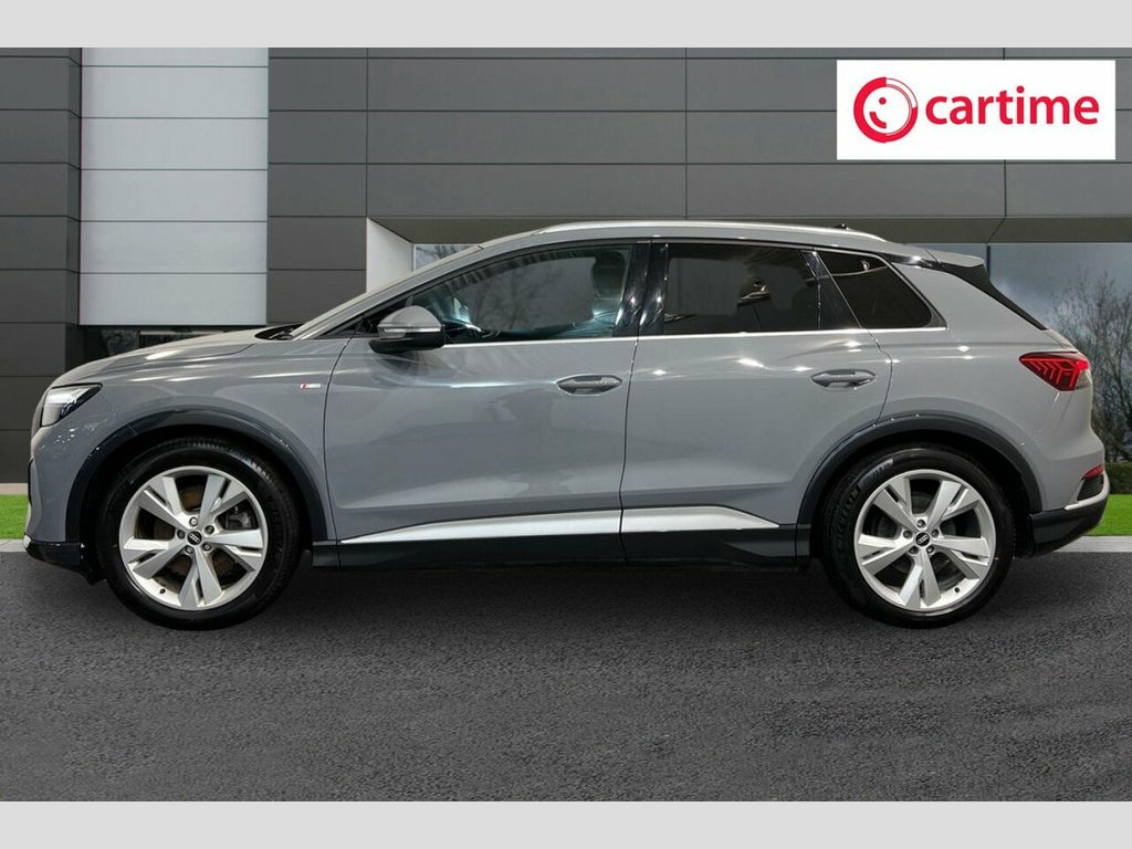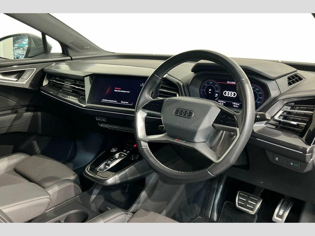 This 2022 Audi Q4 e-tron S line boasts a clear vehicle history and has had only one owner, offering peace of mind. As an electric vehicle, it combines advanced technology with a premium driving experience. This S line variant comes equipped with a substantial 82 kWh battery, providing a maximum range of 312 miles when new. For convenience, it offers a full home charging time of 11 hours 30 minutes using a 7kW charger, and can reach 80% charge in just 30 minutes at a public charging station. The MOT is valid until January 2027, further underscoring its roadworthiness. Inside, you'll find a host of desirable features designed for comfort and connectivity. Heated front seats ensure a warm welcome on colder days, while LED headlights with daytime running lights enhance visibility. The 3-zone electronic climate control allows for personalised comfort for all occupants. Parking is made easier with rear parking sensors, and the Audi Smartphone Interface, compatible with both Android Auto and Apple CarPlay, keeps you connected on the go. This Q4 e-tron also offers generous boot space, making it a practical choice for everyday life and longer journeys, setting it apart from other electric SUVs. 11 kW Onboard Charger, 135kW DC Charging Capability, 2 USB-C Ports with Charge and Data Funct, 20in Alloy Wheels - 5-Y-Spoke, 3-Zone Electronic Climate Control, 4-Way Electric Lumbar Support for Front , ABS - Anti-Lock Braking System, AC and DC Charging access Point on the R, Active Vehicle Alerting System - AVAS, Aluminium Look Interior Elements, Aluminium Roof Rails, Ambient Lighting Pack, Anti Theft Locking Wheel Bolts, Anti-Theft Alarm, Audi Connect Navigation and Infotainment, Audi Connect Safety and Service - e-call, Audi Drive Select, Audi Pre-Sense Front with Pedestrian and, Audi Smartphone Interface, Audi Sound System, Audi Virtual Cockpit - 10.25in Display, Auto Dimming and Framele
