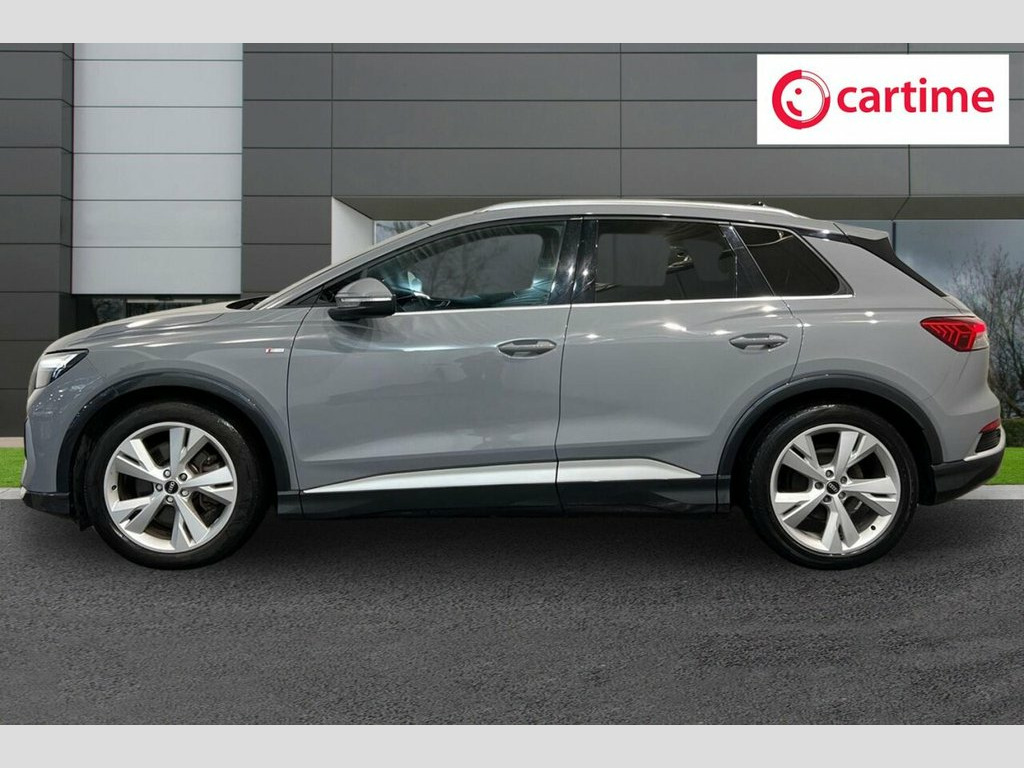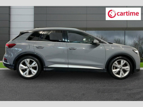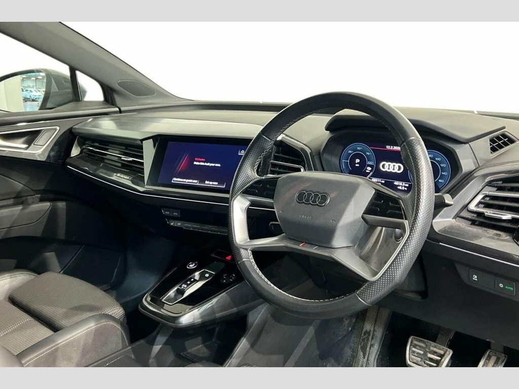 This 2022 Audi Q4 e-tron S line boasts a clear vehicle history and has had only one owner since new. As an electric vehicle, it offers a substantial battery total capacity of 82 kWh, providing a maximum range of 312 miles when new. This S line variant comes equipped with striking LED headlights featuring LED daytime running lights, ensuring excellent visibility. Inside, you'll find comfort in the heated front seats and the convenience of rear parking sensors. The cabin also features comfort auxiliary air conditioning and a 3 zone electronic climate control system, allowing for personalised comfort for all occupants. The Audi Q4 e-tron S line is designed for modern driving needs. Its impressive 312 mile maximum range at new means you can travel further between charges, making it a practical choice for both daily commutes and longer journeys. Charging is also efficient, with a full charge at home on a 7kW charger taking approximately 11 hours and 30 minutes, while the fastest public charging can replenish the battery from empty to 80% in just 30 minutes. Furthermore, this vehicle offers generous boot space, ideal for luggage or shopping. With its MOT valid until September 2026, this Audi Q4 e-tron presents a compelling package of electric performance, comfort, and practicality. 11 kW Onboard Charger, 135kW DC Charging Capability, 2 USB-C Ports with Charge and Data Funct, 20in Alloy Wheels - 5-Y-Spoke, 3-Zone Electronic Climate Control, 4-Way Electric Lumbar Support for Front , ABS - Anti-Lock Braking System, AC and DC Charging access Point on the R, Active Vehicle Alerting System - AVAS, Aluminium Look Interior Elements, Aluminium Roof Rails, Ambient Lighting Pack, Anti Theft Locking Wheel Bolts, Anti-Theft Alarm, Audi Connect Navigation and Infotainment, Audi Connect Safety and Service - e-call, Audi Drive Select, Audi Pre-Sense Front with Pedestrian and, Audi Smartphone Interface, Audi Sound System, Audi Virtual Cockpit - 10.25in Display, Auto Dimming and Framele