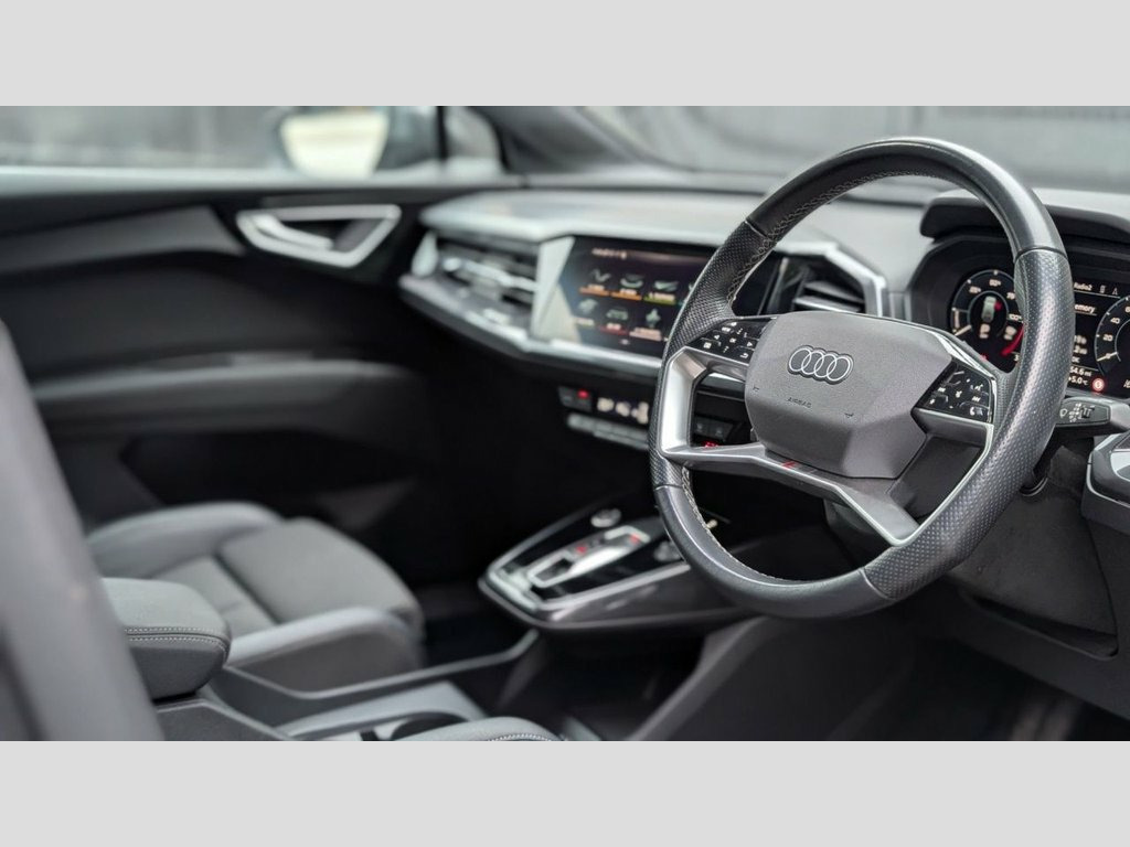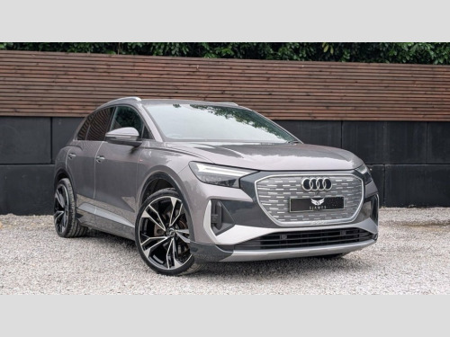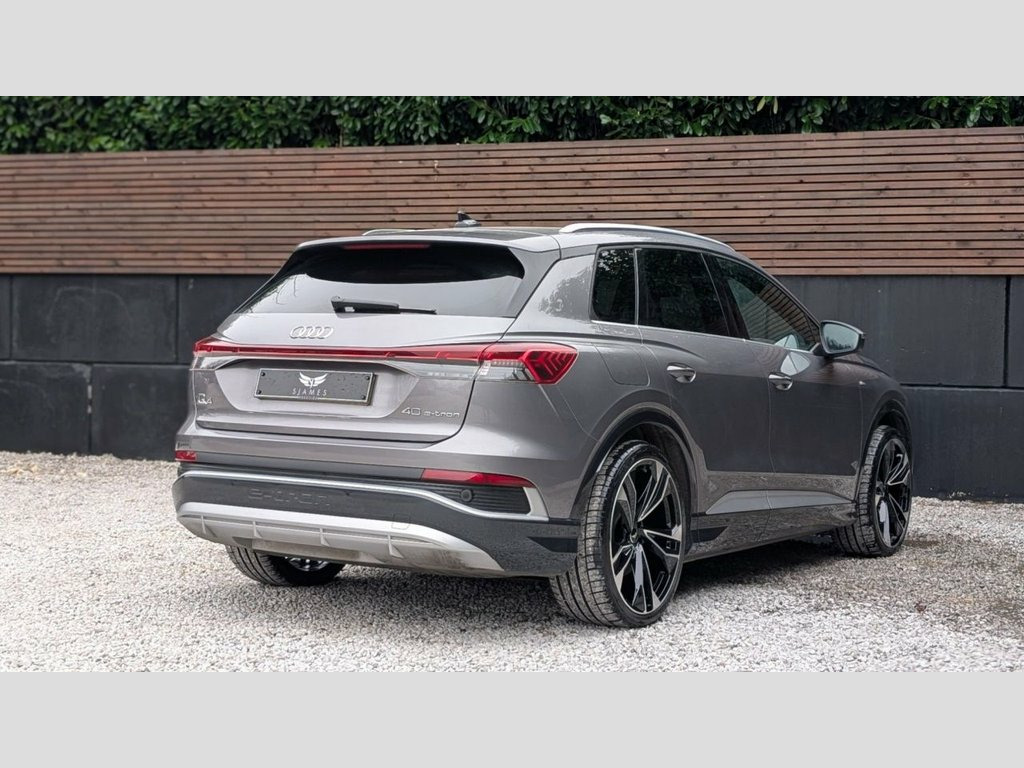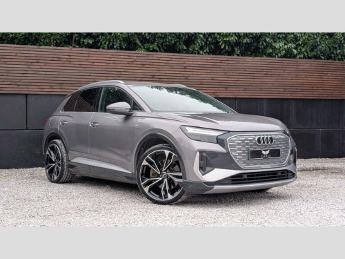 THIS STUNNING Q4 E-TRON 40 150KW 83KWH S LINE COMES WITH A GREAT SPEC INCLUDING - Grey Metallic - Half Leather Sport Seats In Black With Cloth Inserts - MMI Navigation Plus with an 11.6-inch touchscreen and Audi Virtual Cockpit (10.25-inch digital display) - Steering wheel: Twin-spoke leather-trimmed multifunction sports steering wheel - Apple CarPlay, Android Auto, and Bluetooth interface - Heated front seats and three-zone automatic climate control. - Privacy glass for the rear windows - Satellite navigation - Parking Sensors Front And Rear - Cruise control - LED headlights with daytime running lights - Led Rear Lights - Automatic transmission - Grade A Certificate On Battery Report. - OPTIONAL EXTRAS / UPGRADES AVAILABLE: - Optional brake calliper painting to a colour of your choice - Optional Debadge - Optional gloss black badges - Optional gloss black wing mirrors - Optional 3 year manufacturer equivalent warranty to purchase - Number of keys to be confirmed at the point of sale. ---------Electric vehicle range The range of an electric vehicle is the number of miles it can travel with a fully charged battery before needing to be recharged. This information is provided by the manufacturer. Whilst this information is useful, it's important to remember that there are several factors that can affect a vehicle's range. Some of the factors that can affect the range of an electric vehicle: Weather conditions, especially cold weather The vehicle load Usage 11 kW Onboard Charger, 135kW DC Charging Capability, 2 USB-C Ports with Charge and Data Funct, 20in Alloy Wheels - 5-Y-Spoke, 3-Zone Electronic Climate Control, 4-Way Electric Lumbar Support for Front , ABS - Anti-Lock Braking System, AC and DC Charging access Point on the R, Active Vehicle Alerting System - AVAS, Aluminium Look Interior Elements, Aluminium Roof Rails, Ambient Lighting Pack, Anti Theft Locking Wheel Bolts, Anti-Theft Alarm, Audi Connect Navigation and Infotainment, Audi Connect Safety and Service - e-call, Audi Drive Select, Audi Pre-Sense Front with Pedestrian and, Audi Smartphone Interface, Audi Sound System, Audi Virtual Cockpit - 10.25in Display, Auto Dimming and Framele