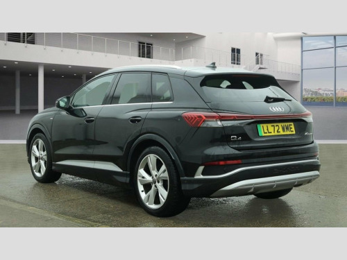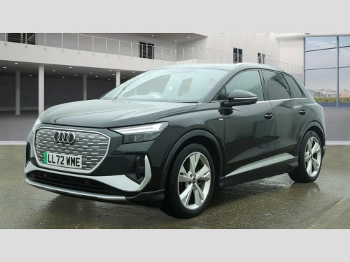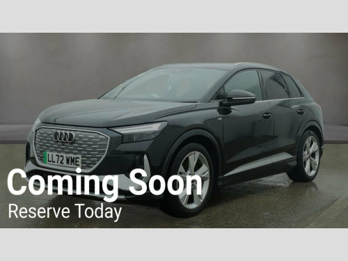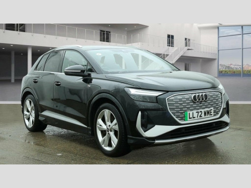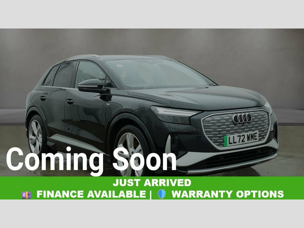 Why This Audi Q4 e-tron Wins? This 2022 Audi Q4 e-tron S line perfectly combines striking design, advanced electric technology, and everyday practicality. Powered by a large 82 kWh battery, it offers an impressive maximum range of up to 312 miles when new — making it ideal for both daily commuting and longer motorway journeys without range anxiety. This example benefits from a full service history, with its most recent service completed on 21st February 2026 at 36,597 miles, demonstrating excellent care and maintenance. The S line trim enhances the Q4's sporty appeal with distinctive styling upgrades, larger alloy wheels, and a more dynamic interior finish, delivering the premium feel Audi is renowned for. Smooth, instant electric torque ensures effortless acceleration, while the refined cabin provides a quiet and comfortable driving experience. Charging is straightforward and flexible. A full home charge using a 7kW wall box takes approximately 11 hours and 30 minutes — perfect for overnight charging — while rapid public charging can take the battery from empty to 80% in as little as 30 minutes, keeping you moving with minimal downtime. Your Peace of Mind? - Clear vehicle history check - Optional 3–36-month extendable warranties - Free 12-month AA roadside assistance - Fully prepared to showroom standard with its existing MOT and servicing, and we can organise any further MOT or service enhancements at your request. - Drive Away, Insuran 135kW DC Charging Capability, 2 USB-C Ports with Charge and Data Funct, Audi Connect Navigation and Infotainment, Audi Connect Safety and Service - e-call, Audi Smartphone Interface, Audi Sound System, Bluetooth Interface, DAB Digital Radio, MMI Navigation Plus with High Resolution, 20in Alloy Wheels - 5-Y-Spoke, AC and DC Charging access Point on the R, Aluminium Roof Rails, Anti Theft Locking Wheel Bolts, Contrast Bumpers in Manhattan Grey Paint, Electric Windows - Front, Folding Door Mirrors with Auto-Dimming F, Privacy Glass - Dark Tinted Rear Window , S Line Badges on Front Wings, S Line Exterior Styling, Single Frame Grille with a Structured Cl, Windscreen with Acoustic Glass, 3-Zone E