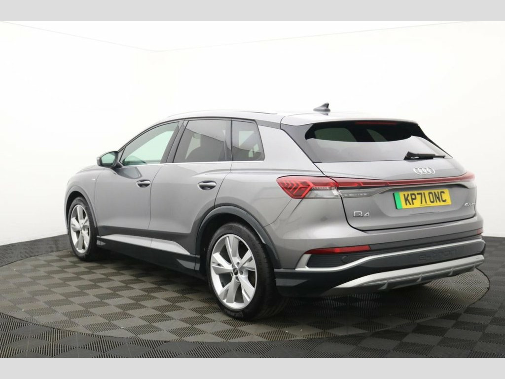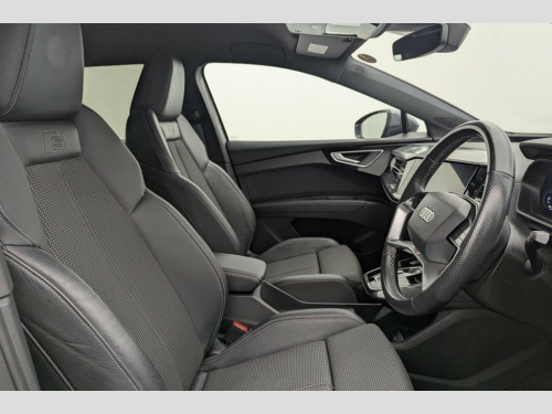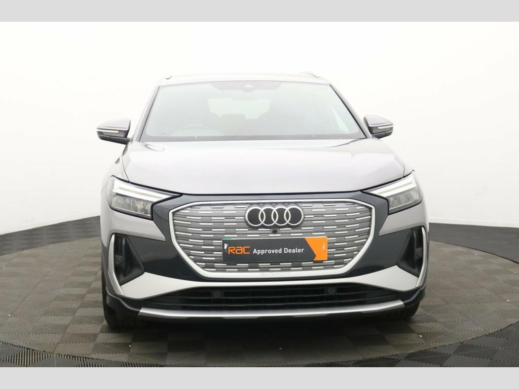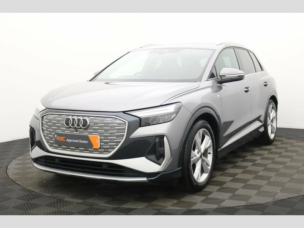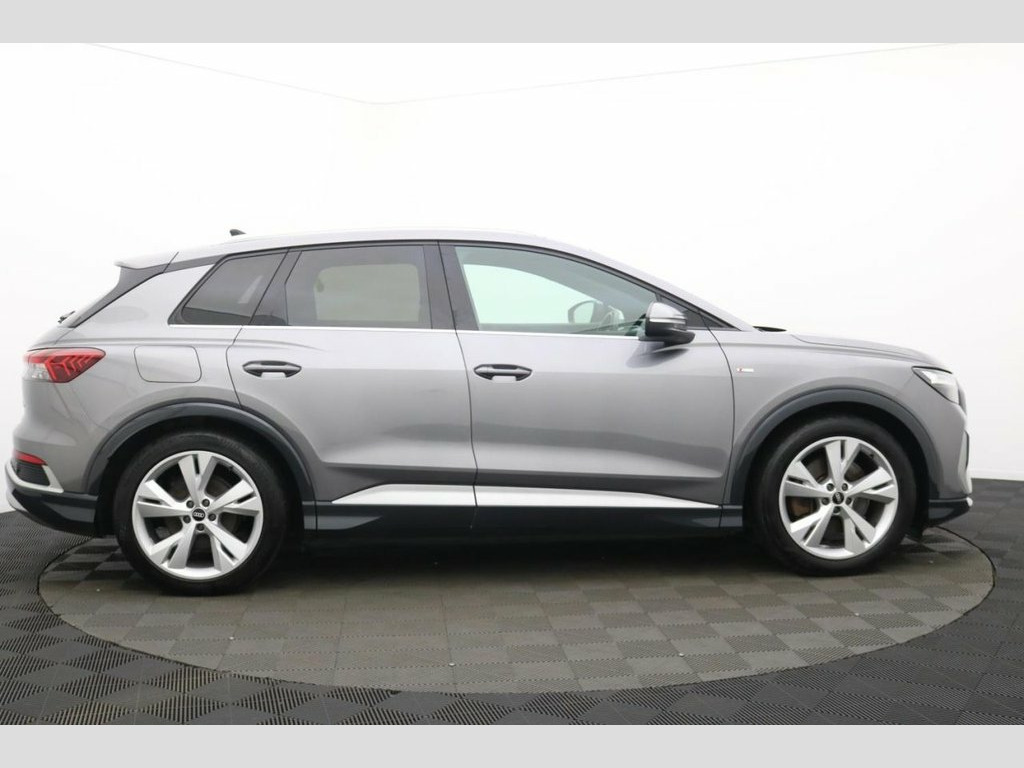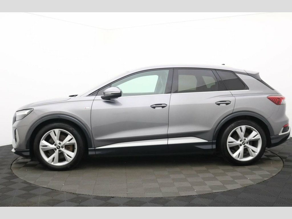 The Audi Q4 e-tron 40 S line is a striking all-electric SUV that perfectly combines cutting-edge technology, refined luxury, and dynamic performance. Powered by a single electric motor producing 204 PS, the Q4 e-tron 40 delivers smooth, instant acceleration and an impressive range of up to 320 miles (WLTP), making it ideal for both urban driving and long-distance journeys. The S line trim enhances its athletic appeal with sporty exterior styling, 19" alloy wheels, S line bumpers, and Matrix LED headlights, giving the Q4 e-tron a confident, futuristic presence on the road. Inside, Audi's meticulous attention to detail shines through with high-quality materials, sports seats, ambient interior lighting, and a multifunction sports steering wheel. At the heart of the cabin is the Audi Virtual Cockpit and a 10.1" MMI touch display, offering seamless access to navigation, media, and connected services. The spacious interior and 535-litre boot capacity ensure practicality and comfort for family life or business use alike. With its refined handling, whisper-quiet drive, and zero-emission performance, the Audi Q4 e-tron 40 S line SUV embodies the future of premium electric mobility — stylish, sustainable, and unmistakably Audi. 11 kW Onboard Charger, 135kW DC Charging Capability, 2 USB-C Ports with Charge and Data Funct, 20in Alloy Wheels - 5-Y-Spoke, 3-Zone Electronic Climate Control, 4-Way Electric Lumbar Support for Front , ABS - Anti-Lock Braking System, AC and DC Charging access Point on the R, Active Vehicle Alerting System - AVAS, Aluminium Look Interior Elements, Aluminium Roof Rails, Ambient Lighting Pack, Anti Theft Locking Wheel Bolts, Anti-Theft Alarm, Audi Connect Navigation and Infotainment, Audi Connect Safety and Service - e-call, Audi Drive Select, Audi Pre-Sense Front with Pedestrian and, Audi Smartphone Interface, Audi Sound System, Audi Virtual Cockpit - 10.25in Display, Auto Dimming and Framele