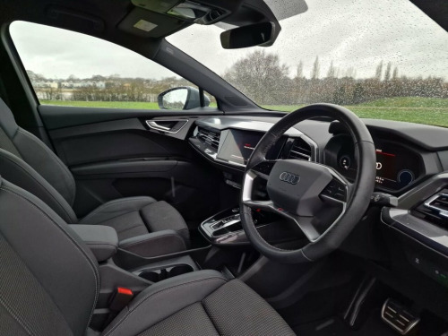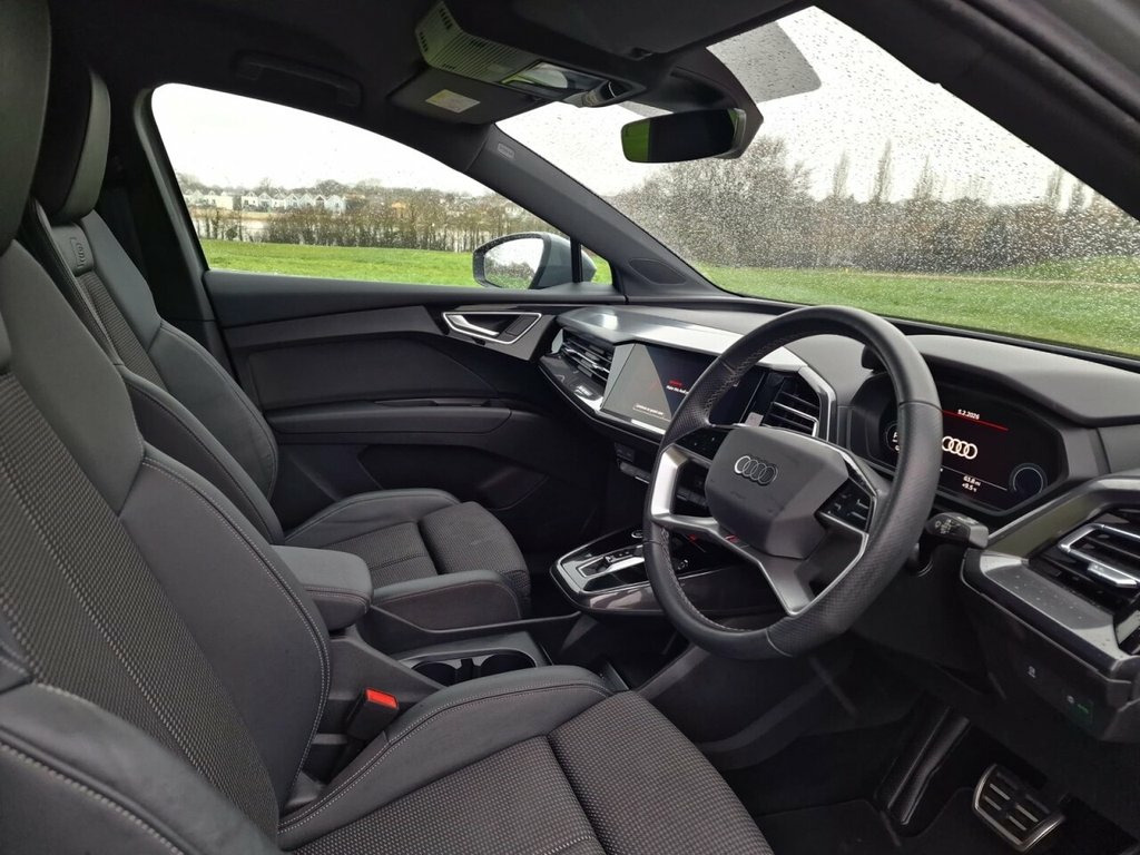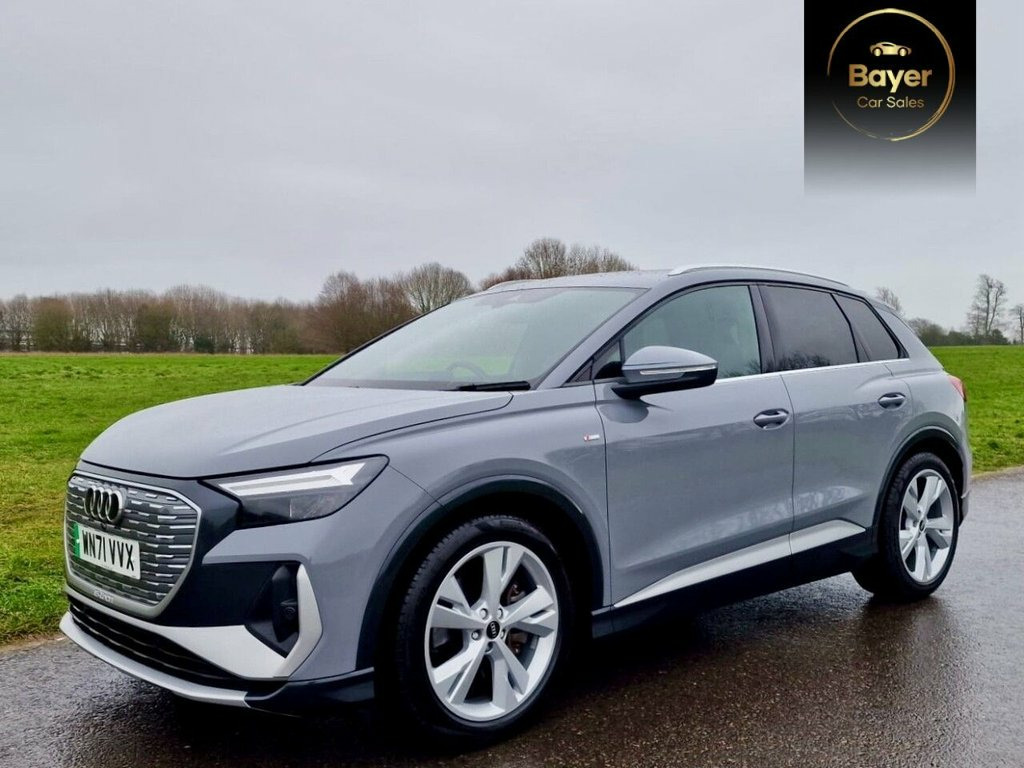 GREAT VALUE VAT QUALIFYING This 2021 Audi Q4 e-tron S line boasts a single owner from new, offering a pristine example of this popular electric SUV. As an electric vehicle, it features an 82 kWh battery, providing a maximum range of 303 miles when new. This S line trim enhances the driving experience with desirable features such as heated front seats for comfort, a Bluetooth interface for seamless connectivity, and the Audi Smartphone Interface which supports both Android Auto and Apple CarPlay. For convenience, it includes rear parking sensors to aid manoeuvring and a 3-zone electronic climate control system to ensure all occupants enjoy their preferred temperature. The Audi Q4 e-tron S line offers impressive charging capabilities, with a full charge at home using a 7kW charger taking approximately 11 hours and 30 minutes, ideal for overnight top ups. For faster charging on the go, it can reach 80% capacity from empty in just 30 minutes at a compatible public charging station. The highlighted maximum range of 303 miles demonstrates its suitability for both daily commutes and longer journeys, setting it apart as a practical and efficient electric vehicle choice. 11 kW Onboard Charger, 135kW DC Charging Capability, 2 USB-C Ports with Charge and Data Funct, 20in Alloy Wheels - 5-Y-Spoke, 3-Zone Electronic Climate Control, 4-Way Electric Lumbar Support for Front , ABS - Anti-Lock Braking System, AC and DC Charging access Point on the R, Active Vehicle Alerting System - AVAS, Aluminium Look Interior Elements, Aluminium Roof Rails, Ambient Lighting Pack, Anti Theft Locking Wheel Bolts, Anti-Theft Alarm, Audi Connect Navigation and Infotainment, Audi Connect Safety and Service - e-call, Audi Drive Select, Audi Pre-Sense Front with Pedestrian and, Audi Smartphone Interface, Audi Sound System, Audi Virtual Cockpit - 10.25in Display, Auto Dimming and Framele