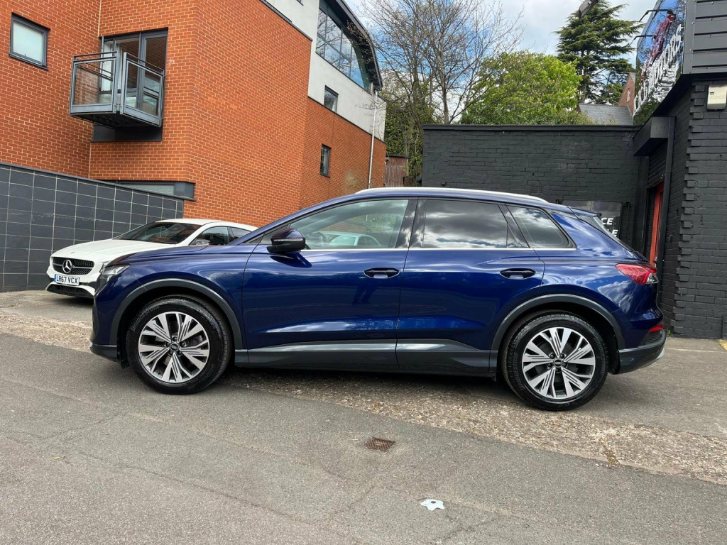 Audi Q4 e-tron 40 Sport Auto 5dr 82kWh, CAR FEATURES INCLUDE, ELECTRIC WINDOWS, ELECTRIC SEATS, 19ALLOY WHEELS, NAVIGATION, PARKING SENSORS, CRUISE CONTROL, CLIMATE CONTROL, HEATED SEATS. *BUY WITH CONFIDENCE*FINANCE AVAILABLE*FCA APPROVED*6 MONTHS WARRANTY*BATTERY WARRANTY TILL MARCH 2030*2 KEYS*FSH*, The 2022 Audi Q4 e-tron Sport is an all-electric car that combines practicality with modern technology. This particular model comes in the Sport trim and has had only one previous owner. Its equipped with several features designed for comfort and convenience, including 3-Zone Electronic Climate Control, ensuring a comfortable environment for all passengers, and heated front seats for those chilly mornings. LED headlights with LED daytime running lights provide excellent visibility, while rear parking sensors make maneuvering in tight spots easier. The Audi Smartphone Interface, complete with Android Auto and Apple CarPlay, keeps you connected on the go. One of the cars standout features is its impressive new battery range of 321 miles, meaning fewer stops on long journeys compared to similar vehicles. The large boot space is another advantage, offering ample room for luggage, shopping, or anything else you need to transport. Charging is convenient, with a full charge at home taking approximately 11 hours and 30 minutes using a 7kW charger. For those needing a quicker charge while out and about, the Q4 e-tron can charge from empty to 80% in just 30 minutes at a rapid public charging station.