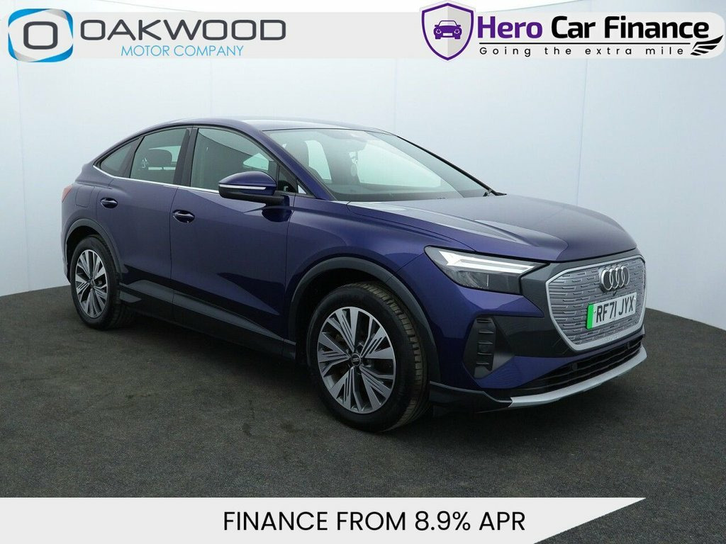 Oakwood Motor Company are delighted to offer this stunning Audi Q4 e-tron 40 Sport Sportback, finished in the eye-catching Navarra Blue. With just one owner, this all-electric SUV delivers premium comfort, cutting-edge technology, and effortless efficiency. The sleek Sportback design is enhanced by 19-inch 5-W-spoke Aero alloy wheels in Graphite Grey, a gloss styling pack, and LED headlights with LED daytime running lights. Folding, auto-dimming, and heated door mirrors with built-in LED indicators and a kerb-view function provide added convenience, while the acoustic glass windscreen ensures a refined driving experience. Inside, the premium cabin features sports seats in Routine Cloth with black and silver upholstery, complemented by black stitching and a steel grey cloth headlining. The Audi Virtual Cockpit with a 10.25-inch display and MMI Navigation Plus with an 11.6-inch high-resolution touchscreen ensure seamless connectivity, supported by the Audi Smartphone Interface, Bluetooth, and a high-quality Audi Sound System. Comfort is prioritised with 3-zone electronic climate control, comfort auxiliary air conditioning, heated front seats, and 4-way electric lumbar support for the front seats. The twin-spoke leather multi-function steering wheel with chrome trim adds a premium touch. Equipped with advanced driver assistance features, this Q4 e-tron includes lane departure warning, Audi Pre-Sense Front with pedestrian and cyclist recognition, swerve assist, turn assist, 2 USB-C Ports with Charge and Data Funct, Audi Smartphone Interface, Audi Sound System, Bluetooth Interface, DAB Digital Radio, MMI Navigation Plus with High Resolution, 19in Alloy Wheels - 5-W-Spoke - Aero - G, Folding Door Mirrors with Auto-Dimming F, Gloss Styling Pack, Windscreen with Acoustic Glass, 3-Zone Electronic Climate Control, 4-Way Electric Lumbar Support for Front , Audi Virtual Cockpit - 10.25in Display, Comfort Auxiliary Air Conditioning, Heated Front Seats, Keyless Go, Power Operated Tailgate, Steering Wheel - Twin Spoke Leather - Mu, Inlays - Black, Cloth Headlining in Steel Grey, Comfort Suspension, LED Headlights with LED Daytime Running , Navarra Blue, Projection Light i
