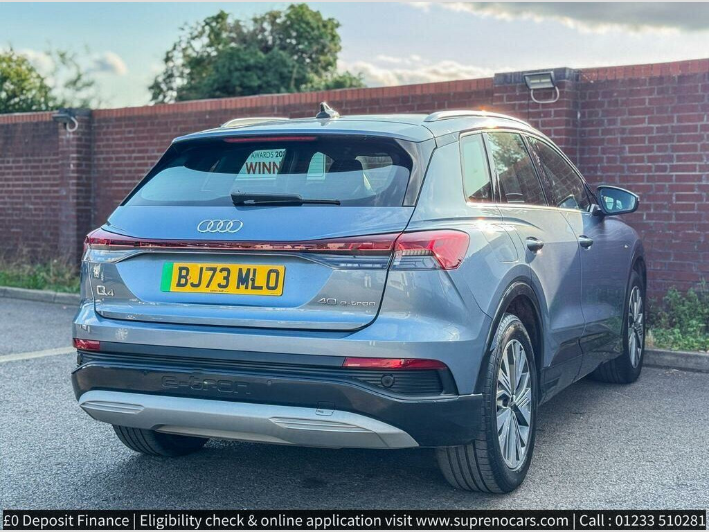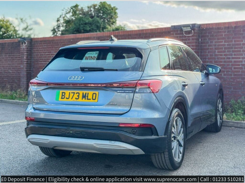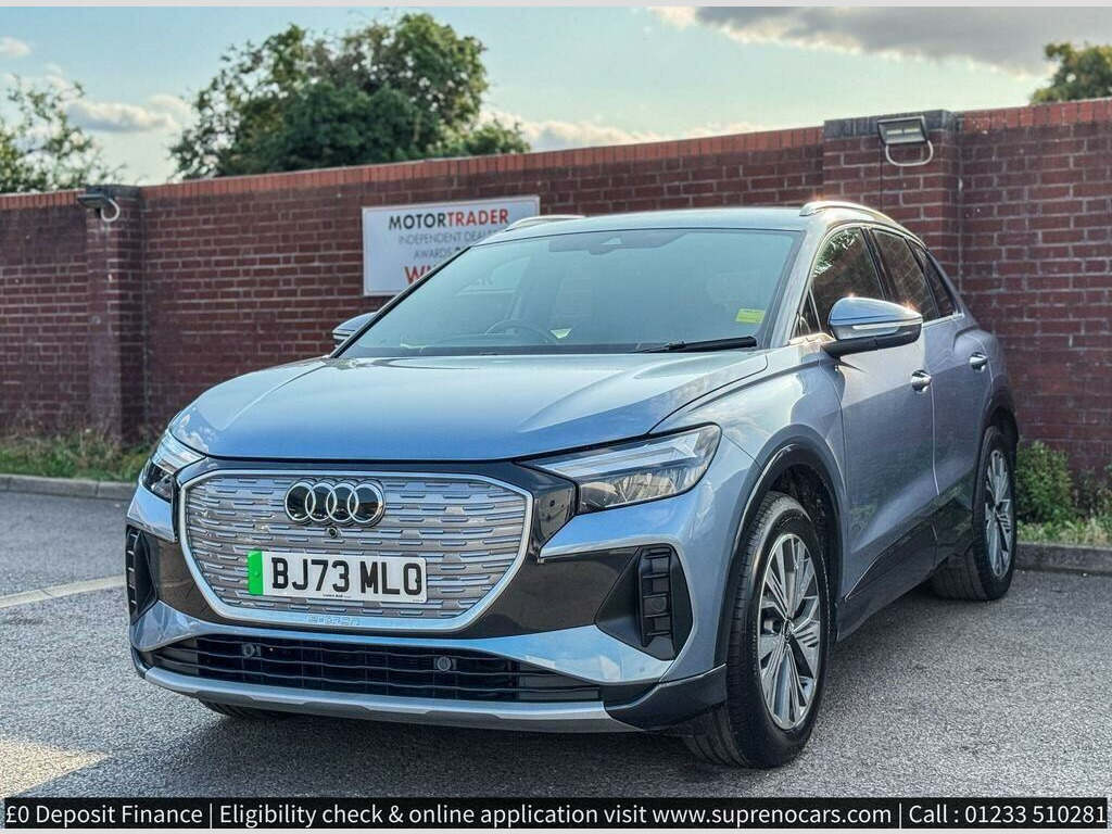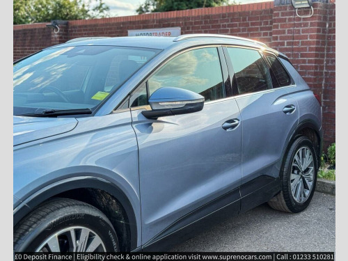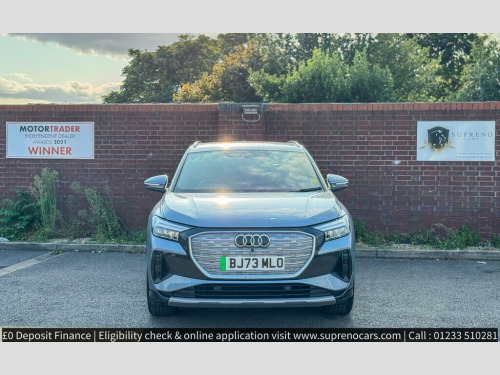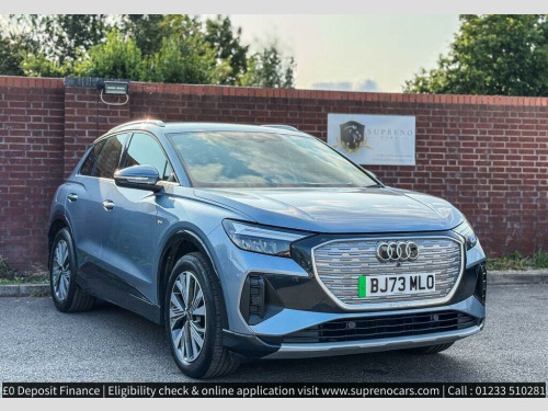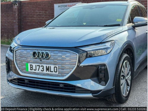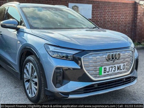 This vehicle has passed a 128 Point AA inspection & HPI Checked 8 Years AUDI Warranty or 100k miles - Complementary 12 Months AA breakdown cover, The 2023 Audi Q4 40 e-tron with an 82 kWh battery offers a 204 PS (150 kW) output and a combined electric range of 320 miles - Comfort suspension - Comfort package - Progressive steering - Audi drive select - Cruise control with preparation for adaptive cruise control - Front Heated Seats - Swerve assist and turn assist - Gloss package - Lane departure warning - MMI navigation plus with MMI touch - Parking Sensors - Audi pre sense front - Climate Control package - Assist package, protective and warning systems - Audi virtual cockpit - Audi sound system - Audi connect remote & control for MMI plus and pro - Functions-on-demand features online available - Comfort stationary air conditioning - Apple Carplay & Android Auto - Sport seats - Interior lighting - Camera-based traffic sign recognition - Projection light exterior mirrors - Electric opening/closing luggage compartment lid - and much more features, full spec list available, 14 Days Money Back Guarantee (T& C's apply) Reserve or buy Online now Express Home Delivery Available 7 Days a week, Drive away today with our complementary 5 Days driveaway comprehensive insurance (T& C's apply),For finance applications or eligibility check please visit www.suprenocars.com, save money & time with our state of the art online system and benefit from our low finance rates from 5.4% Flat rate and 8.9% APR Rep, instant decision and you could drive away the same day. Worried about poor credit score? Not a problem, we can help (Acceptance is subject to status (T& C's apply),Part Exchange Welcome We can buy your car and settle your existing finance All major Debit cards are accepted,Please satisfy yourself that a vehicle has a specific feature that is important to you before purchasing Please note that a £75 admin fee will apply, www.suprenocars.com or call on 07305152076 or 01233 510281 - We are based in Ashford, Surrey TW15 1RZ kw onboard charger, 135kw dc charging capability, 19in alloy wheels - 8.0j - 5-w-spoke - aero - graphite grey - gloss turned finish, 2 usb-c ports with charge and data functions, 3-zone electronic climate control, 4-way electric lumbar support for front seats, abs - anti-lock braking system, ac and dc charging access point on driver side rear, accent surface in gloss black, active vehicle alerting system - avas, adaptive cruise control with speed limiter, advanced driver attention and drowsiness monitor, aluminium look interior elements, aluminium roof rails, ambient lighting pack, anti theft locking wheel bolts, anti-theft alarm, audi connect navigation and infotainment services plus - 3 year subscription, audi connect safety and service - e-call, audi drive select, audi pre-sense front with pedestrian and cyclist recognition, audi smartphone interface, audi sound system, audi virtual cockpit - 10.25in display, auto dimming and frameless rear view mirror, bluetooth interface, camera based traffic sign recognition, cloth headlining in steel grey, comfort auxiliary air conditioning, comfort key and safelock, comfort suspension, contrast bumpers in manhattan grey paint finish, control unit with household plug and charging cable, mode 2, type 2 / g (10a), dab digital radio, door armrest in leatherette, door mirror housing - body coloured, door sills with aluminium inlays, driver and front passenger airbag with front passenger airbag deactivation, electric windows - front, electronically operated child locks, first aid kit and warning triangle and safety vests, folding door mirrors with auto-dimming function for both the drivers and passengers side electrically folding - adjustable and heated with built-in led side indicators and kerb-view function for passenger side, front centre armrest, front seats manually adjustable, front side airbags with head level airbag system and front interaction airbag, front and rear floor mats, gloss styling pack, heated front seats, i-size child seat mounting on the front passenger side and i-size and top tether on the outer rear seat, inlay - instrument panel aluminium convergence, inlays - black, keyless go, led headlights with led daytime running lights, led rear lights, lane departure warning with emergency assist, mmi navigation plus with high resolution 11.6in touchscreen colour display, mode 3 type 2-ac charging cable 22kw, non-smoking package, parking system plus - front and rear parking sensors, power operated tailgate, progressive steering, projection light in the exterior mirrors, rear seat occupant reminder - child presence detection, rear-view camera, seat belt monitoring, single frame grille with a structured closed surface with an octagonal shape, split-folding rear seat bench can be split 40: 20: 40 or fully, with centre armrest and cup holders, steering wheel - twin spoke leather - multifunction with trim in chrome, swerve assist and turn assist, tool kit with tyre repair kit, tyre pressure loss indicator, windscreen with acoustic glass